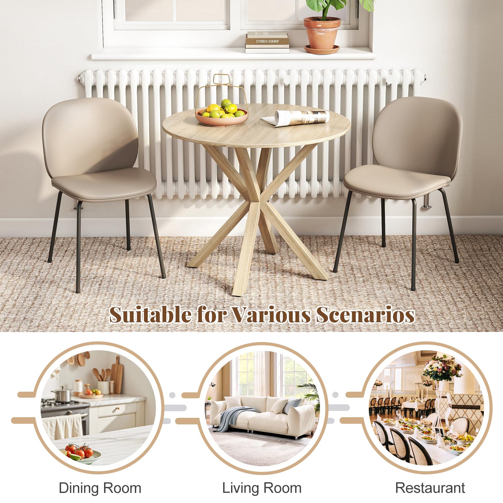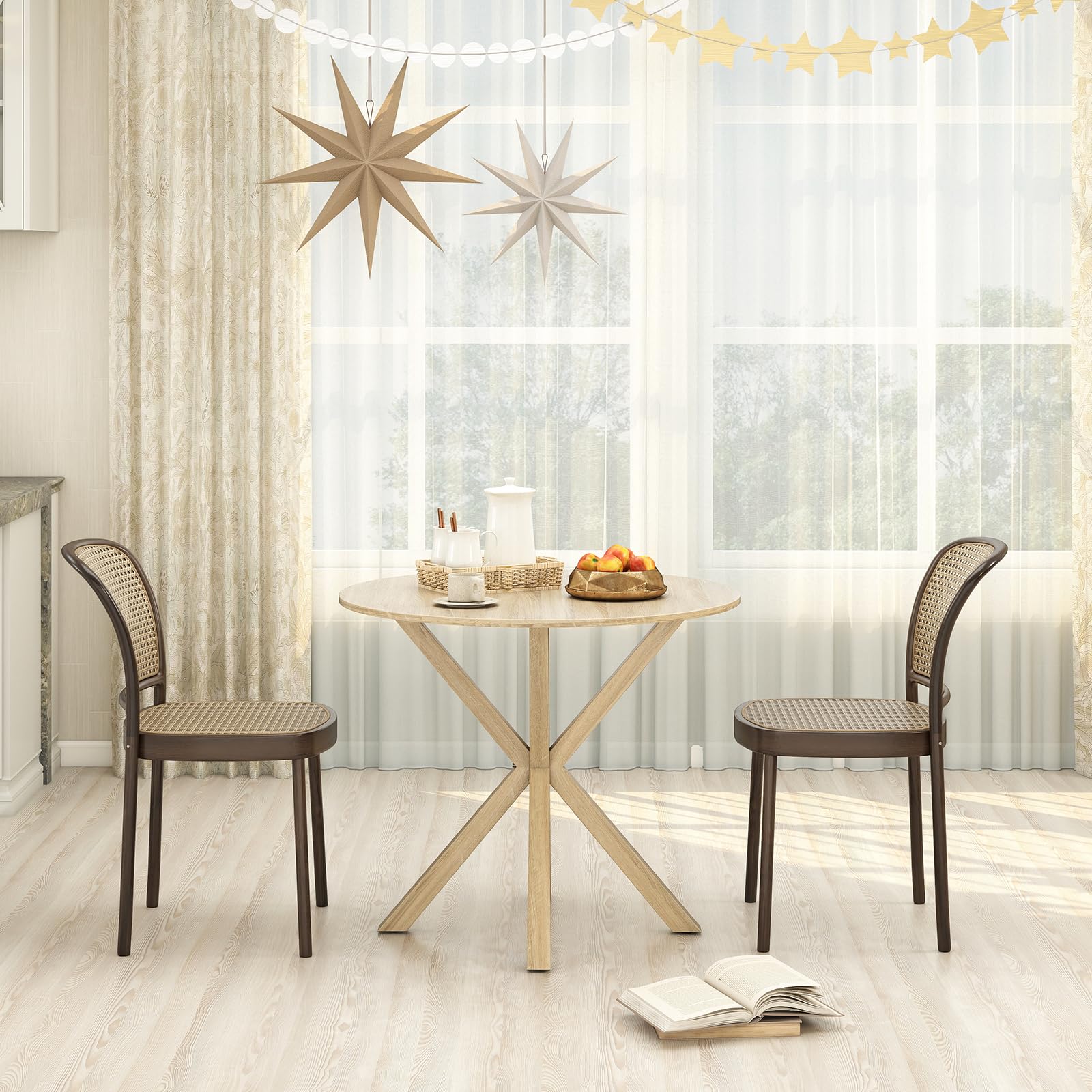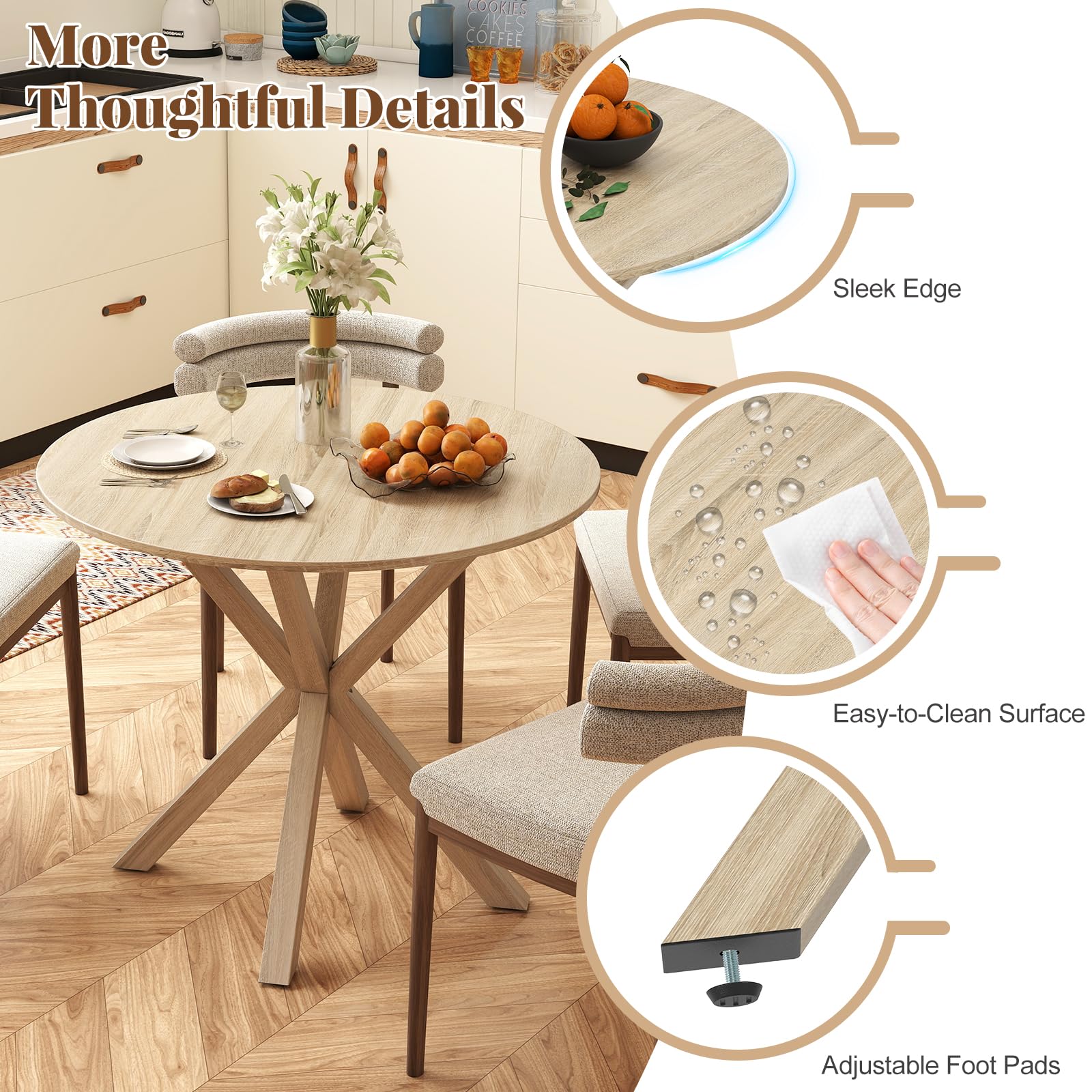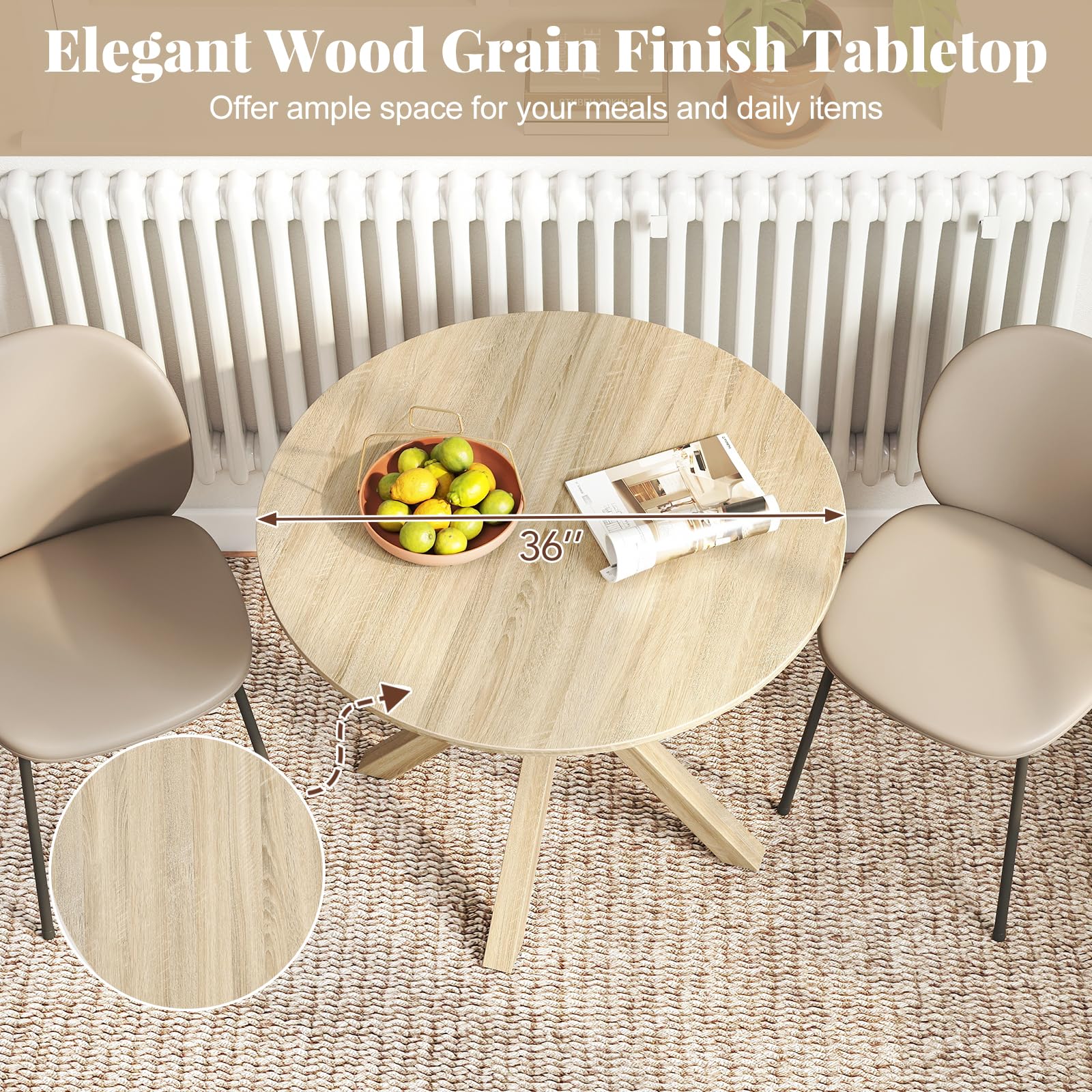 Looking for a dining table that combines rustic charm with modern versatility? Our farmhouse dining table features a stunning 36-inch wood grain finish tabletop, offering both elegance and practicality. Crafted from premium rubber wood, this table ensures durability and anti-deform performance, supporting up to 220 lbs. The stable X-shaped pedestal base and adjustable foot pads guarantee a wobble-free experience, even on uneven floors. Whether you're hosting a dinner party, enjoying afternoon tea, or creating a cozy ambiance, this round kitchen table effortlessly enhances any space, from dining rooms to living areas or restaurants.