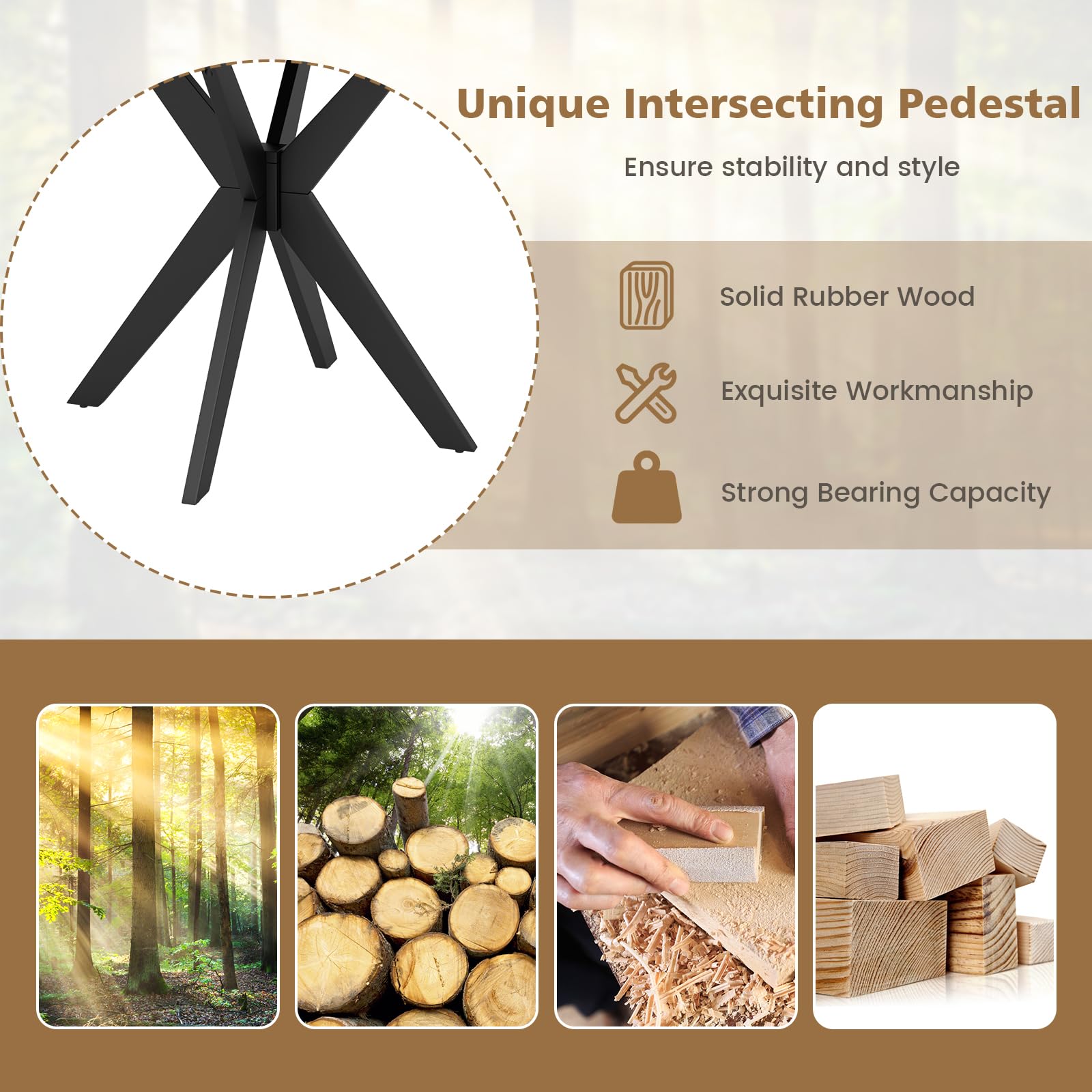 • Sturdy X-shaped Construction: This dining table is characterized by its unique intersecting pedestal base, which is not only quite novel, but also offers extra sturdiness. The bottom adjustable foot pads enable the table keep stably on uneven floor.