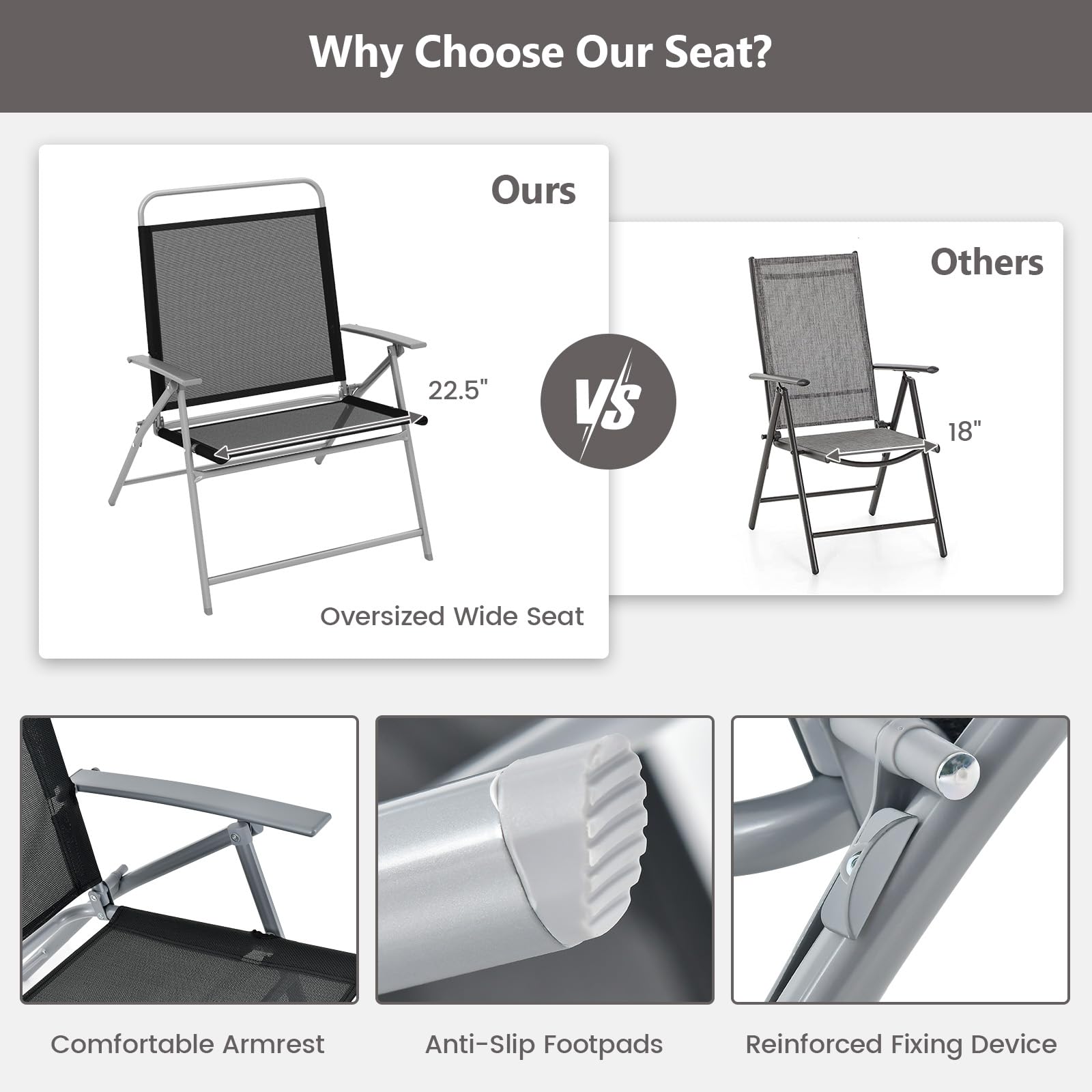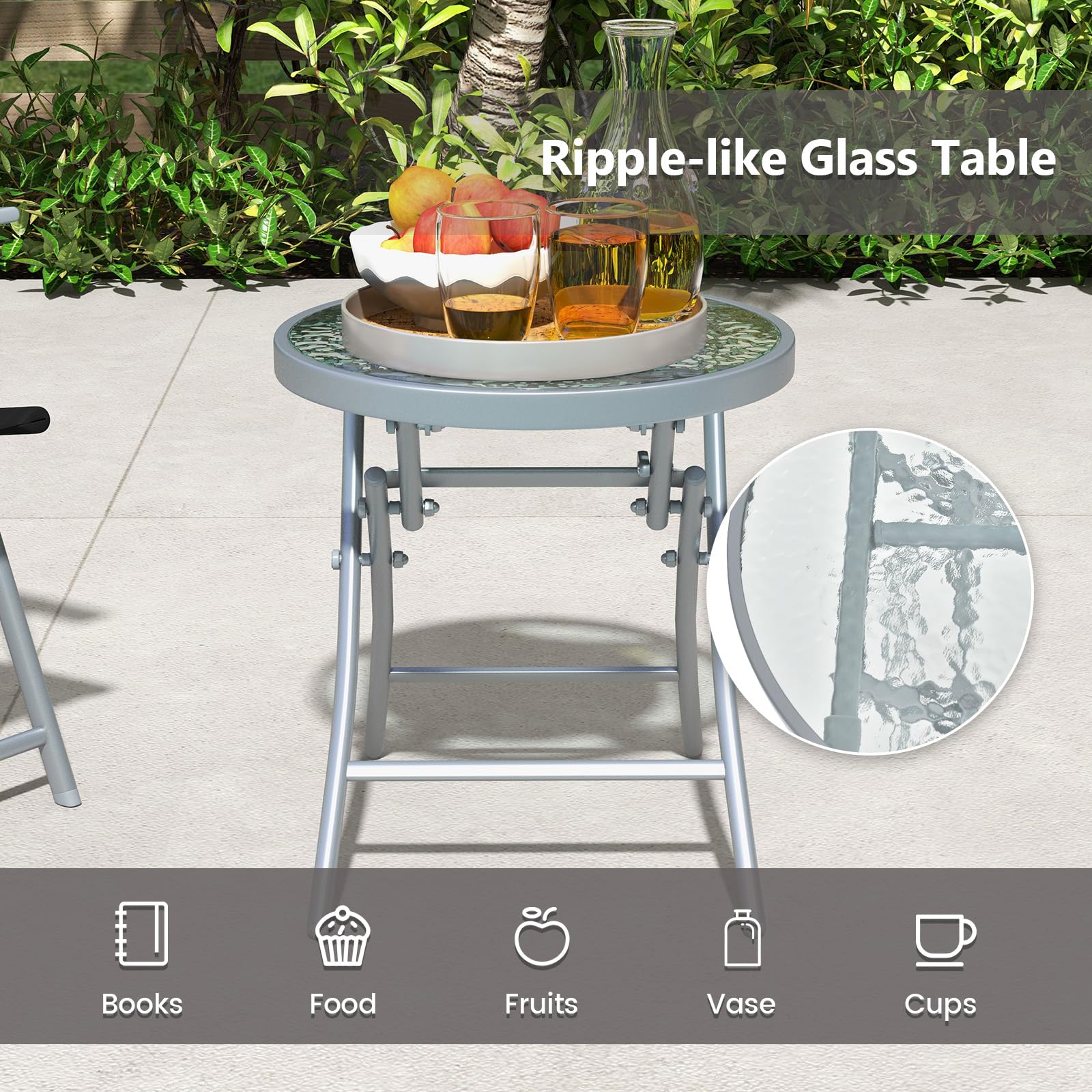 - [3PCS Patio Bistro Set with Wide Seat]: This 3-piece patio furniture set includes 2 folding chairs, and 1 glass coffee table, which can go well with any garden arrangement and landscaping. Each piece of this chair and table set can be used separately or in a group to be a great addition to any outdoor living space.