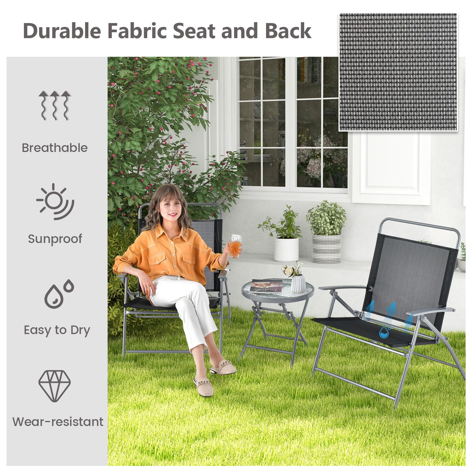 - [Folding Design & No Assembly Required]: The patio conversation set is easy to fold and store without occupying much space. You can place this set under the bed or in the corner when not in use. Besides, there is no need for installation as each chair is fully assembled.