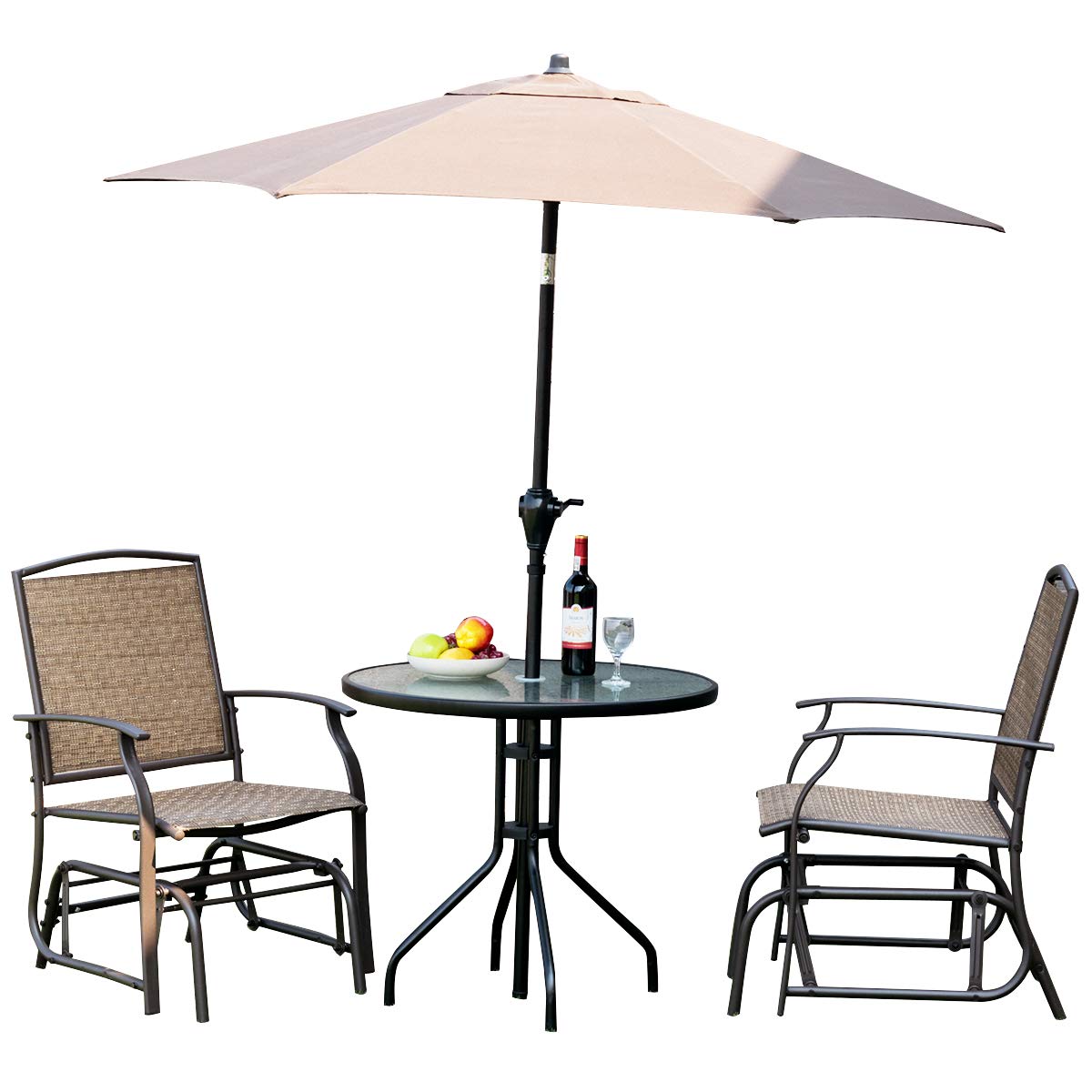 Do you want to have a rocking chair to sit on and enjoy sunshine? Our rocking chairs and glass table are good choice for you. Made of fabric and heavy iron construction, it is sturdy and durable to serve you for long time. The slightly sloping back and armrest will provide comfortable sitting experience. You can relax yourself by sleeping or napping on the chair. With slowly and gently swing, the chair will bring you fantastic feeling. In addition, you don't need to worry about slipping or moving of the chair because there are four pads at the bottom. With our 3pcs rocking glider chair set , You can enjoy a cup of tea at the swimming pool side or in the courtyard with your family. And the furniture set is perfect to be placed in your outdoor space such as garden, patio and backyard.