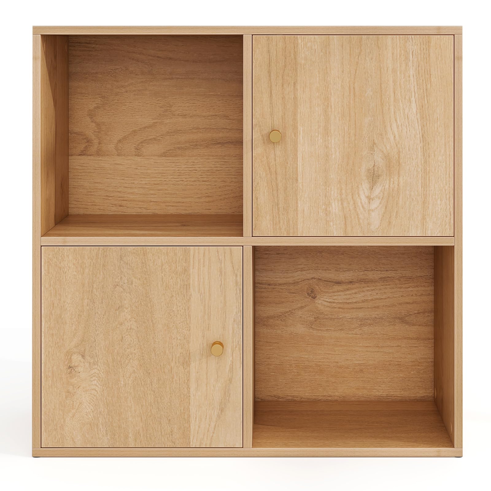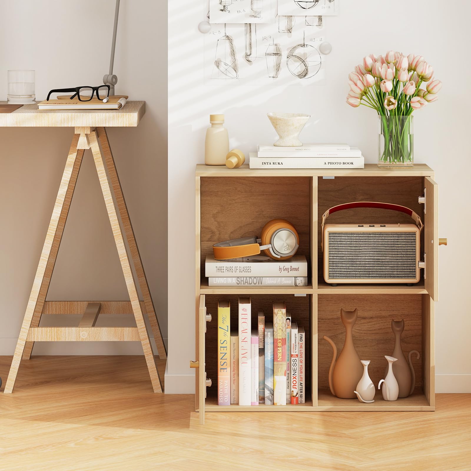 - [Versatile Storage Solution]: Enhance the organization of your space with this small bookcase featuring 2 open and 2 enclosed cubes. Perfect for storing books, albums, plants, ornaments, and more, while keeping clutter out of sight for a balanced and functional appeal.