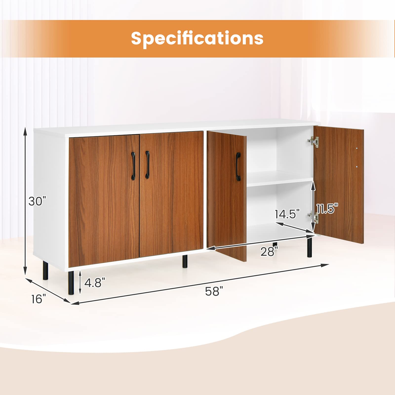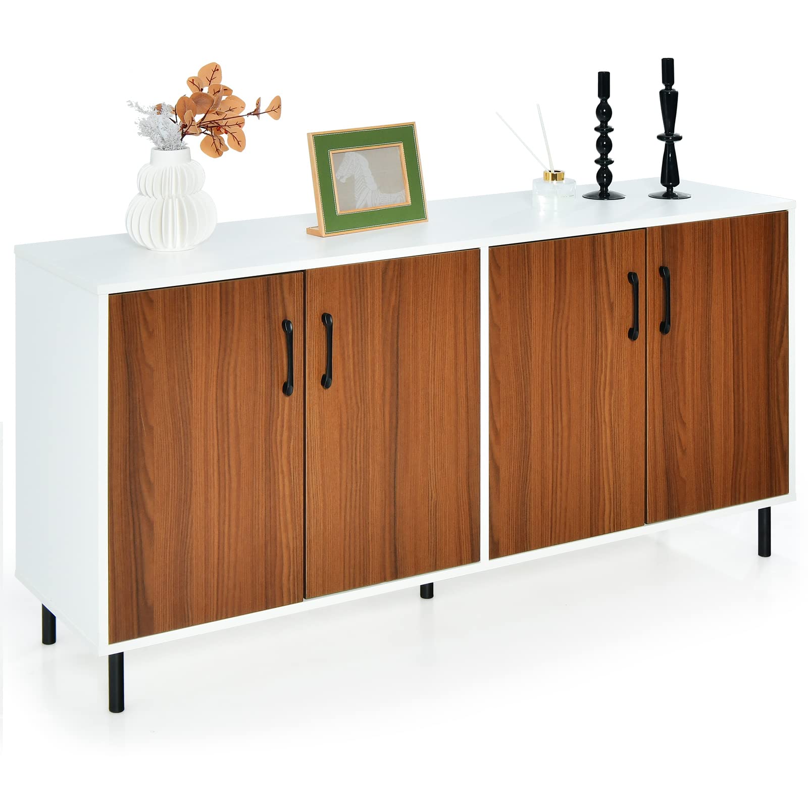 Constructed with thickened board our sideboard enjoys wonderful stability and durability. At the same time, our sideboard is equipped with anti-tilting devices and 5 metal legs, making ours sturdier than others seen in the market. The cabinet top has an excellent load-bearing capacity of 155 lbs. There are 2 cabinets with 4 compartments well meeting your storage needs. In addition to being a buffet cabinet in your kitchen, you can also use it as a console table and storage cabinet in your living room. Wherever it is, you will always receive satisfactory service.