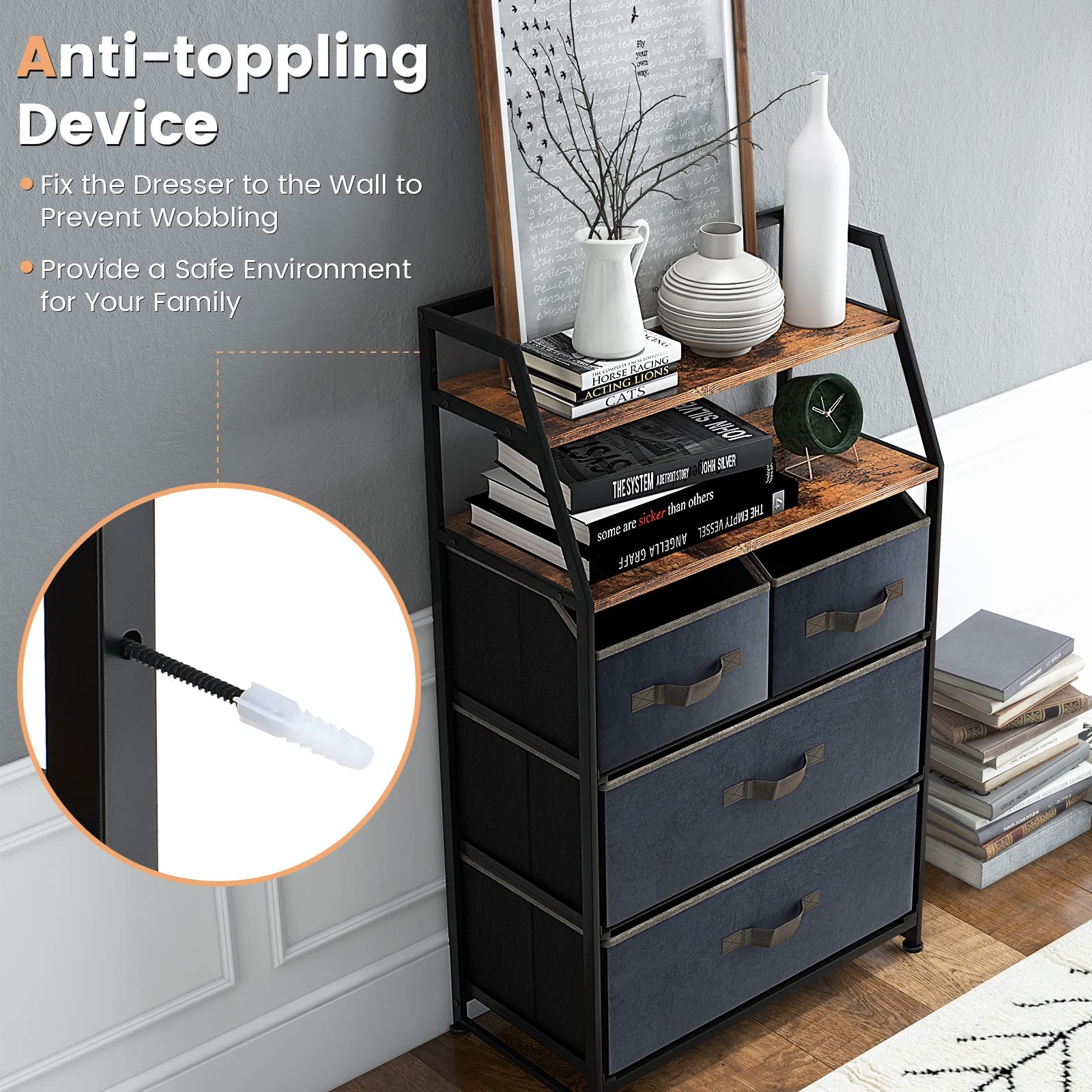 Product form Giantex 4-Drawer Storage Dresser for Bedroom - Tall Storage Tower Unit with 2-Tier Shelf & Fabric Bins $109.99 Quantity Add to cart This item is a recurring or deferred purchase. By continuing, I agree to the cancellation policy and authorize you to charge my payment method at the prices, frequency and dates listed on this page until my order is fulfilled or I cancel, if permitted. Your order will be shipped for free!