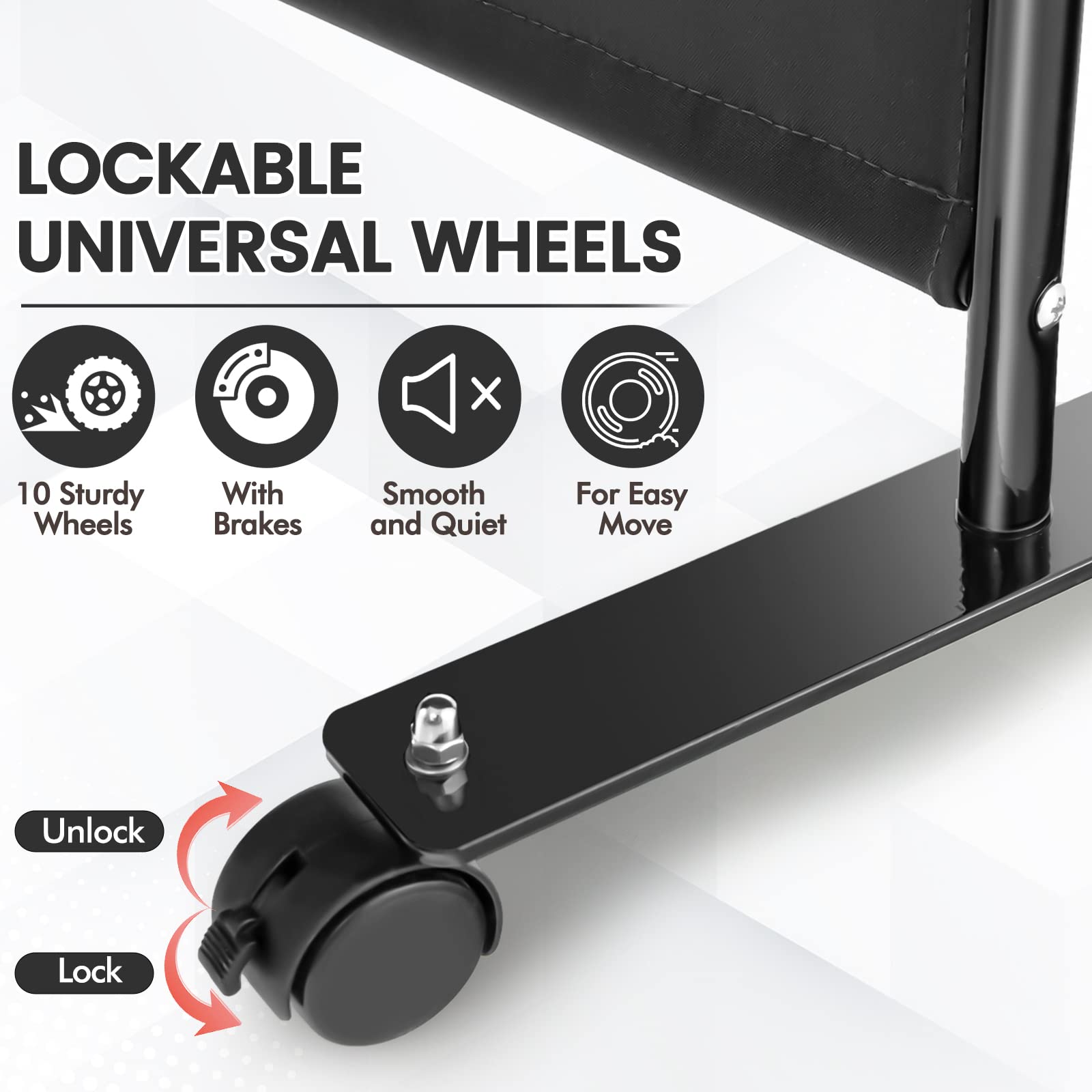 • **Lockable Rollers for Easy Movement**: The rolling divider for room separation features 10 flexible wheels that allow smooth and quiet mobility, minimizing floor damage compared to standard dividers.