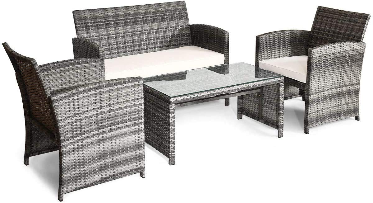 4 Piece Cushioned Patio Set, which are of contemporary looks and flavor, offers comfortable andexceptionally stunning outdoor lounging . What is more the table features a temperedglass top. It is perfect for the pool side, deck or patio, these cushionedseats will let you and your guests to sit back, relax and enjoy the greatoutdoors.