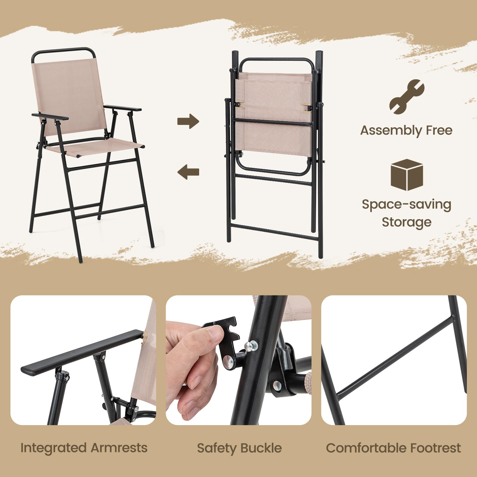 - Folding Bar Chairs: The bar set includes 2 folding counter height chairs that save space when not in use. Remember to fix the frame by the safety buckle! Besides, the ergonomic chair with integrated armrests and comfortable footrest will give you true relax.