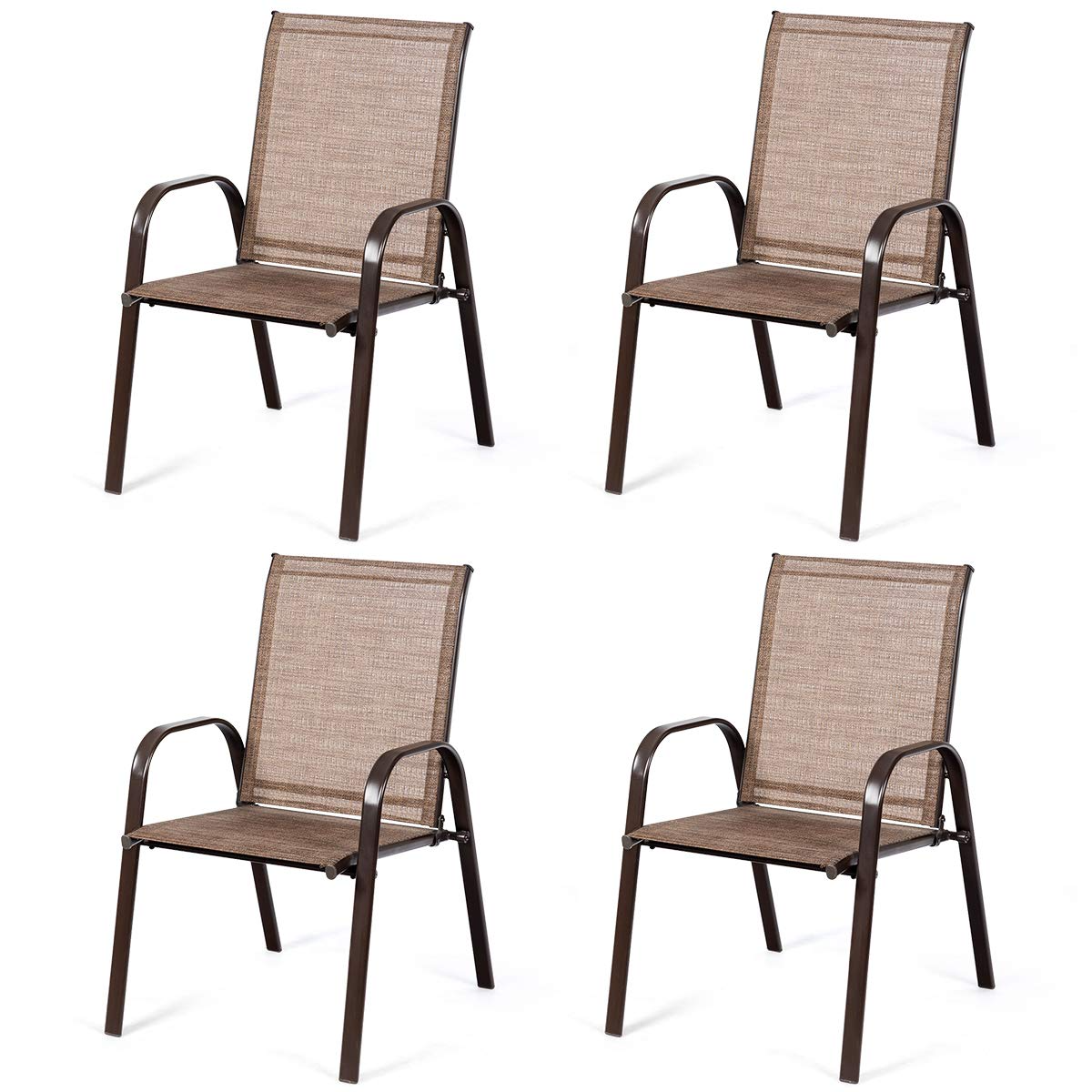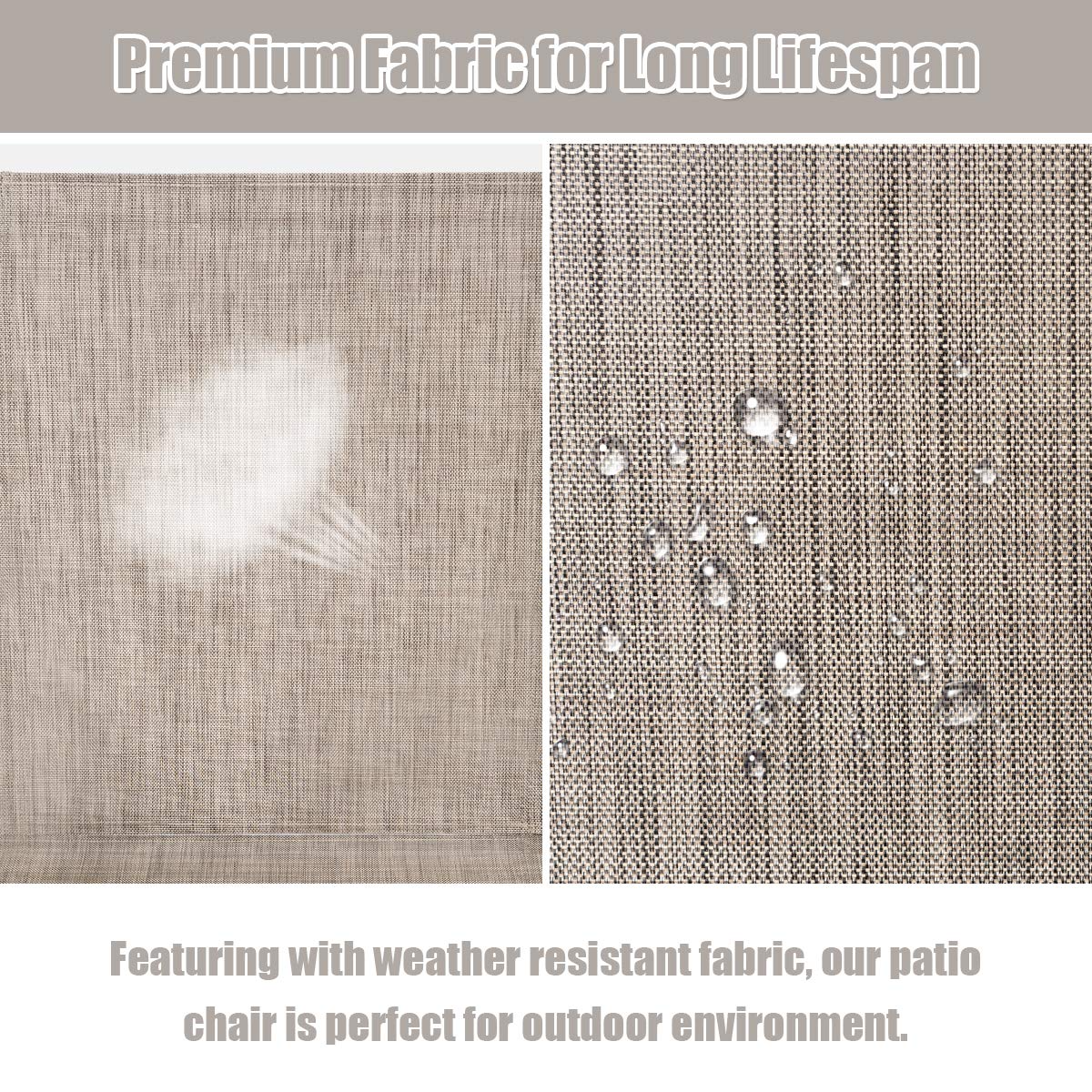 - Sturdy & Stable Patio Dining Chairs: ?Crafted with a powder coated steel frame, our patio chair is sturdy and solid which has a long lifespan.?The premium fabric of seat is durable enough to stand the test of time. What’s more, the legs with non-slip foot pads form a triangle with ground, increasing the stability.