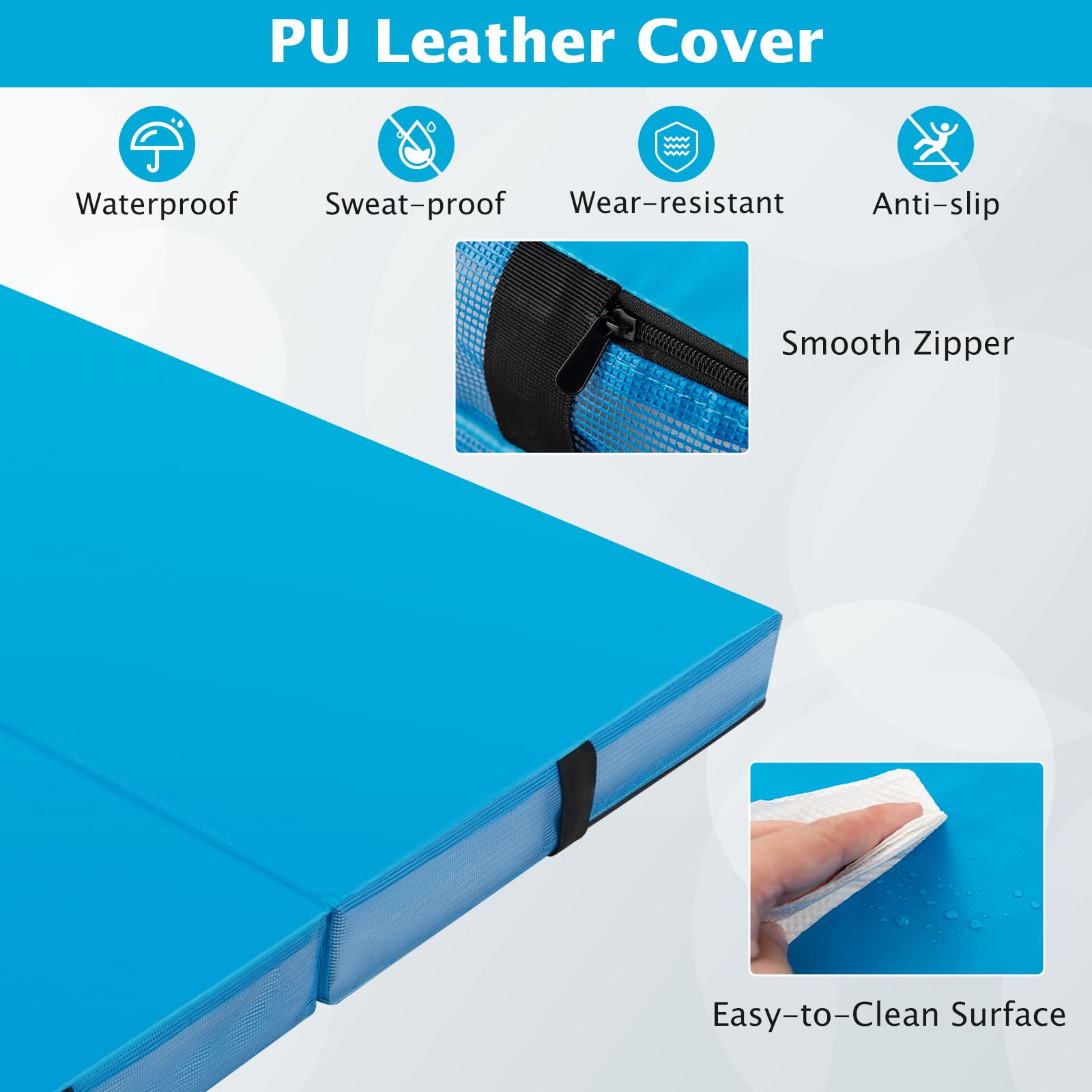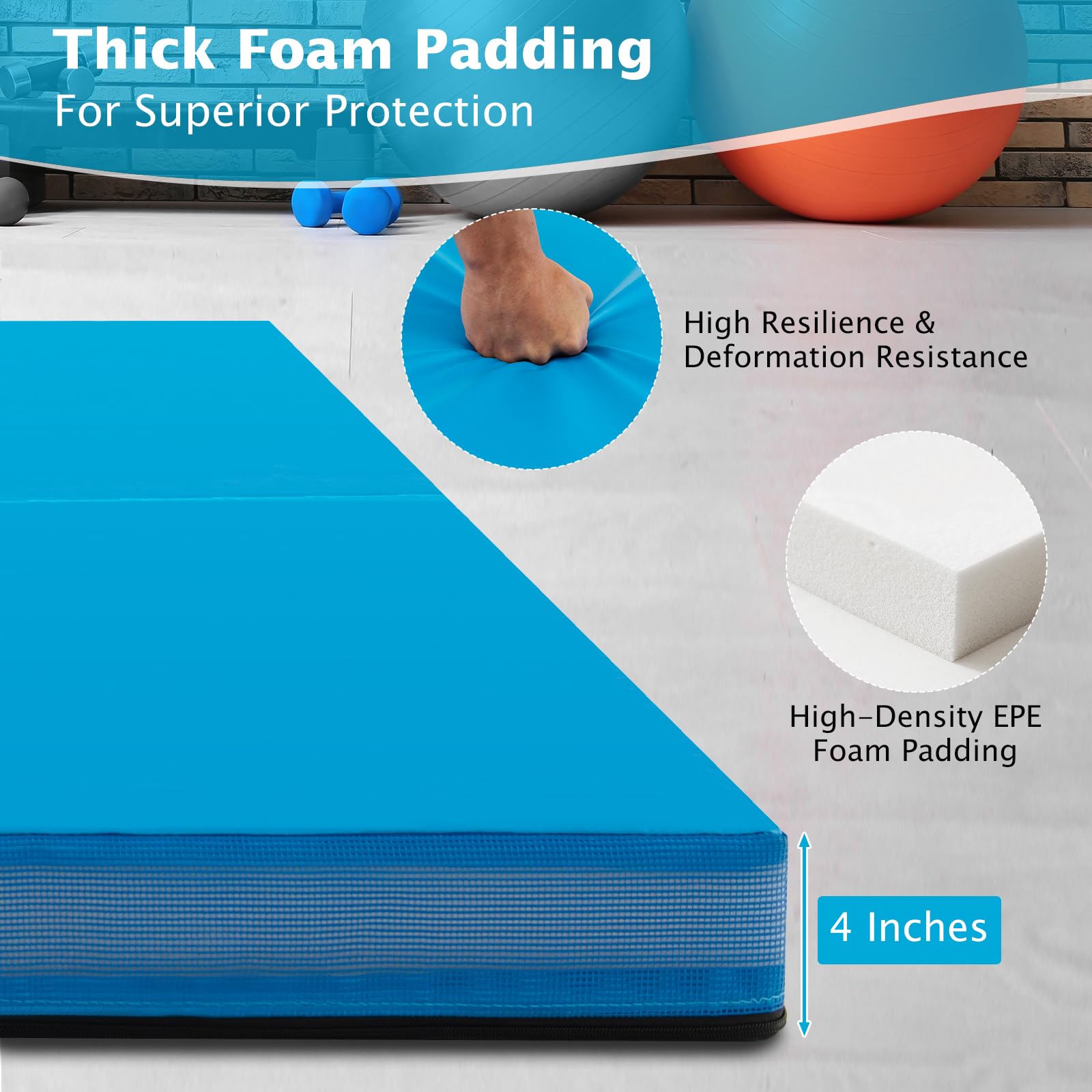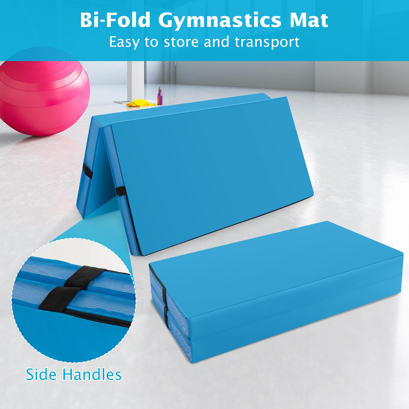 - Foldable & Portable Design: Giantex bi-fold gymnastics mat can be folded up, which makes it easy to store and transport. And the side handles help carry. Folded dimension: 4' x 2' x 8" (L x W x H).