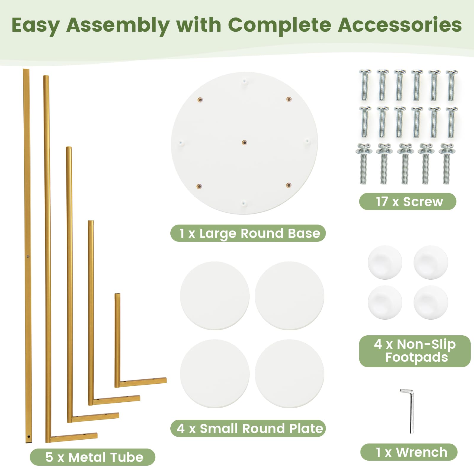 Our plant stand features a compact 4-tier design that not only displays your plants well, but also gives your potted plants full access to the sun. Due to its small footprint, it can be used in a variety of small spaces to add vibrancy to your room. In addition, this plant stand can be used as a versatile display stand for books, decorations and photos, or for parties and celebrations to showcase desserts. Made of engineered wood, each tiered plate is water and wear resistant and easy to maintain. Besides, the delicate marbled surface of the plates and the lustrous metal frame make our plant stand a stylish furniture piece. In addition, the metal structure of the multi-level plant stand and the 4 non-slip feet will ensure a more stable stand. And our plant stand is simple in construction so you can quickly install it.