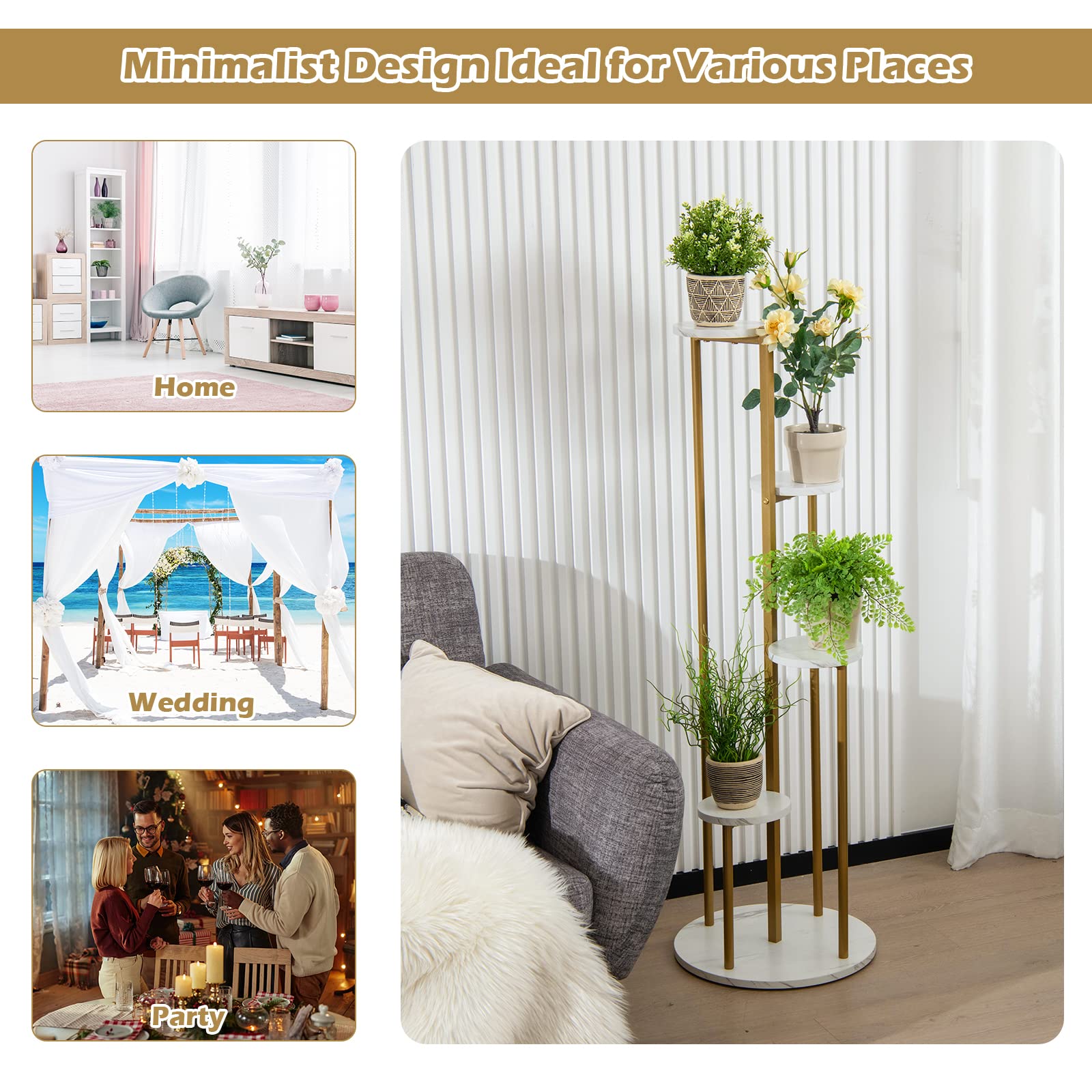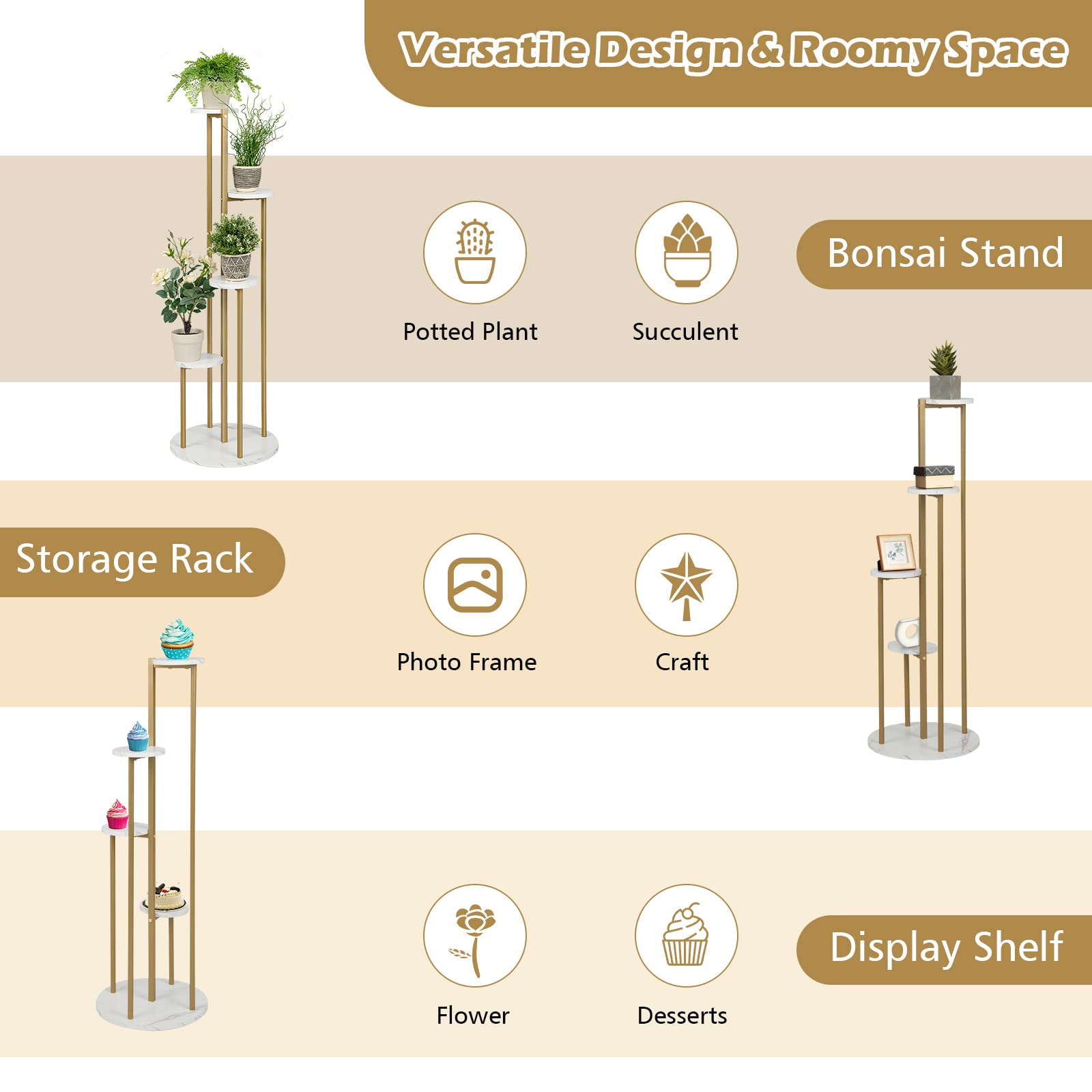 Giantex 4 Tier Plant Stand Indoor, Tall Plant Shelf with Marble Texture for Multiple Potted Plants, Tiered Metal Plant Holder Flower Display Rack for Living Room Balcony Porch