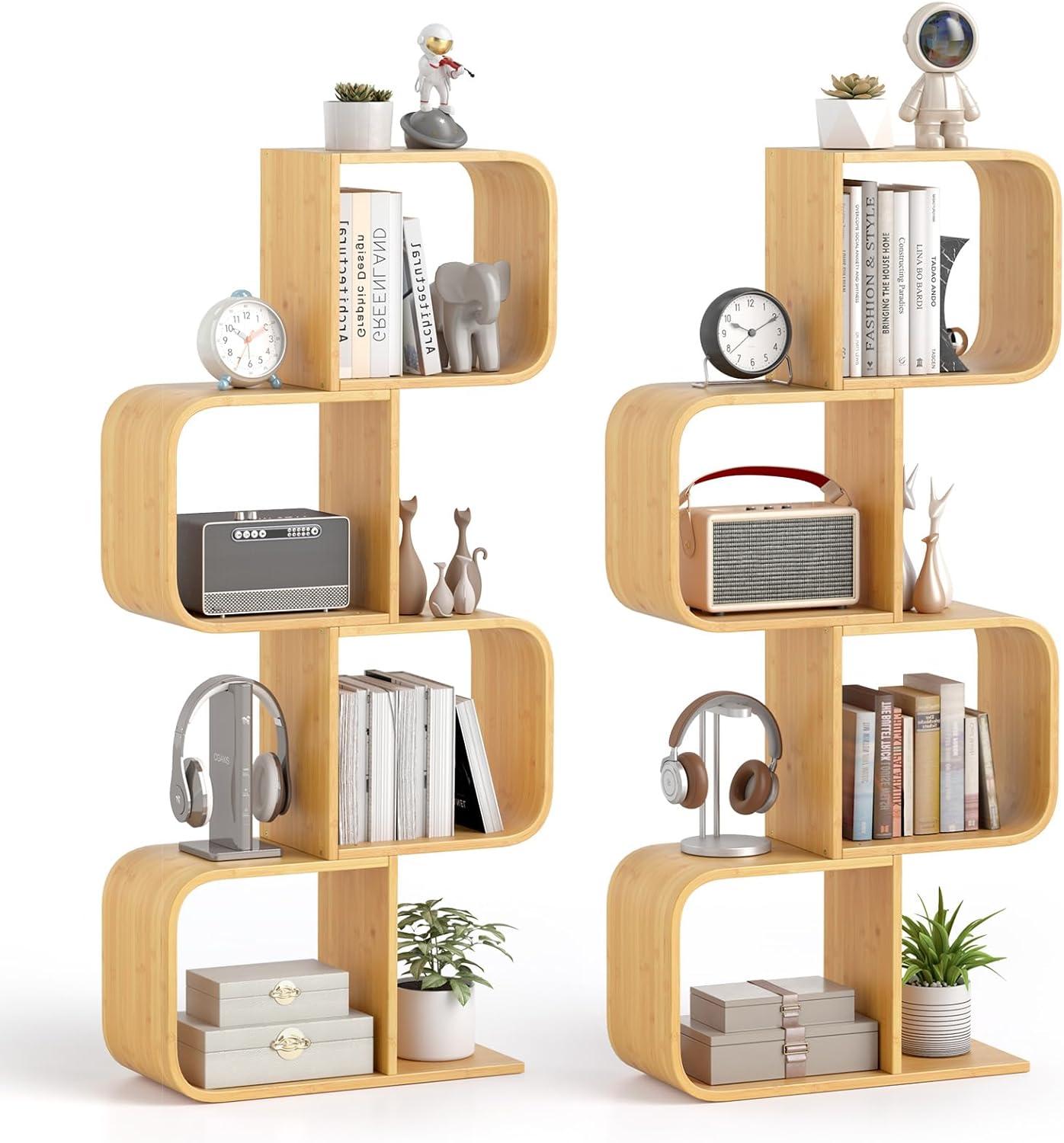 Organize your space in a sustainable and stylish way with this bamboo bookshelf! The S-shaped design creates a visually striking display while 4 cubes make it easy to hold a variety of items, from books to decorative accents. Worried about safety? Don’t be! Our innovative bookshelf comes with anti-toppling kit for your peace of mind. Whether used in the living room, study or office, this bookcase complements a wide range of interior styles. Maximize your living area with this space-efficient bookshelf that fits snugly in corners or against walls.