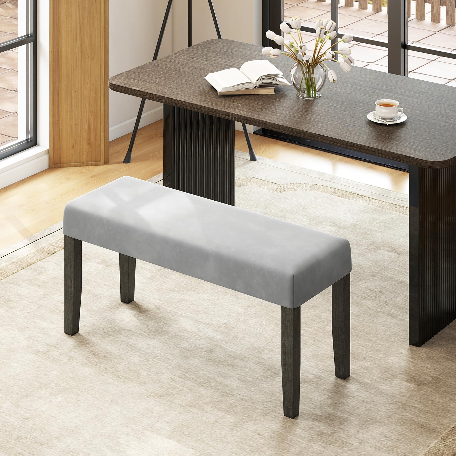 This bench features a comfortably padded sponge seat wrapped in skin-friendly velvet fabric, supported by robust solid rubber wood legs with reinforced triangular structures, ensuring stability up to a formidable 800 lbs. Measuring 42"W x 15.5"D x 20"H, this kitchen bench's versatile dimensions make it an ideal addition across various home settings, from entryways and dining rooms to bedrooms and living areas. What's more, this indoor bench comes 80% pre-assembled and with just 4 legs to screw in, setting up is a breeze, quickly enhancing your decoration with a touch of modern sophistication.
