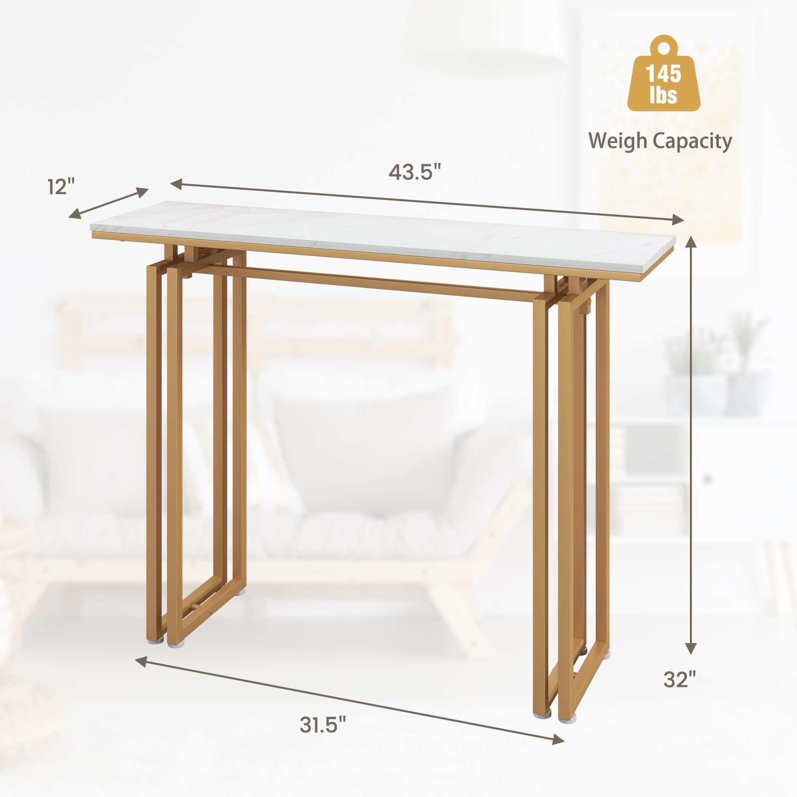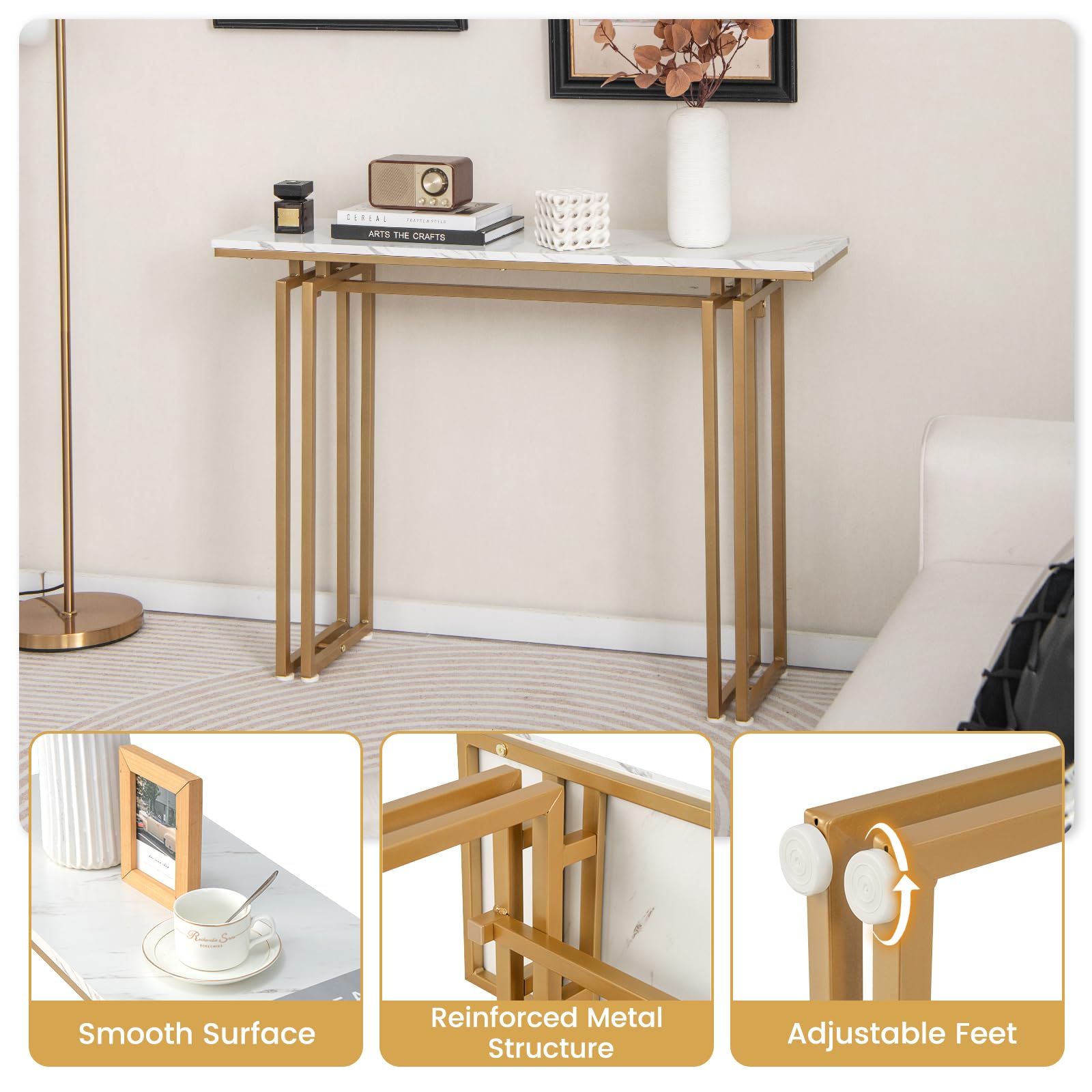- Achieve a Modern Look: The combination of a faux marble top and a gold-colored frame gives this console table a stylish and contemporary appearance, which will enhance the aesthetic of your home. Additionally, the smooth surface makes it easy to clean, allowing you to maintain its pristine appearance effortlessly.
