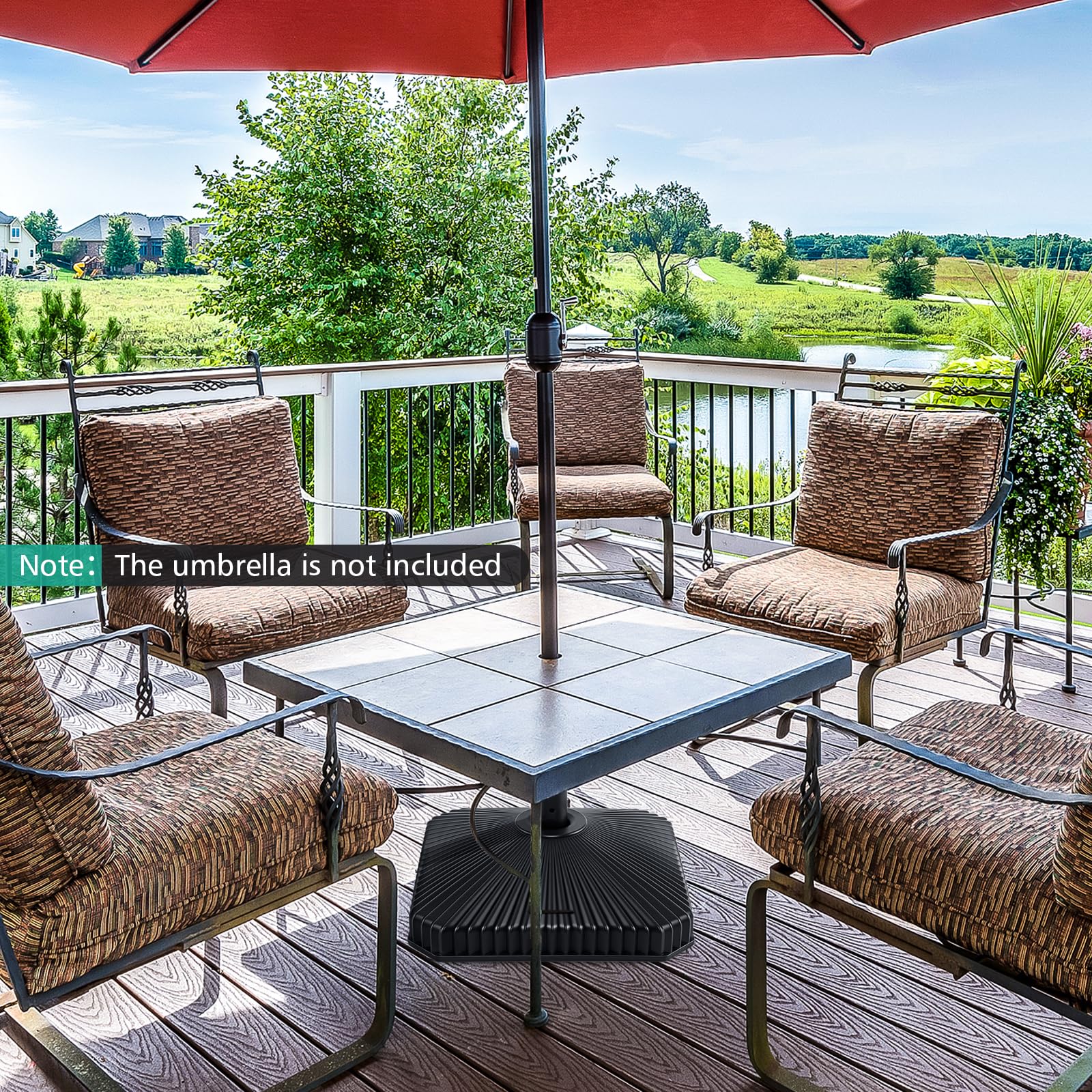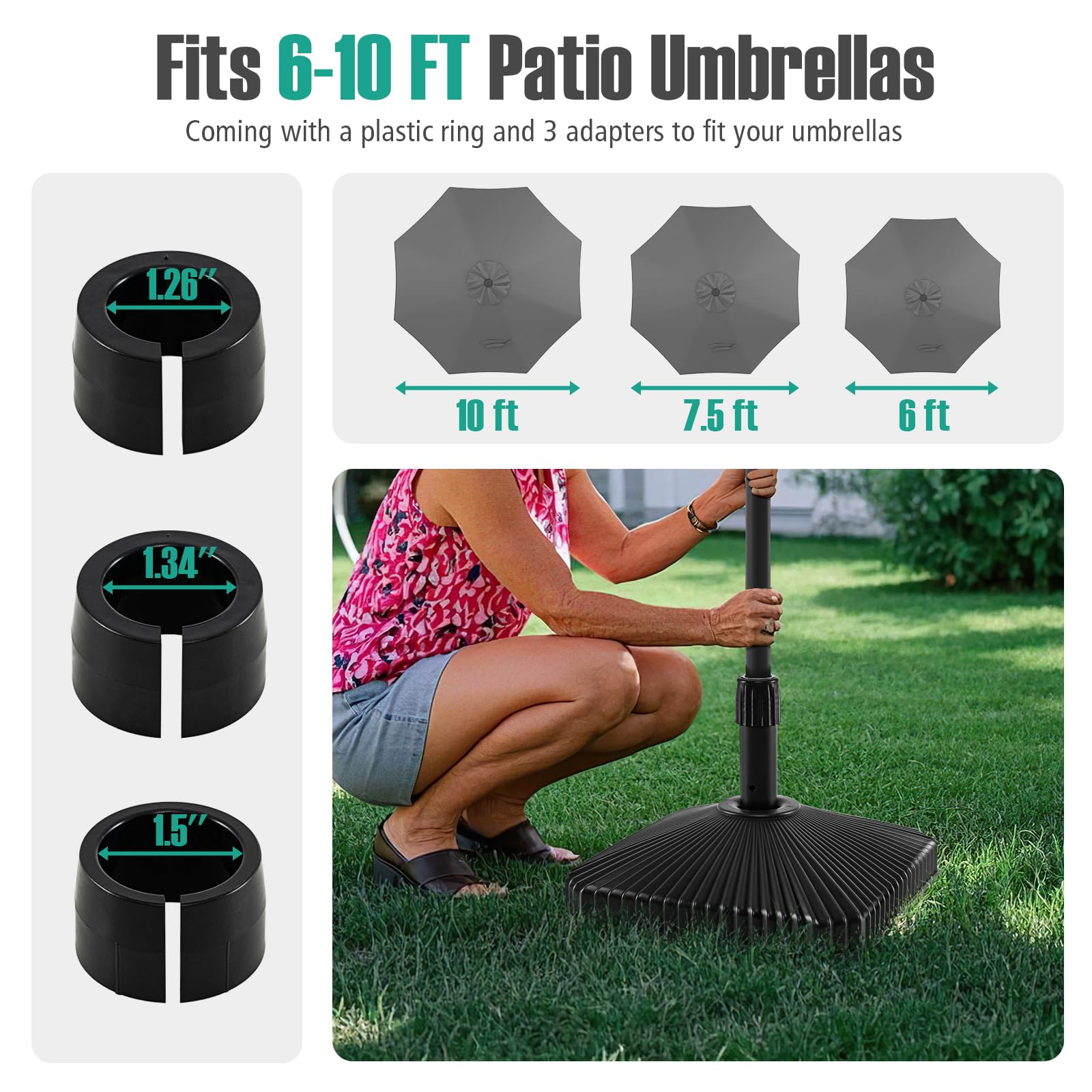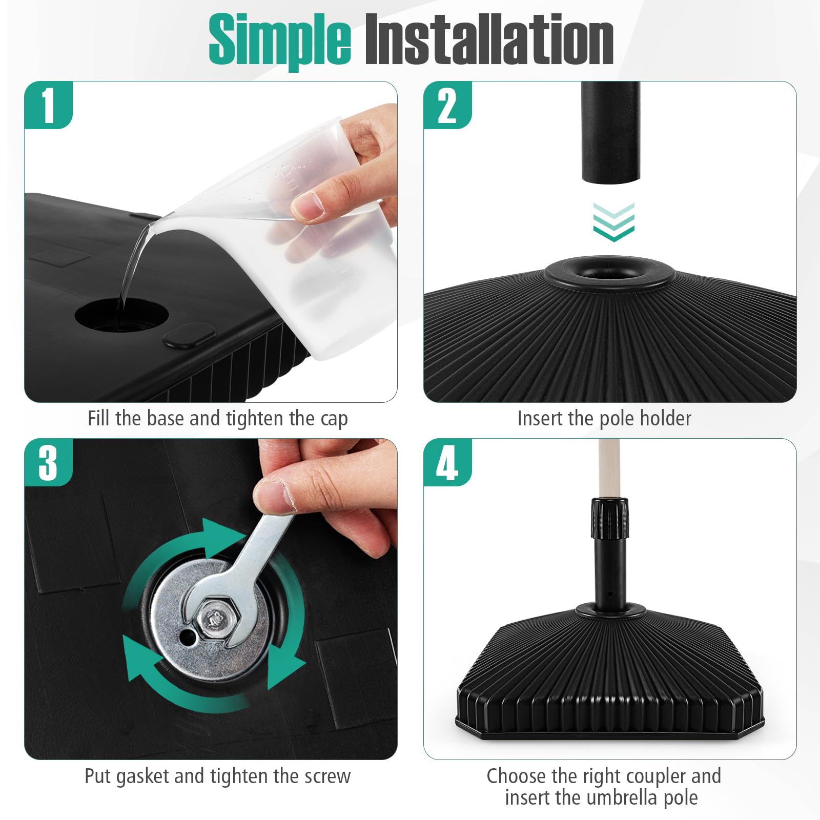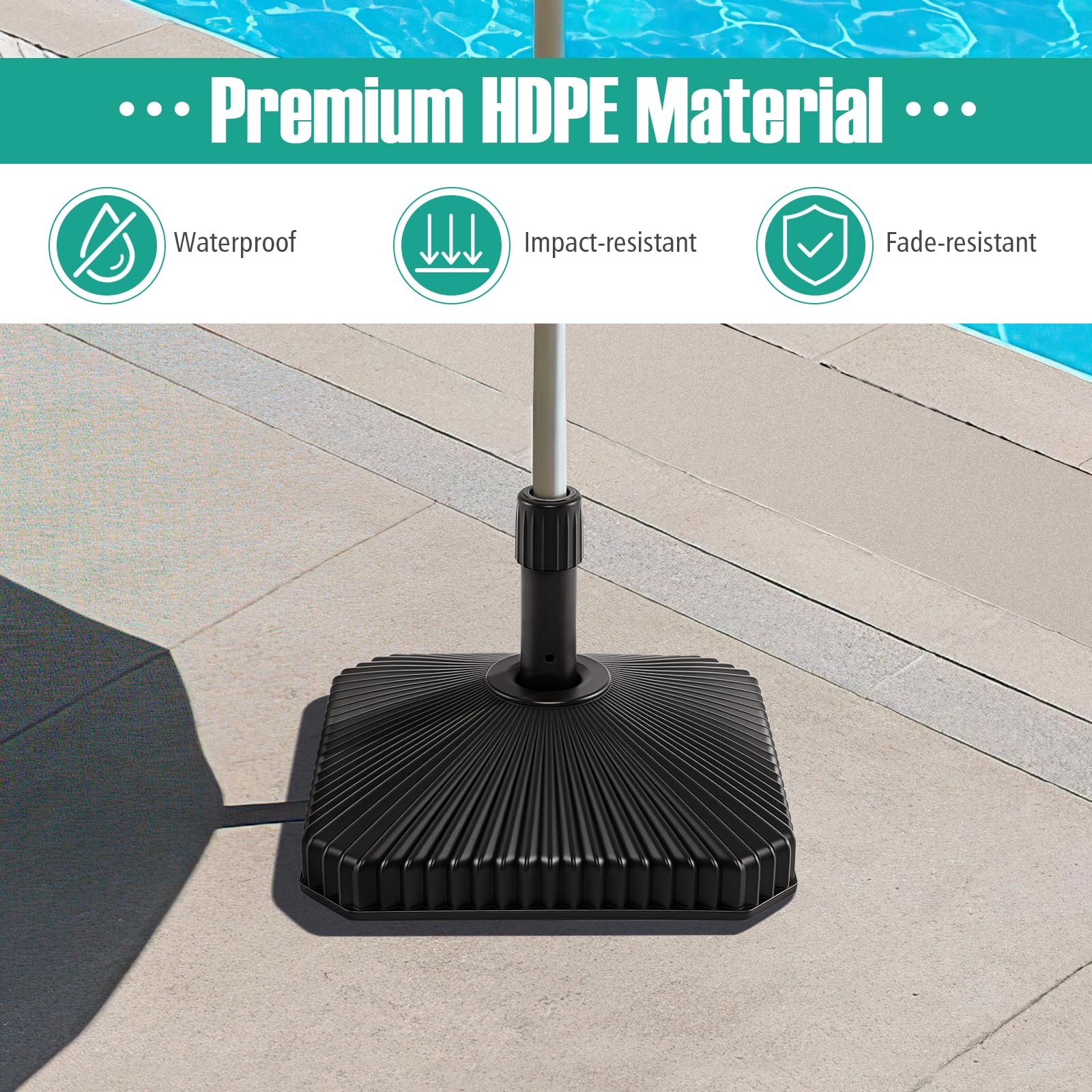 Keep your patio umbrella secure with this durable and elegant umbrella base! Crafted from premium HDPE material, it boasts excellent resistance to cracks, fading, and impact, ensuring long-lasting use. The refillable design supports up to 44 lbs of weight, providing outstanding stability to prevent your umbrella from tipping or swaying in the wind.