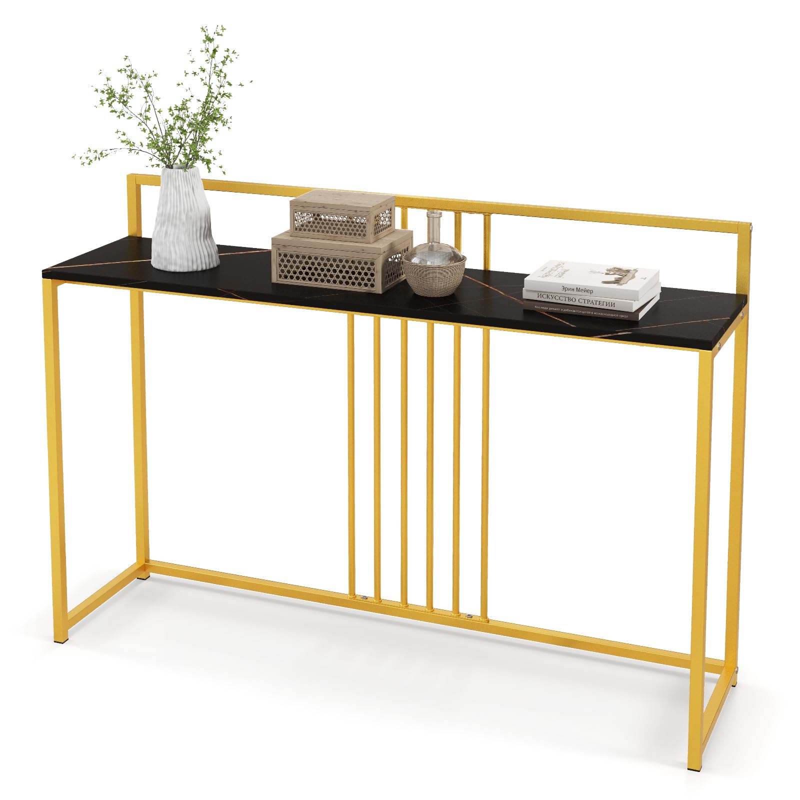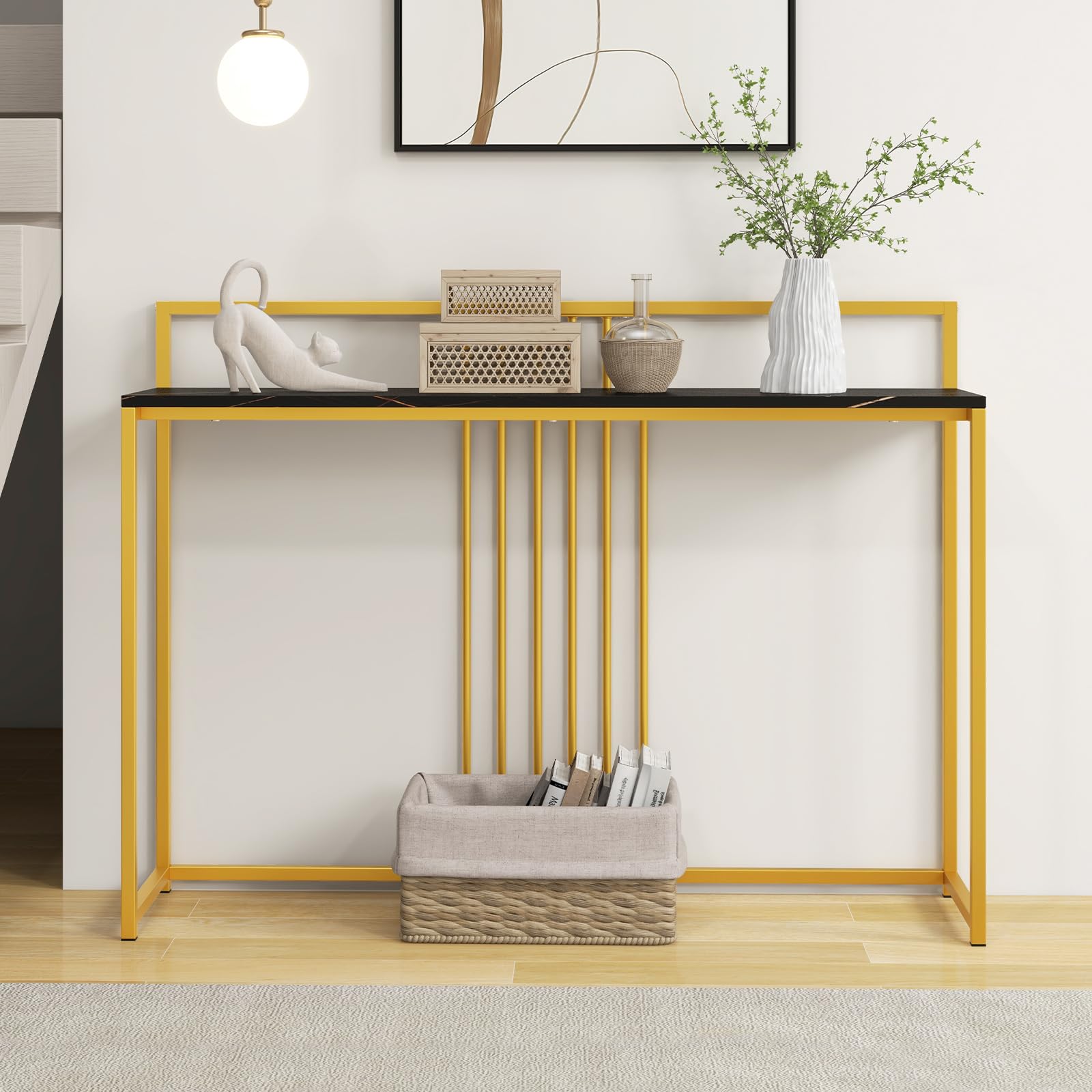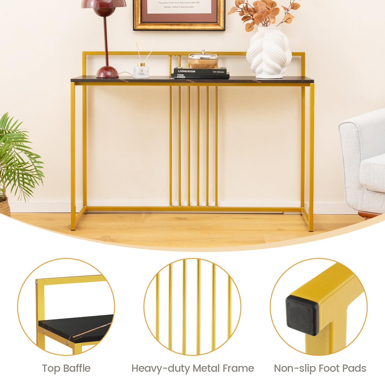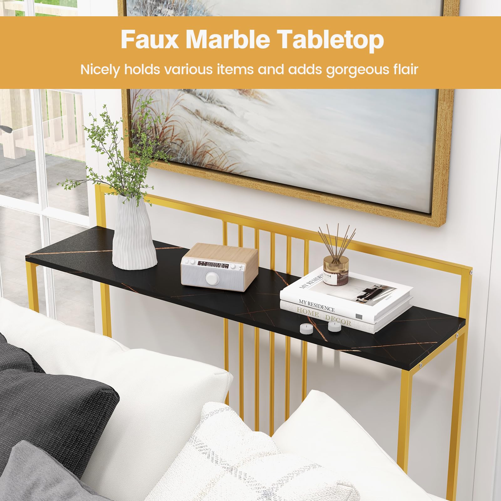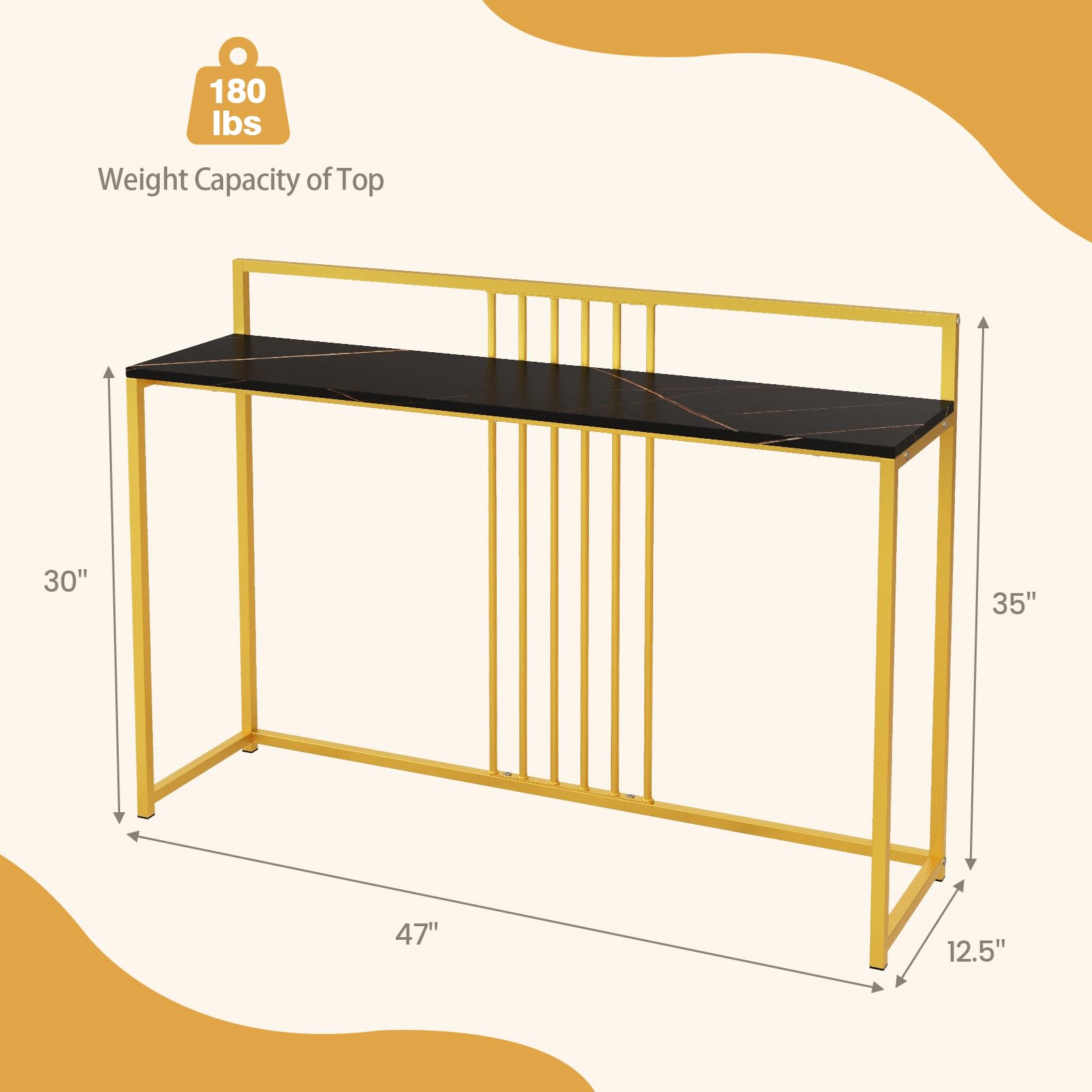 - 【Contemporary Design】- Featuring a faux marble tabletop, this entryway table adds a touch of luxury and modernity to your home decor. The gold frame with vertical bars enhances the overall aesthetic appeal, infusing a sense of glamour.