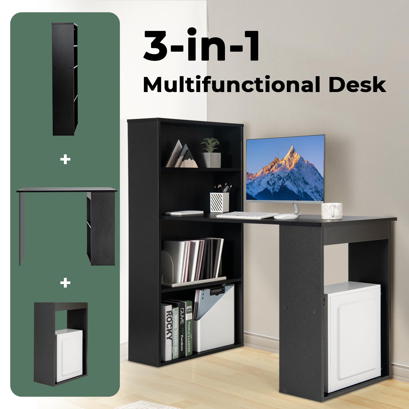 - [3-in-1 Multifunctional Desk]: The multifunctional computer workstation combines a 48" work table with a 4-tier bookcase and a 2-tier side rack, thus maximizing the utilization of limited space. It is a handy and space-saving choice, which works well as a PC table, a writing desk, a gaming table, or a craft table.