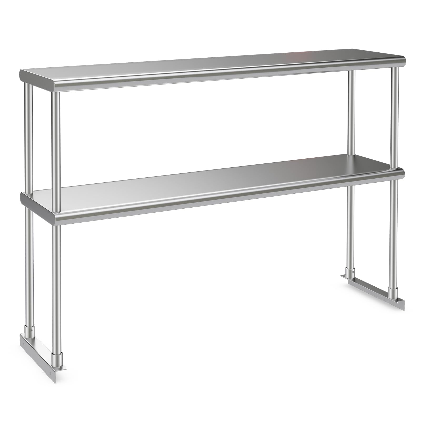 - [Ample Storage Space]: Featuring double-tier design, the overshelf will offer you more storage space. Each shelf measures 48" x 12" (L x W), allowing you to store multiple items like kitchenware, vegetable, tools and so on. The top shelf can load up to 400 lbs, and the lower shelf can withstand 340 lbs.