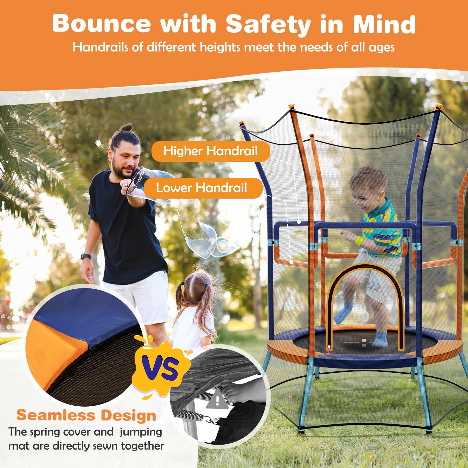 - 360° All-Round Safety Protection: Giantex toddler trampoline is covered with anti-tear enclosure net from the top to the floor, which provides complete security to prevent children from accidentally jumping out or climbing under the trampoline. Approved by ASTM and CPSIA, this trampoline will bring parents peace of mind while children are jumping.