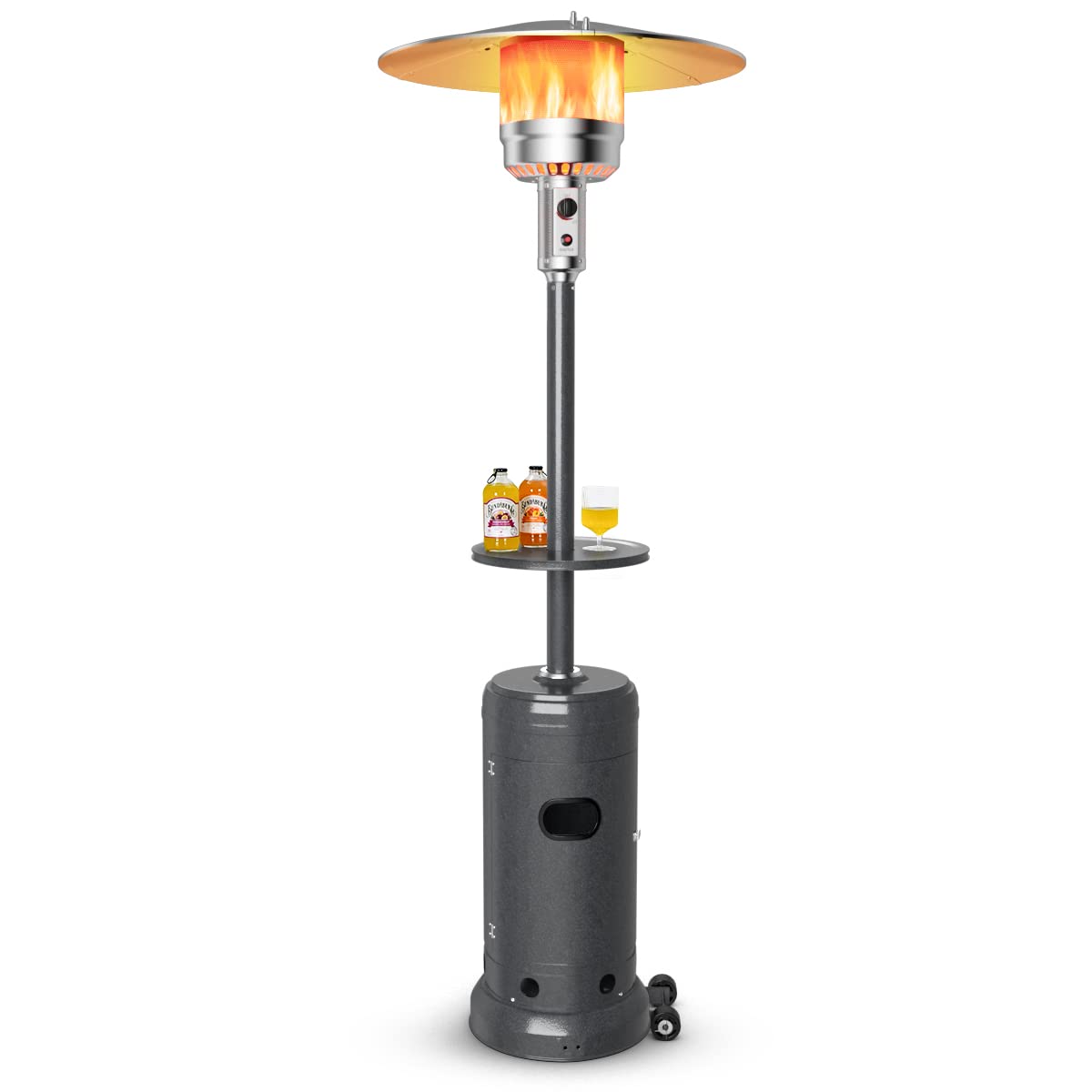 Giantex 50000 BTU Outdoor Propane Heater, Patio Heater with Height Adjustable Shelf Tabletop & Wheels