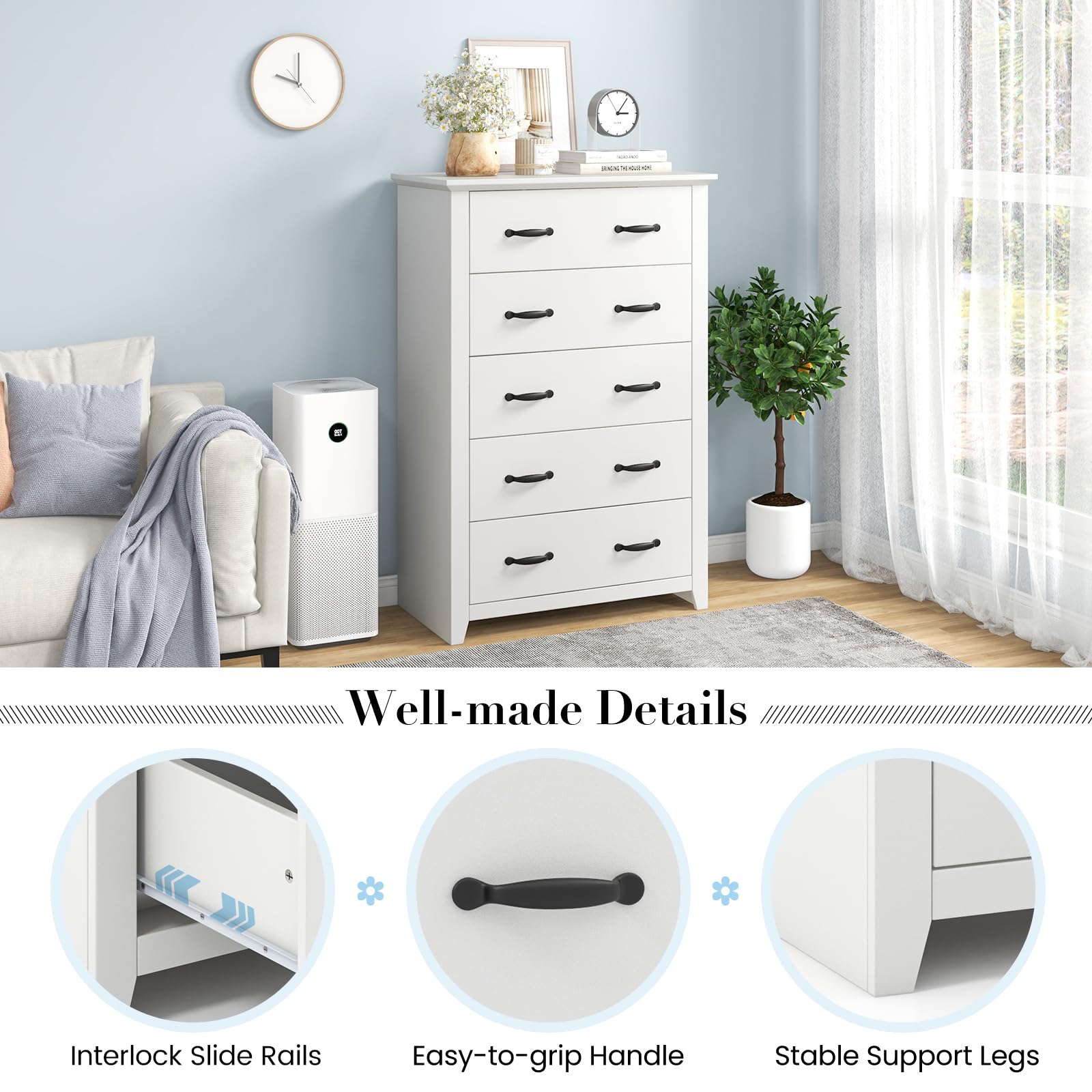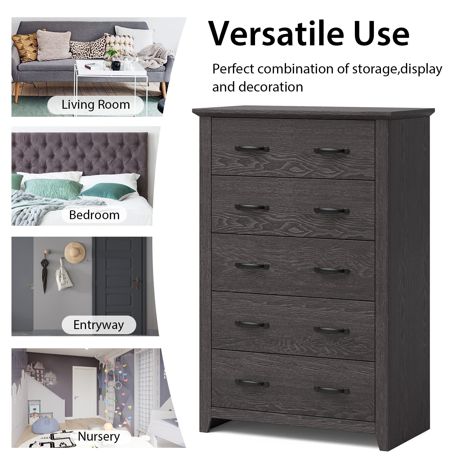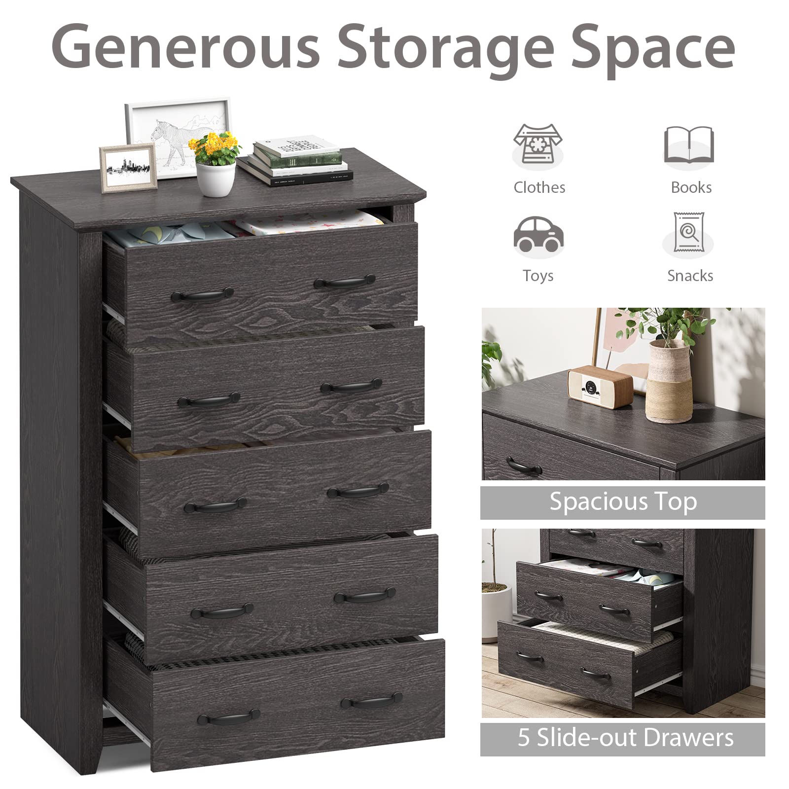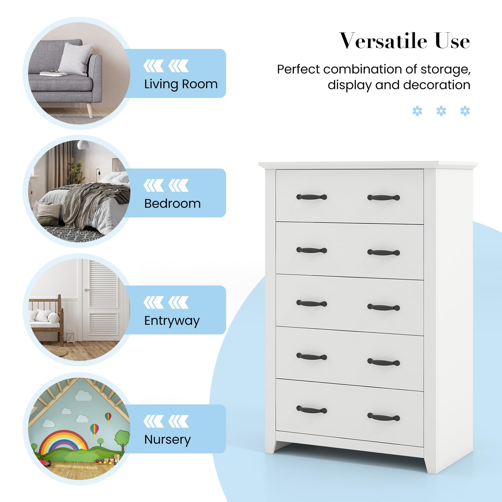 - 5-Drawer Storage Space: The tall storage dresser features 5 slide-out drawers(size: 23.5"x 13.5"x 5.5", offering ample storage space to keep daily essentials well organized. In addition, the spacious top is a perfect platform to display decorations and other items.