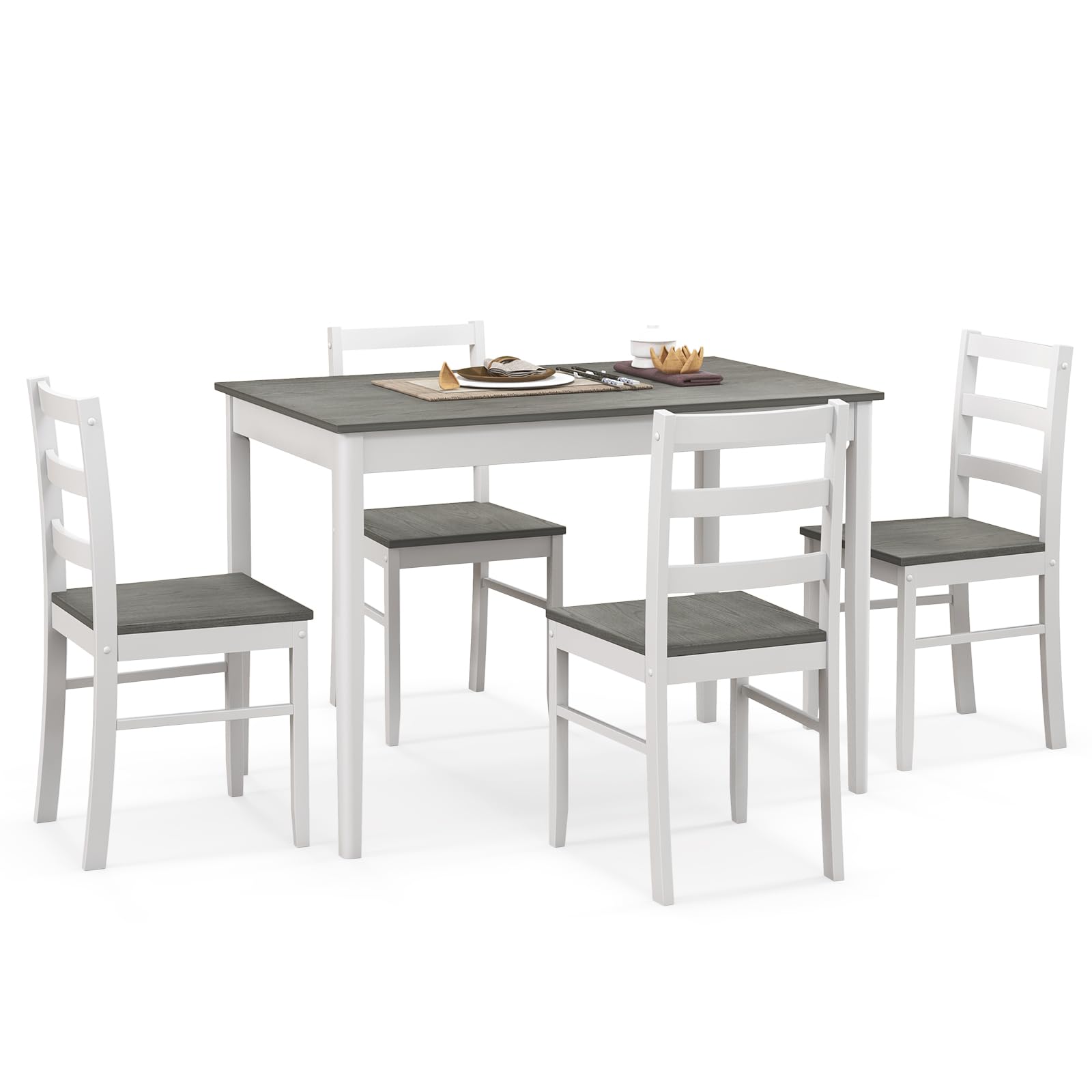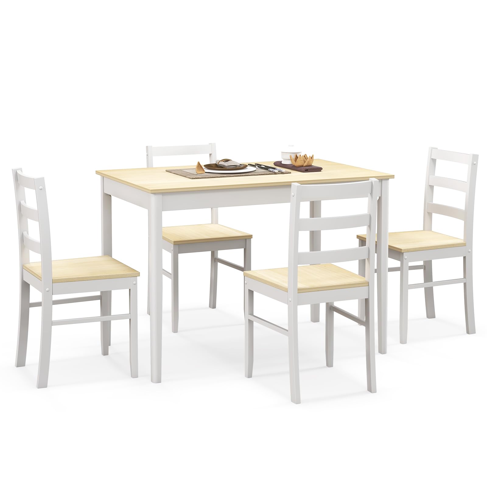 - Dining Table Chairs Set of 4: The 5-piece kitchen dining set includes a rectangular dining table and 4 wooden dining chairs, allowing you to enjoy delightful dining or drinking time with family or friends. The table measures 45” x 28” x 30” (L x W x H), and the chair measures 16” x 18” x 34” (L x W x H).