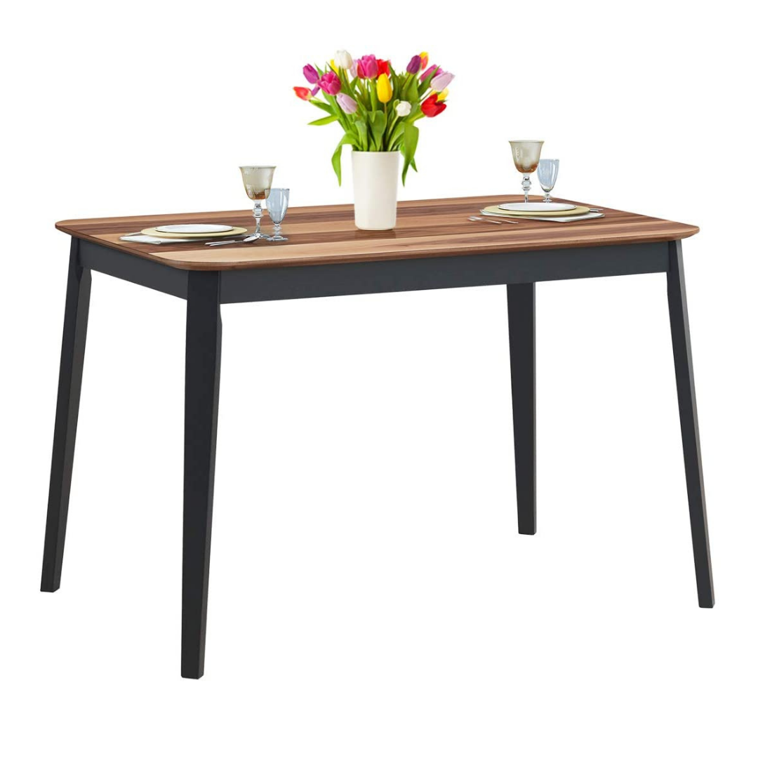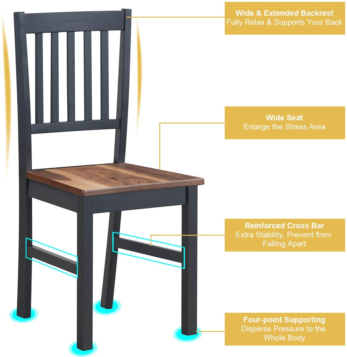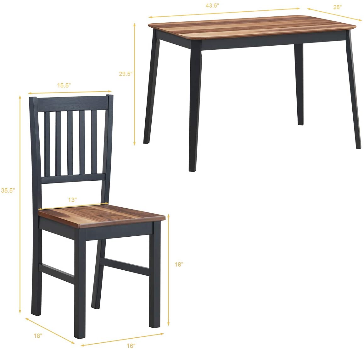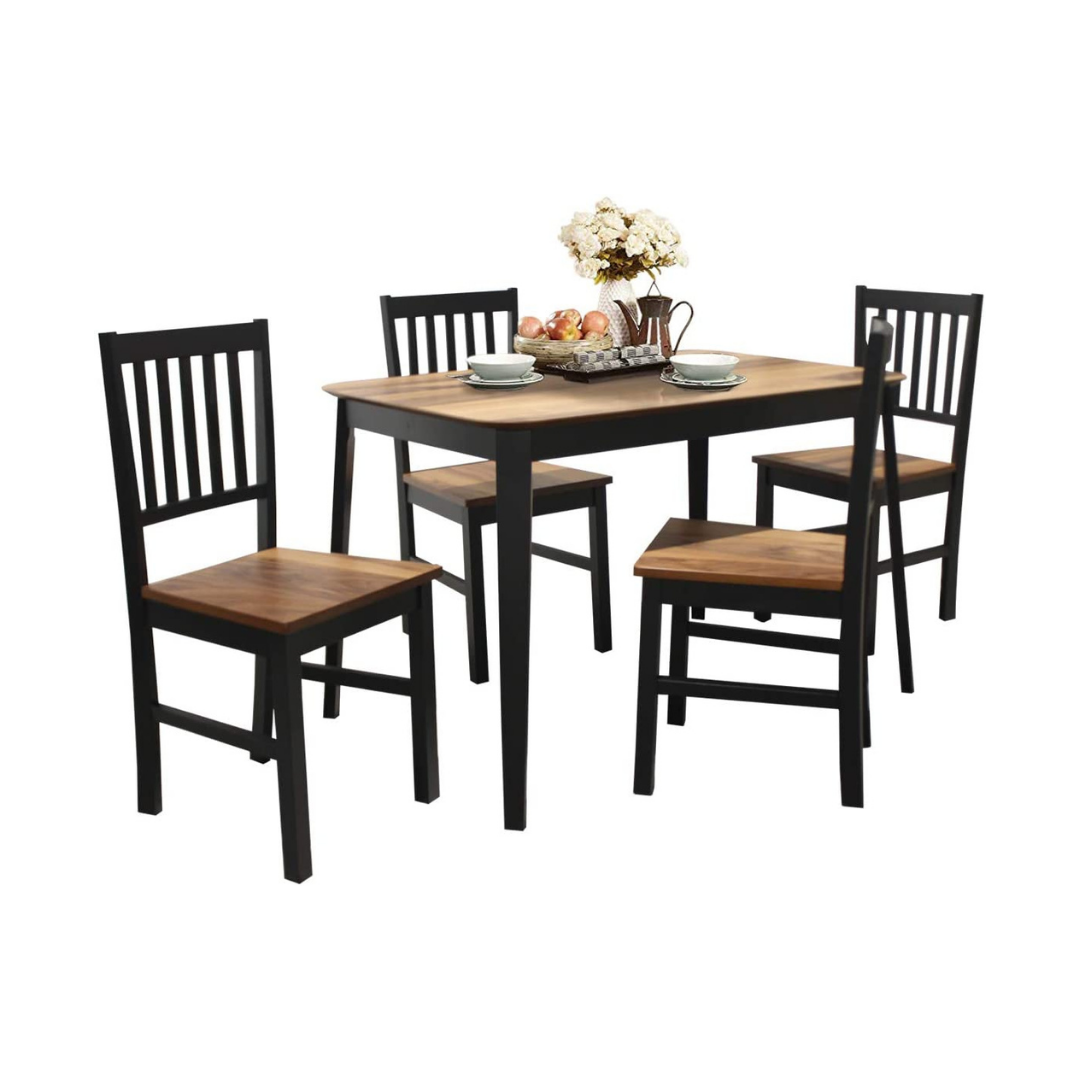 Crafted from sturdy wooden frame with rubber wood legs, it is strong enough for a long-term serving time. The 4 wooden chairs with ergonomic curved backrest can effectively distribute the pressure to provide a comfortable seating experience. The dining table set is suitable for gathering your family or friends to enjoy dinner leisurely. With its simple and modern style, it is an attractive addition for home, apartment and restaurant.