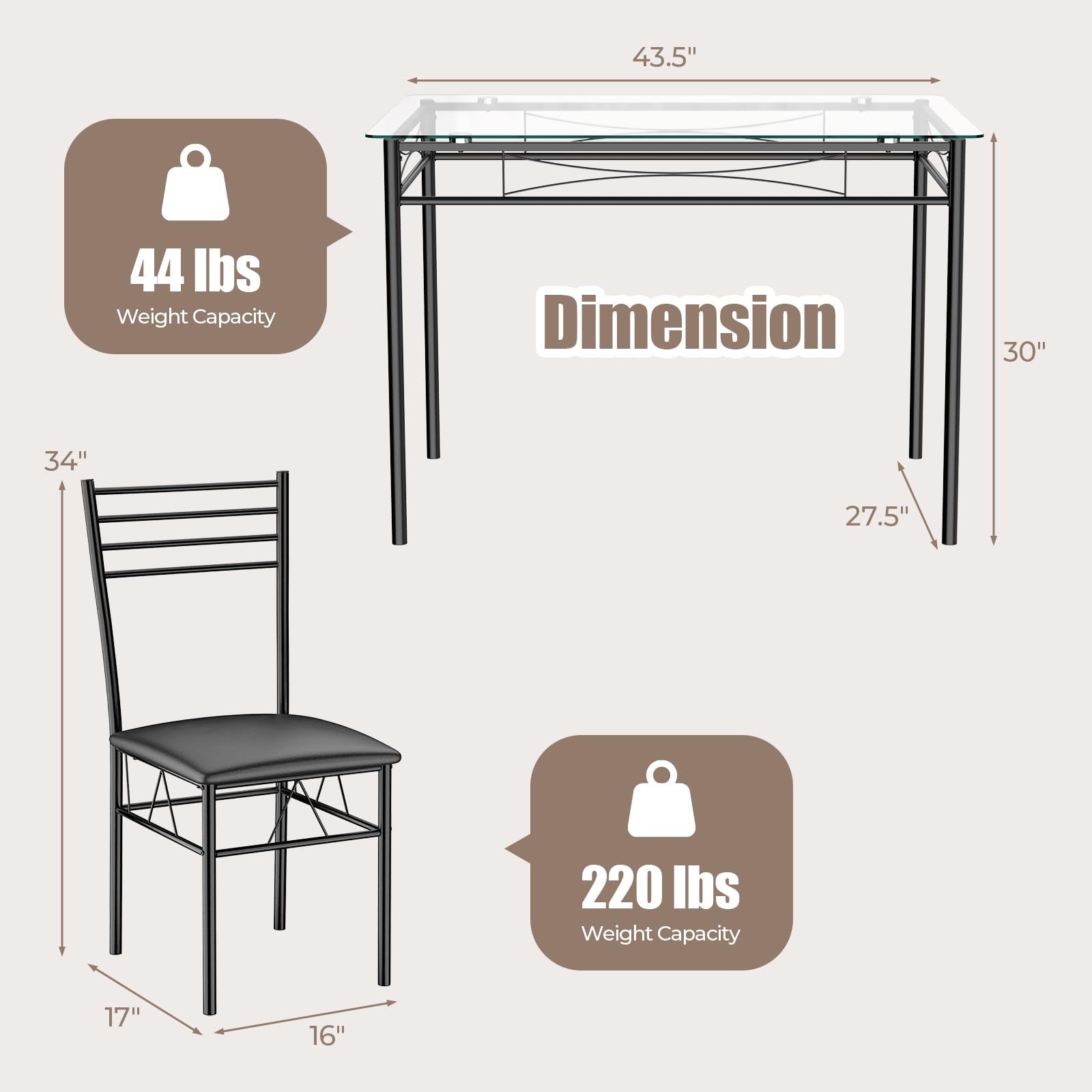 Weight Capacity of Each Chair: 220 lbs