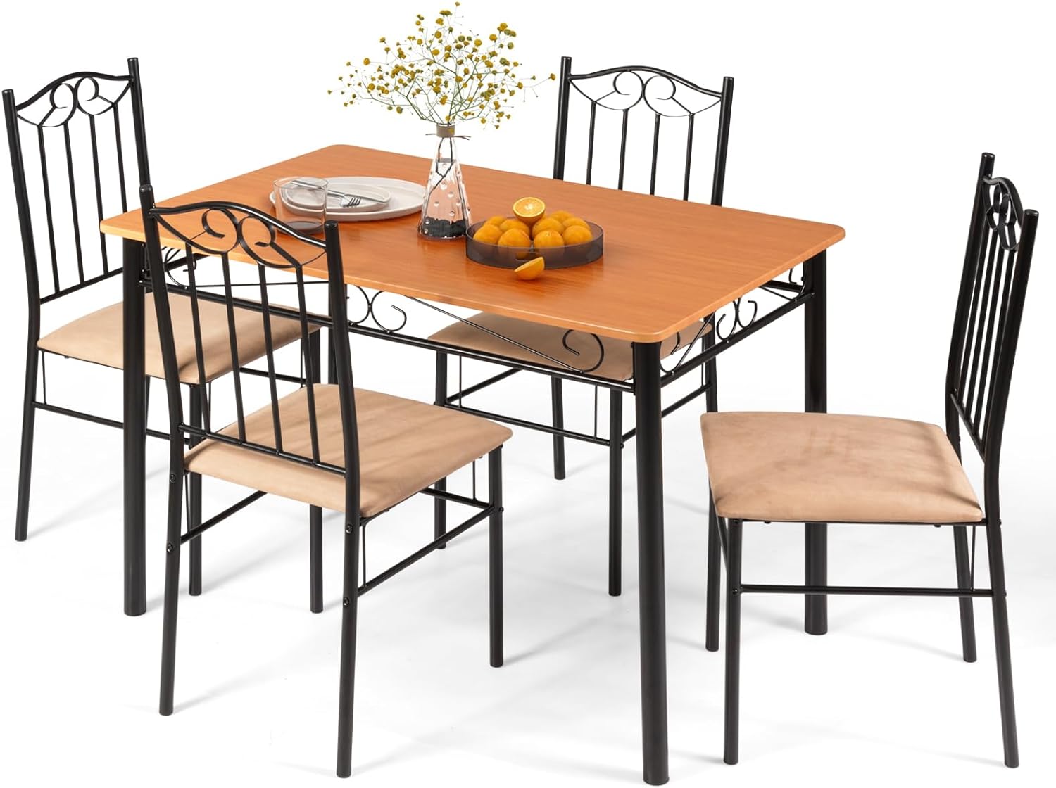 - 5-Piece Furniture Set: The kitchen dining room furniture set includes a rectangular table and 4 chairs, providing the ideal solution for family gatherings and entertaining friends. Besides, with its modern appearance and sleek lines, the dining set can perfectly blend into any home style.