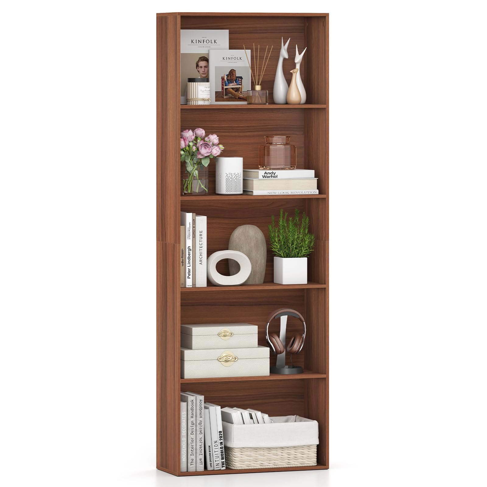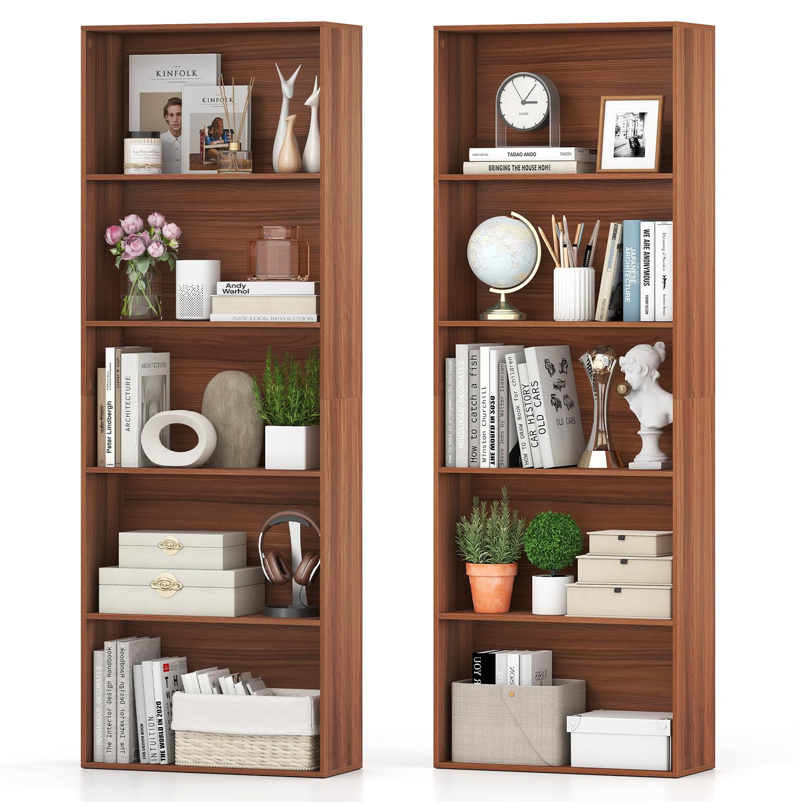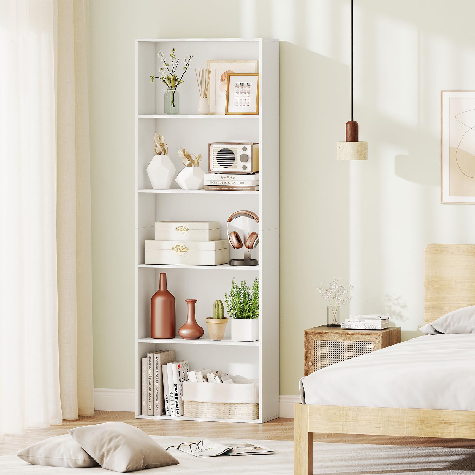 The 5-tier bookshelf is perfect for storing books, decorations, and other essentials. Its modern design, complete with concealed screw holes, ensures a sleek appearance. Safety is prioritized with dual anti-tipping kits that keep the bookshelf firmly in place. Suitable for various rooms like living areas, bedrooms, or home offices, this unit also includes protective foot pads to safeguard your floors from scratches. The smooth surface makes cleaning a breeze, allowing you to effortlessly maintain a tidy and stylish space. More practical details await your discovery.