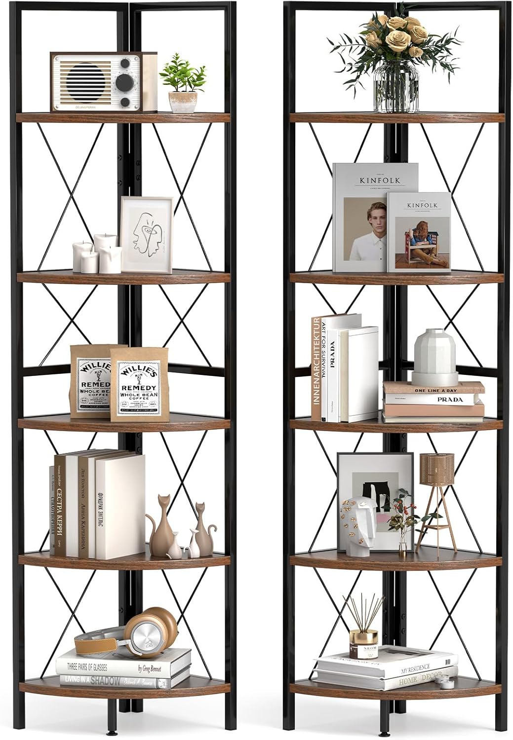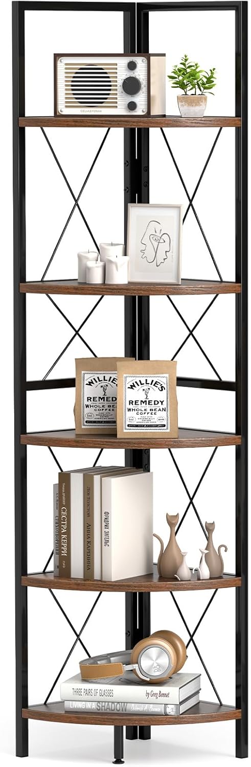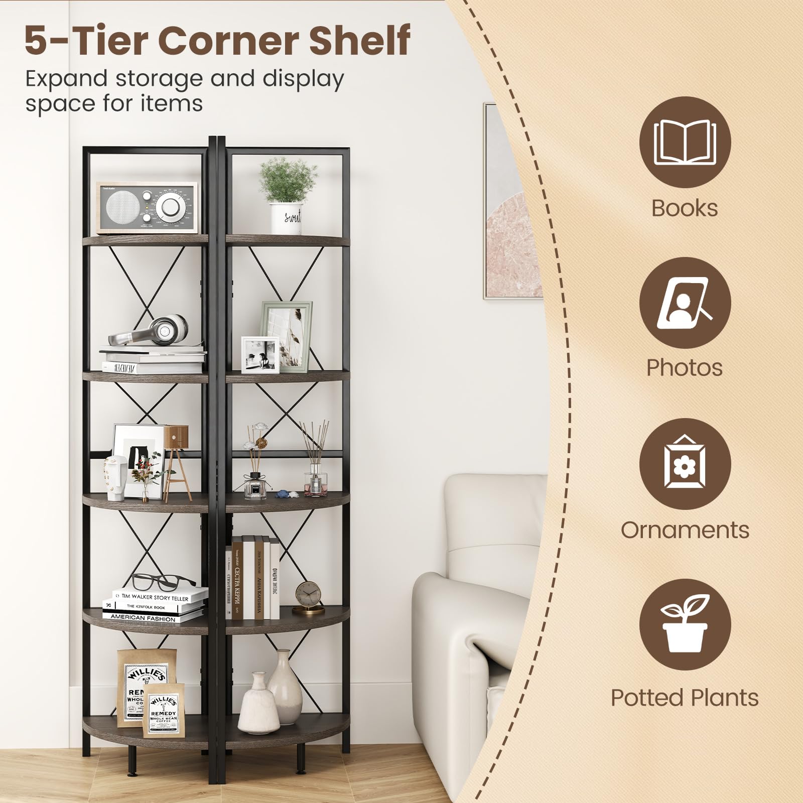 - [5-Tier Open Display Shelf]: Each corner shelf is thoughtfully spaced to accommodate items of various sizes, such as books, ornaments, potted plants, and photos. The open design makes it easy to access your belongings and keep them neatly displayed.