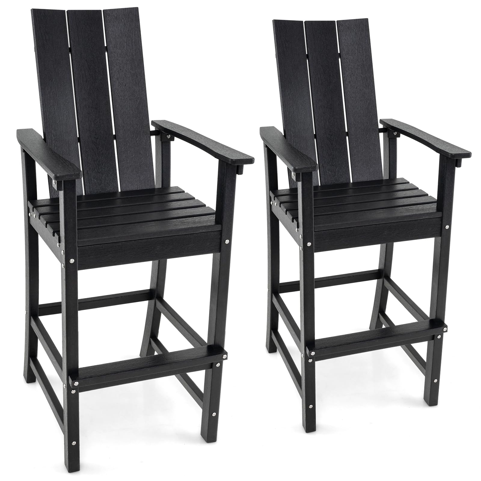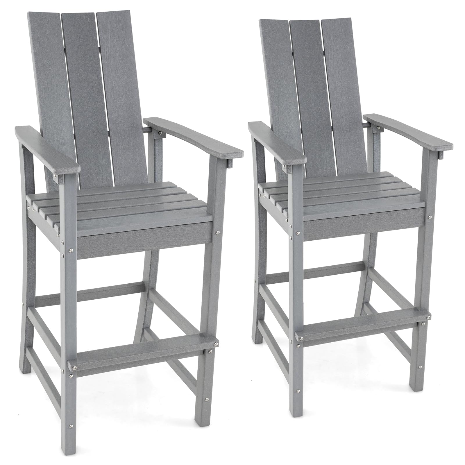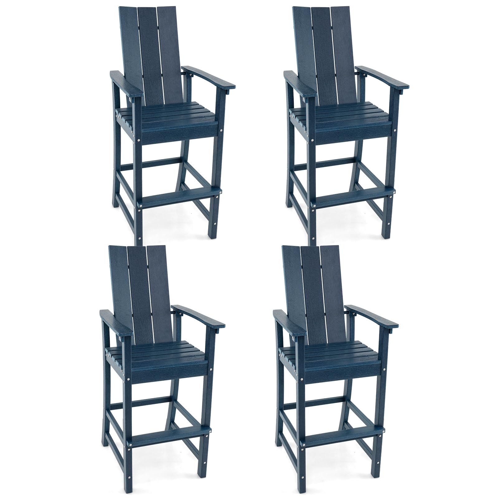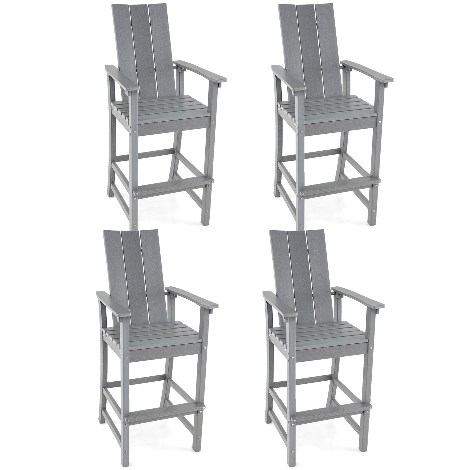 Elevate your outdoor space with our chic and durable tall Adirondack chair, ideal for gardens or patios. Constructed from weather-resistant HDPE with a stylish wood grain finish, this patio bar chair is built to withstand the elements while maintaining its pristine appearance. The ergonomic design features a comfortable 104° backrest, wide armrests, and a convenient footrest, ensuring optimal relaxation and effortless support for up to 330 lbs. With a 30-inch seat height designed to neatly fit under most outdoor bars and counters, this lawn chair combines both style and functionality. Setting up is simple, and maintenance is minimal, allowing you to unwind and enjoy your outdoor oasis with ease. Add this versatile and elegant piece to your outdoor living area for enhanced comfort and style.