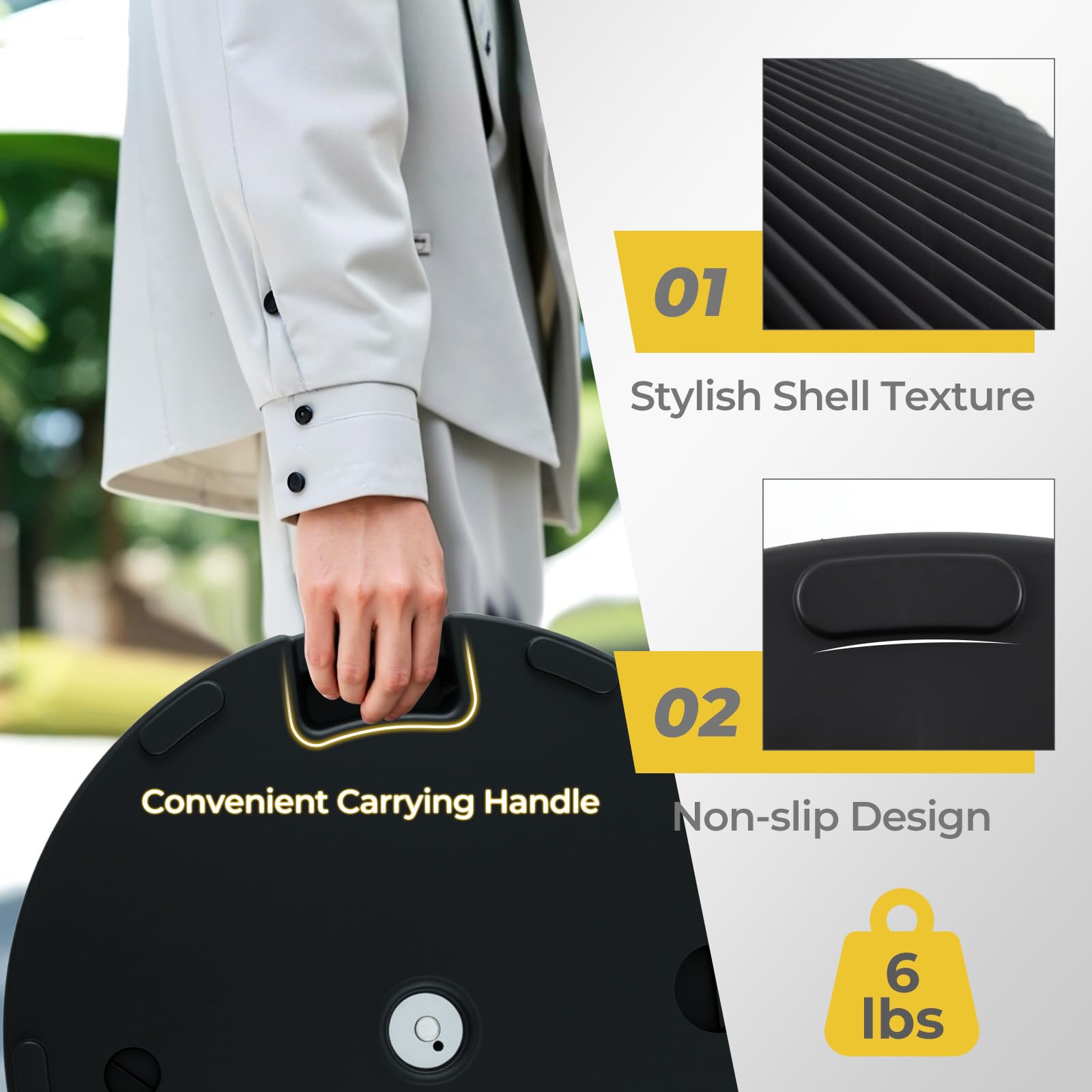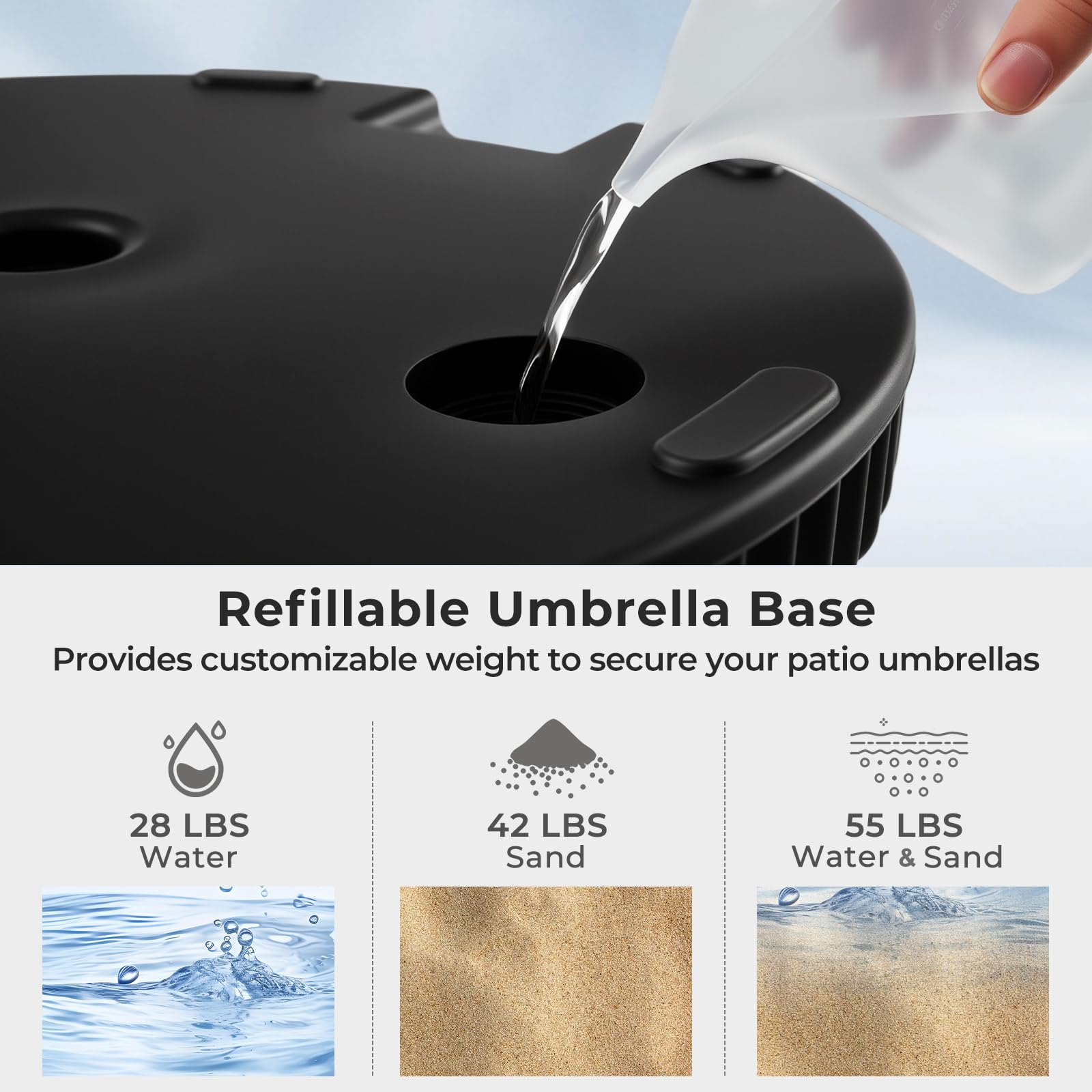 Keep your patio umbrella secure with this durable and elegant umbrella base! Crafted from premium HDPE material, it boasts excellent resistance to cracks, fading, and impact, ensuring long-lasting use. The refillable design supports up to 55 lbs of weight, providing outstanding stability to prevent your umbrella from tipping or swaying in the wind.