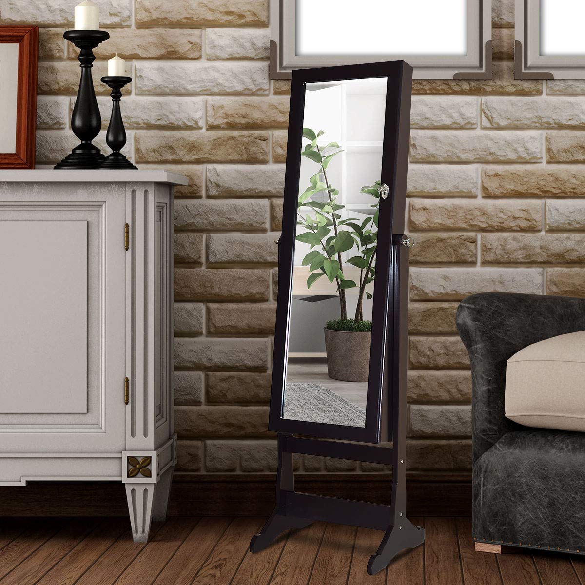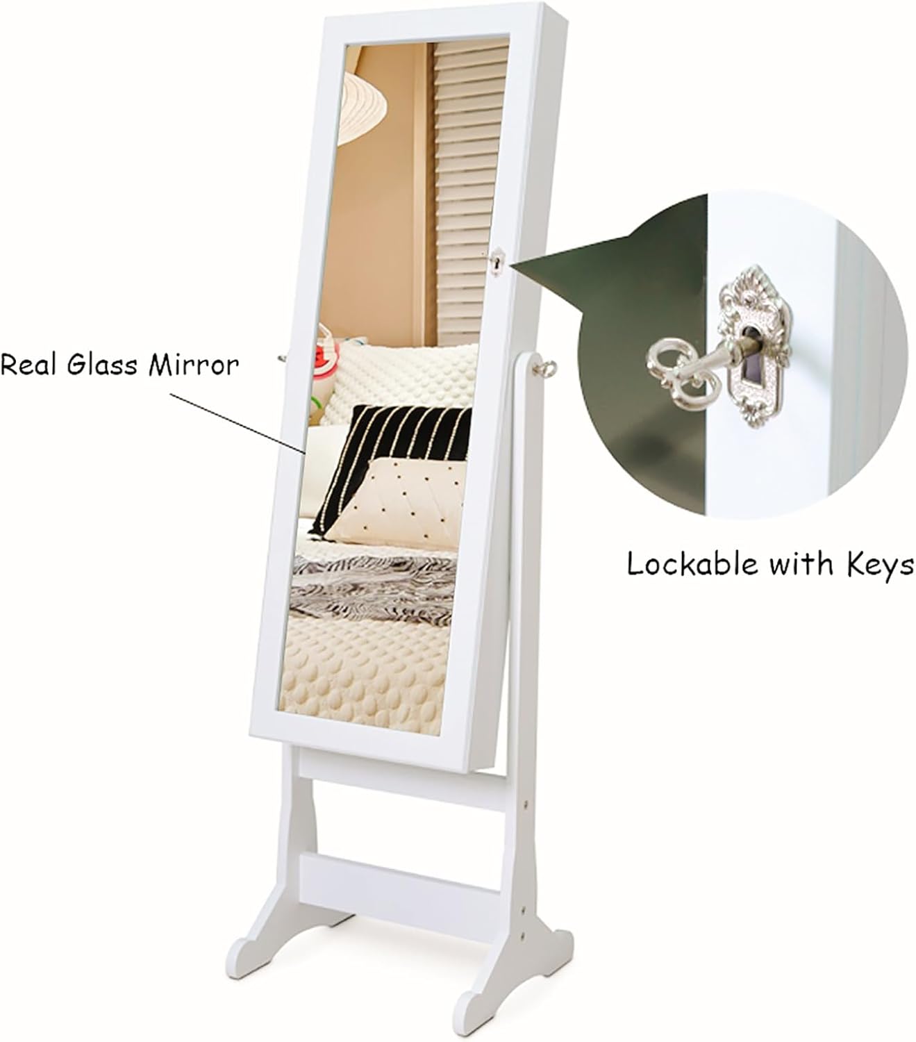 • 【Well-Made Jewelry Cabinet】This free standing jewelry cabinet is simple in shape and uses the MDF as main frame material. It has very good performance and effectively looks textured. The bottom of the foot has a curved design, which can firmly grasp the ground.