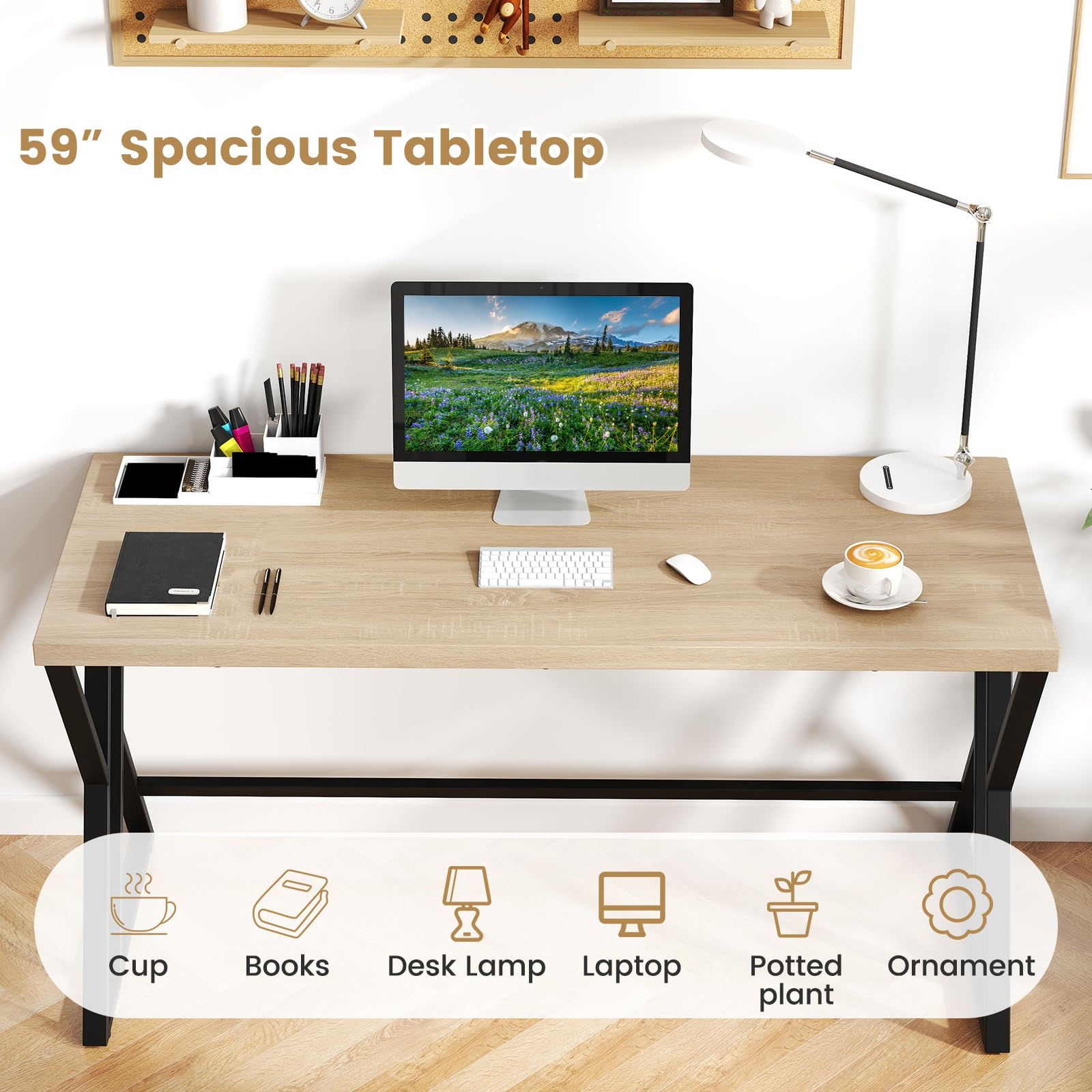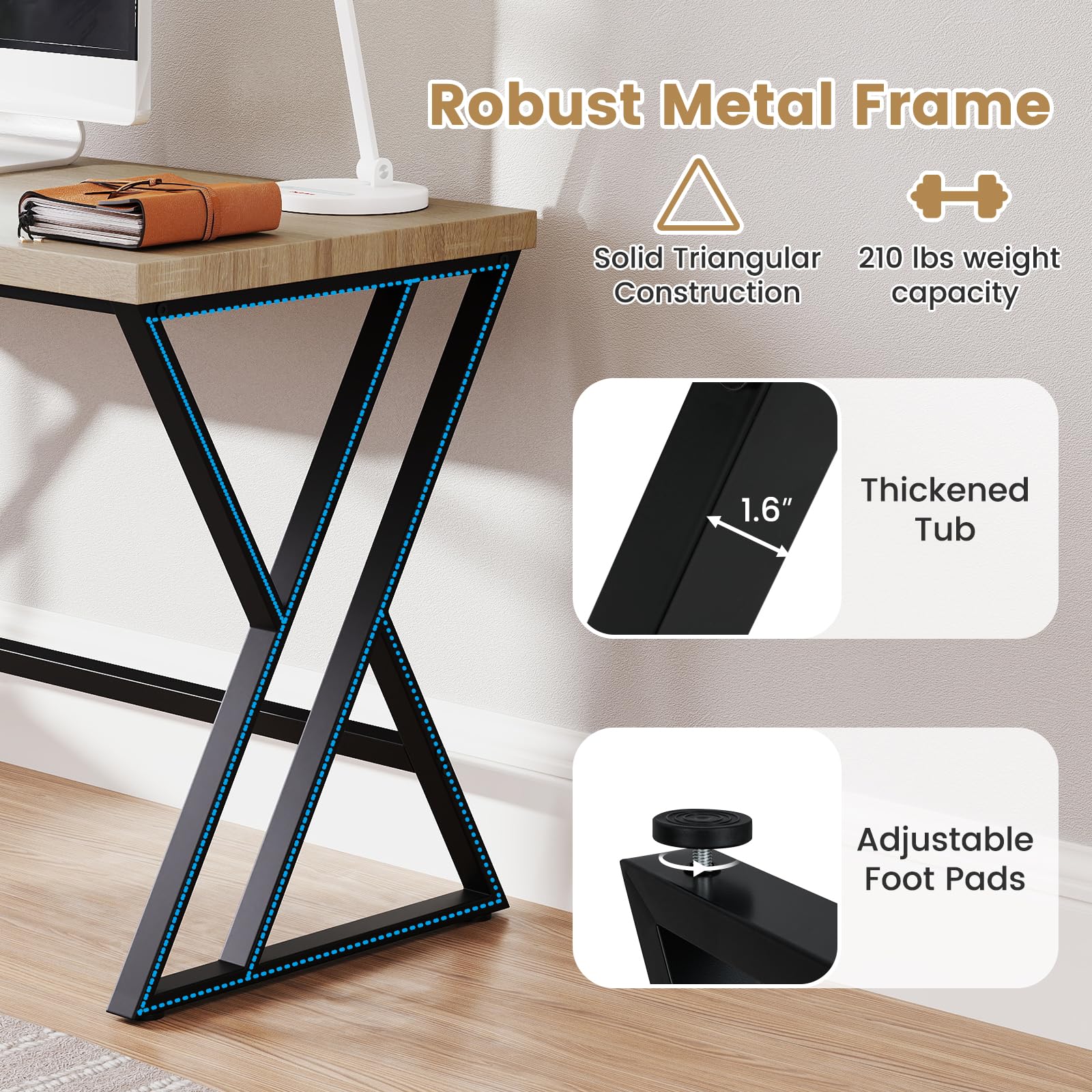 Upgrade your workspace with this sleek and functional writing desk that perfectly balances modern style and everyday practicality. Designed with a clean tabletop and striking Z-shaped legs, it adds a touch of contemporary elegance to any room. The spacious 59"W x 24"D surface easily accommodates your laptop, books, and office essentials, while ample legroom underneath ensures comfort throughout the day. Built for durability, the desk features a sturdy metal frame with a double-triangle structure and a 1.6" thick top that resists daily wear. A crossbar enhances stability and doubles as a footrest for added comfort. With adjustable foot pads for uneven floors and easy-to-follow instructions, this desk is as convenient to set up as it is to use.
