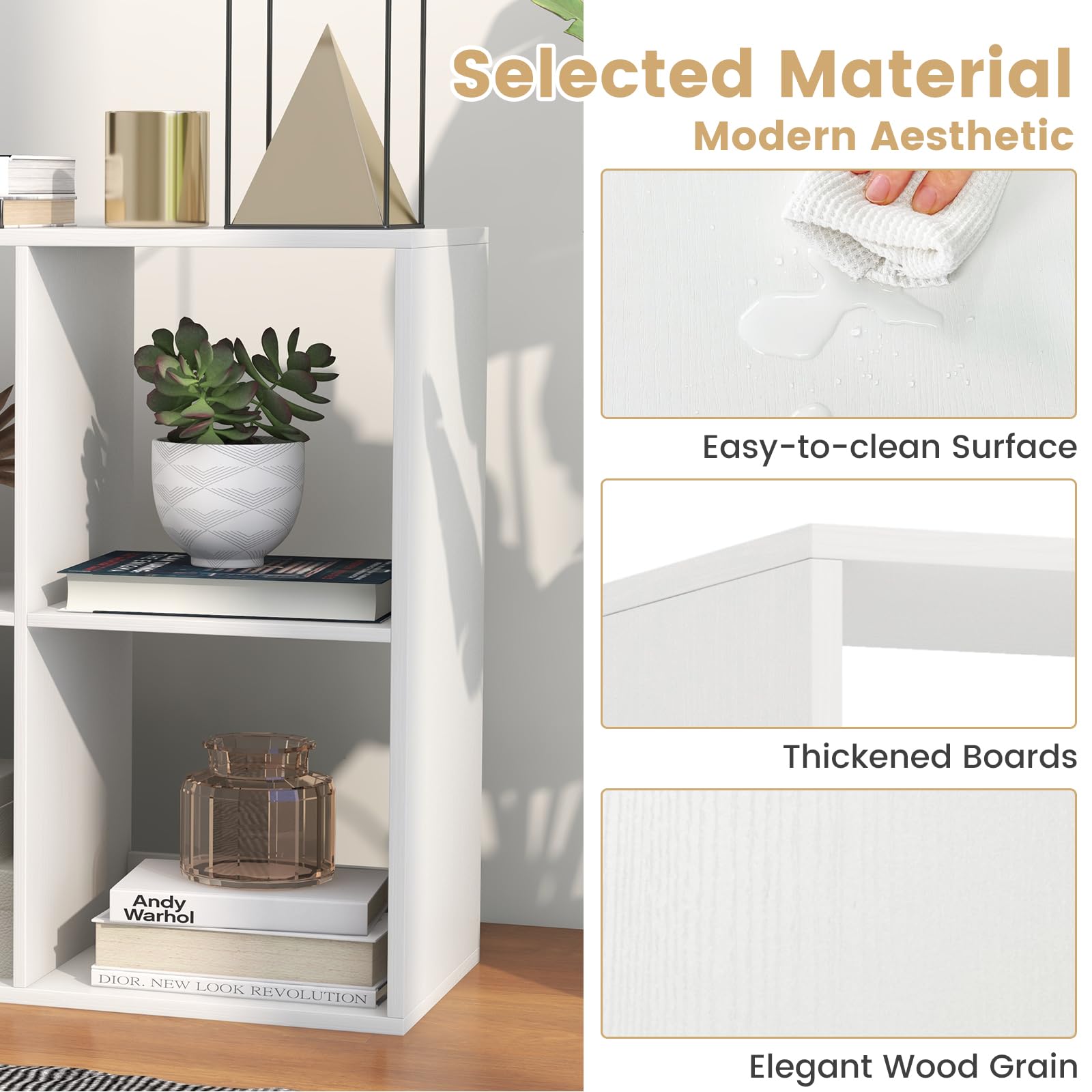 Transform your space with elegance & ease! With options of 6 spacious storage cubes, this modern bookcase effortlessly organizes everything from books to knick-knacks. Featuring a smart open-back design for hassle-free access and a sophisticated wood grain finish that elevates any style. Stability? Checked - thanks to the sturdy anti-tipping design and non-slip foot pads that keep your home safe around curious kids and pets. Daily cleaning is a snap! Bring this stunning piece home and keep your space tidy and styled for years to come!