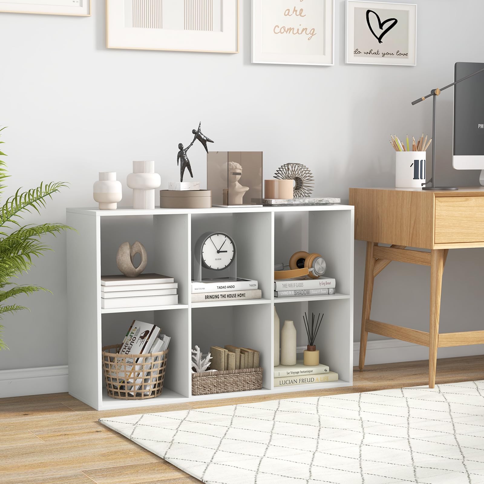 - [Versatile Storage Solution]: The freestanding bookshelf boasts a spacious top and 6 storage cubes, perfect for organizing books, decorations, or other household essentials. Various sizes of bookcase is ready for your choice in any room.