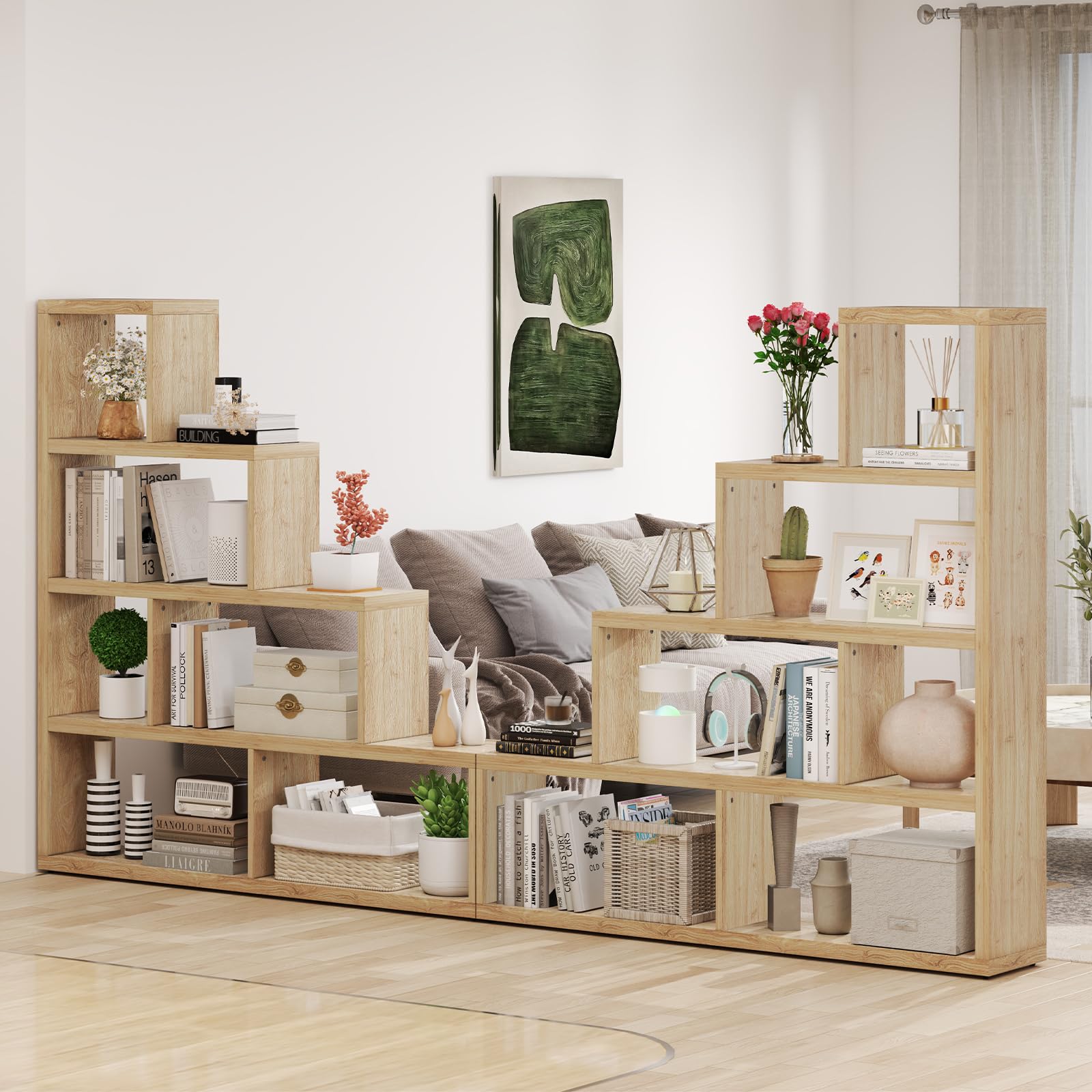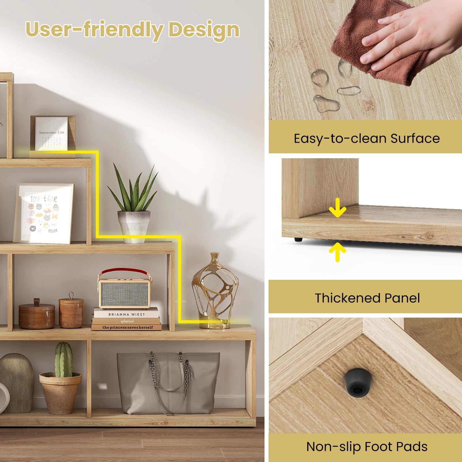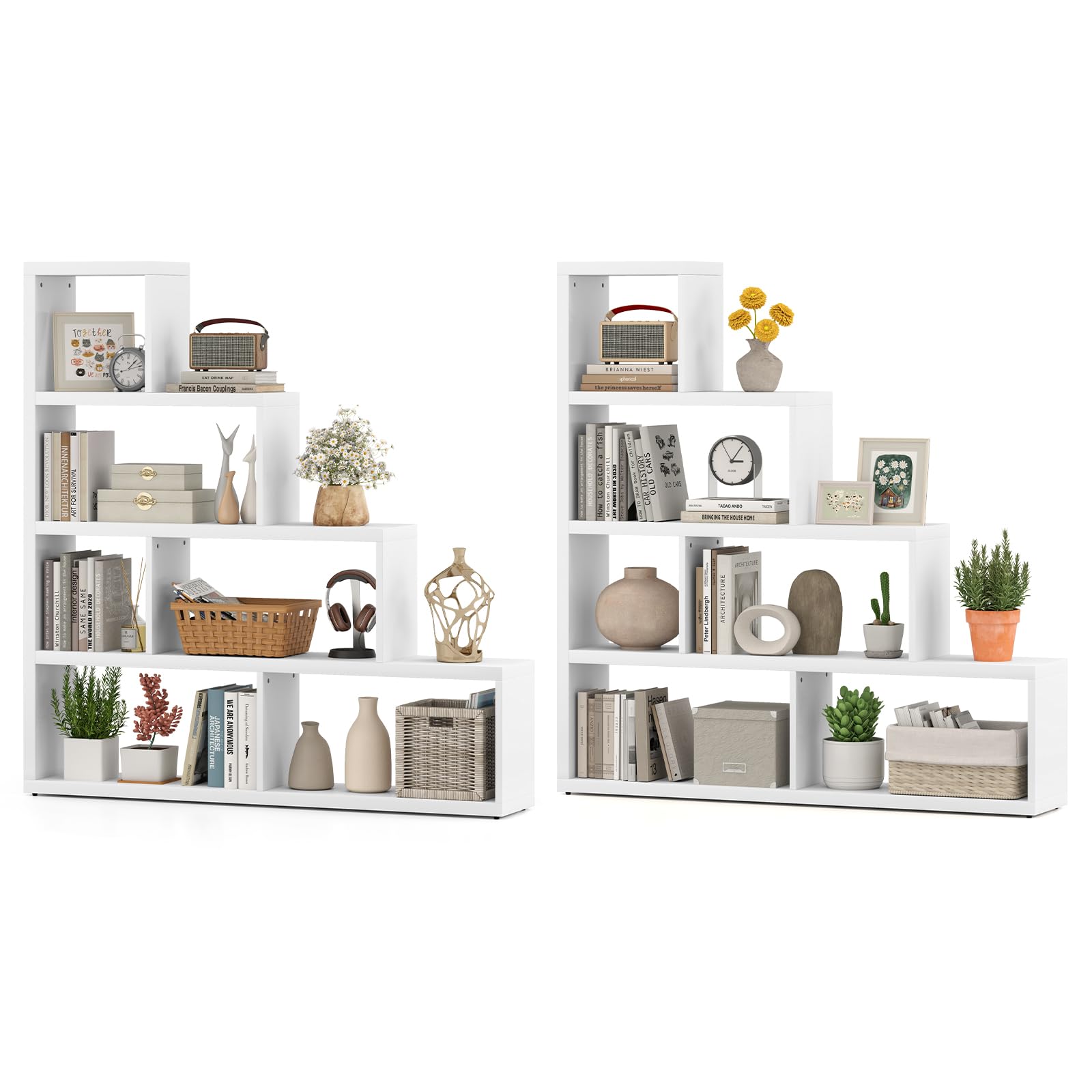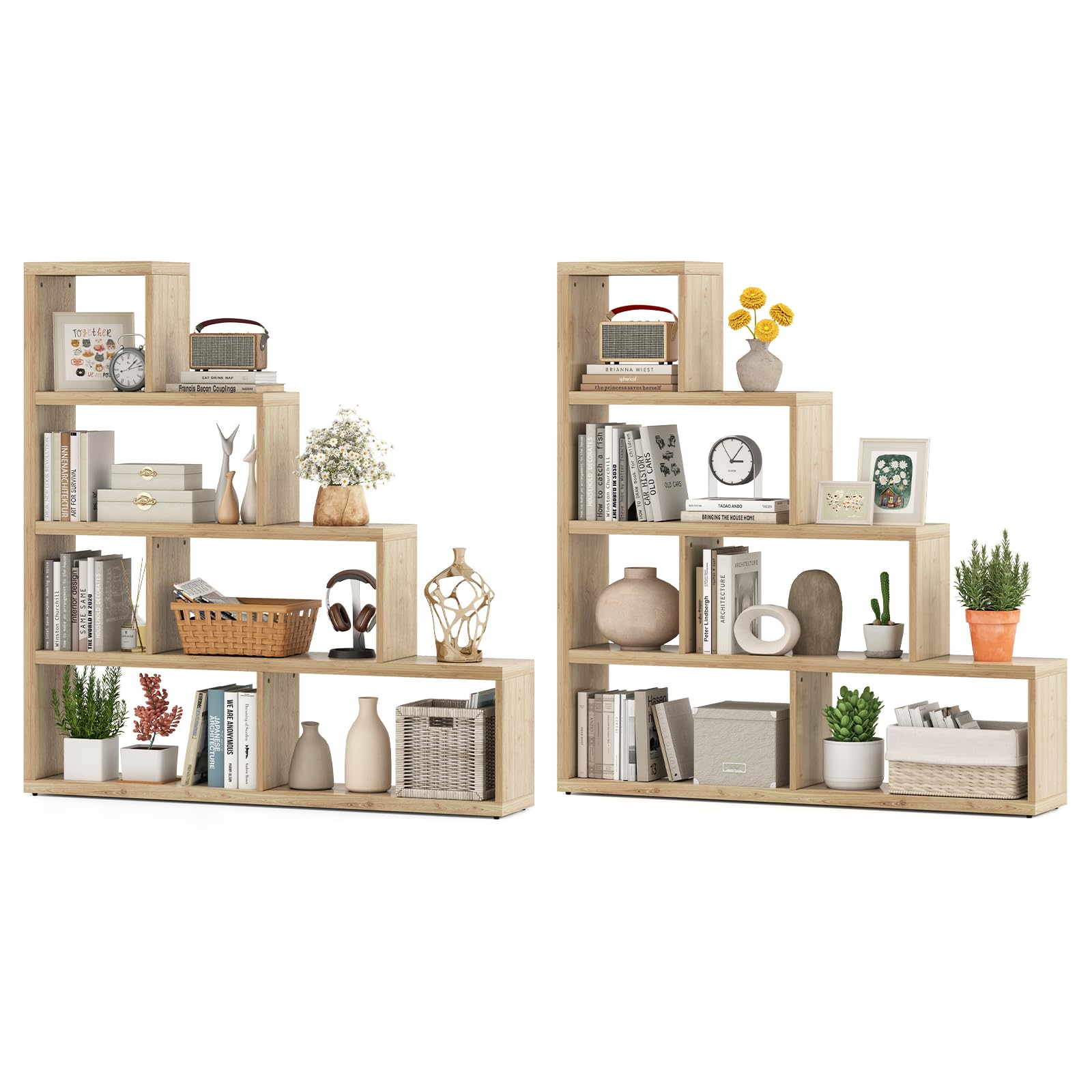 Effortlessly organize books, photos, and plants with the ladder design