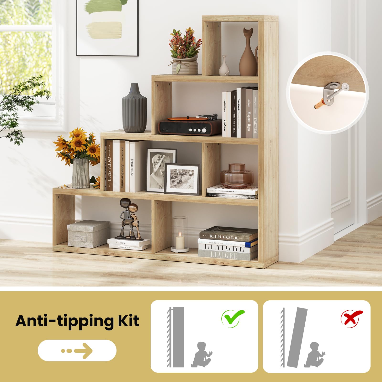 Keep the bookshelf upright with the help of anti-tipping kits