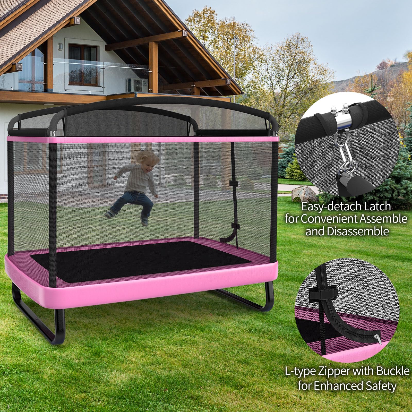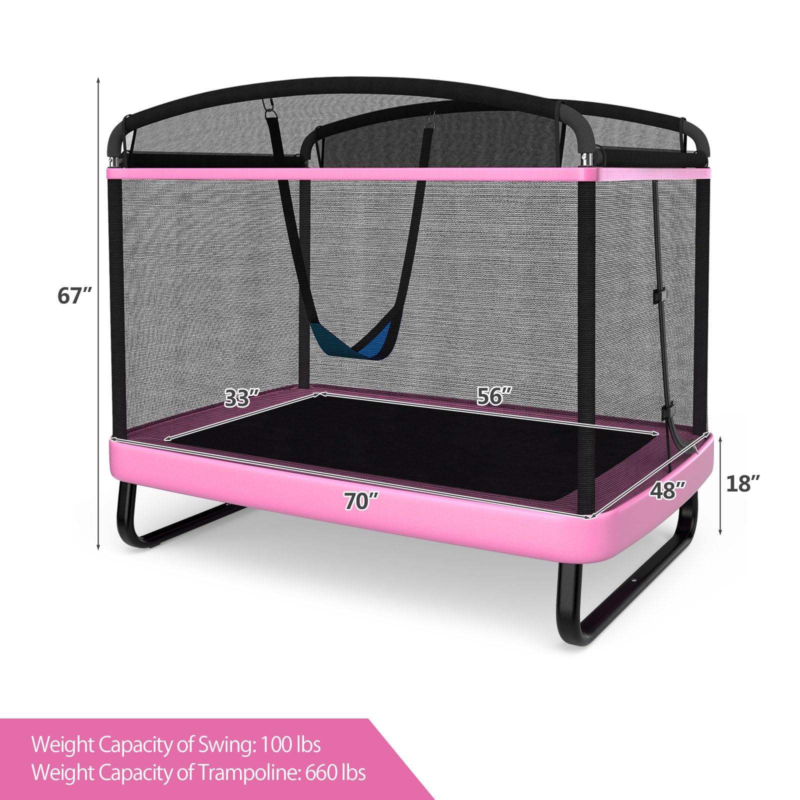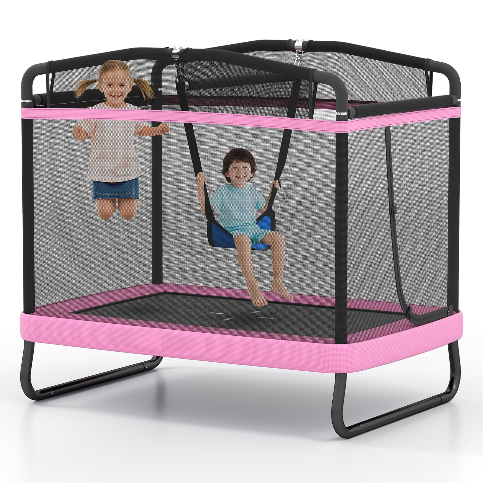 Designed to combine fun, safety, and durability, this 3-in-1 trampoline set offers the ultimate outdoor play zone. It features a detachable swing and horizontal bar, giving kids multiple ways to play while freeing up parents' hands. The sturdy galvanized steel frame and jumping mat ensure long-lasting use, while 32–40 high-tensile springs deliver excellent bounce. Safety comes first with a gap-free design, soft foam padding, and a secure enclosure net. Whether in the backyard or garden, it makes a perfect gift to keep kids active and happy.