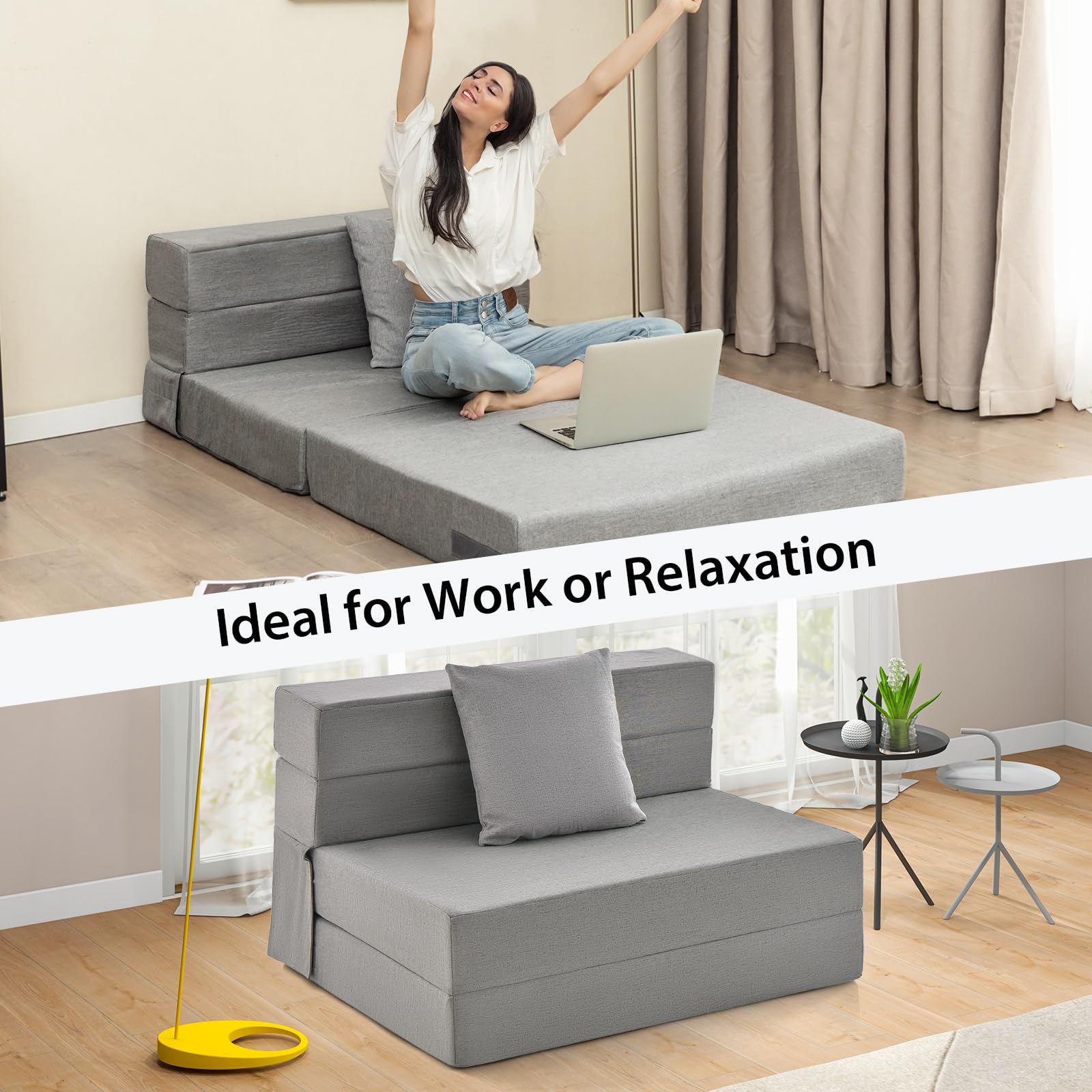 • [Customizable Tri-Fold Sofa Bed]: Our tri-fold sofa beds are available in a variety of forms to suit your needs. You can turn it into a recliner, lazy couch, mattress, or extra seat. Whether you prefer to sit up or lie down, you can effortlessly customize the sofa bed's form.