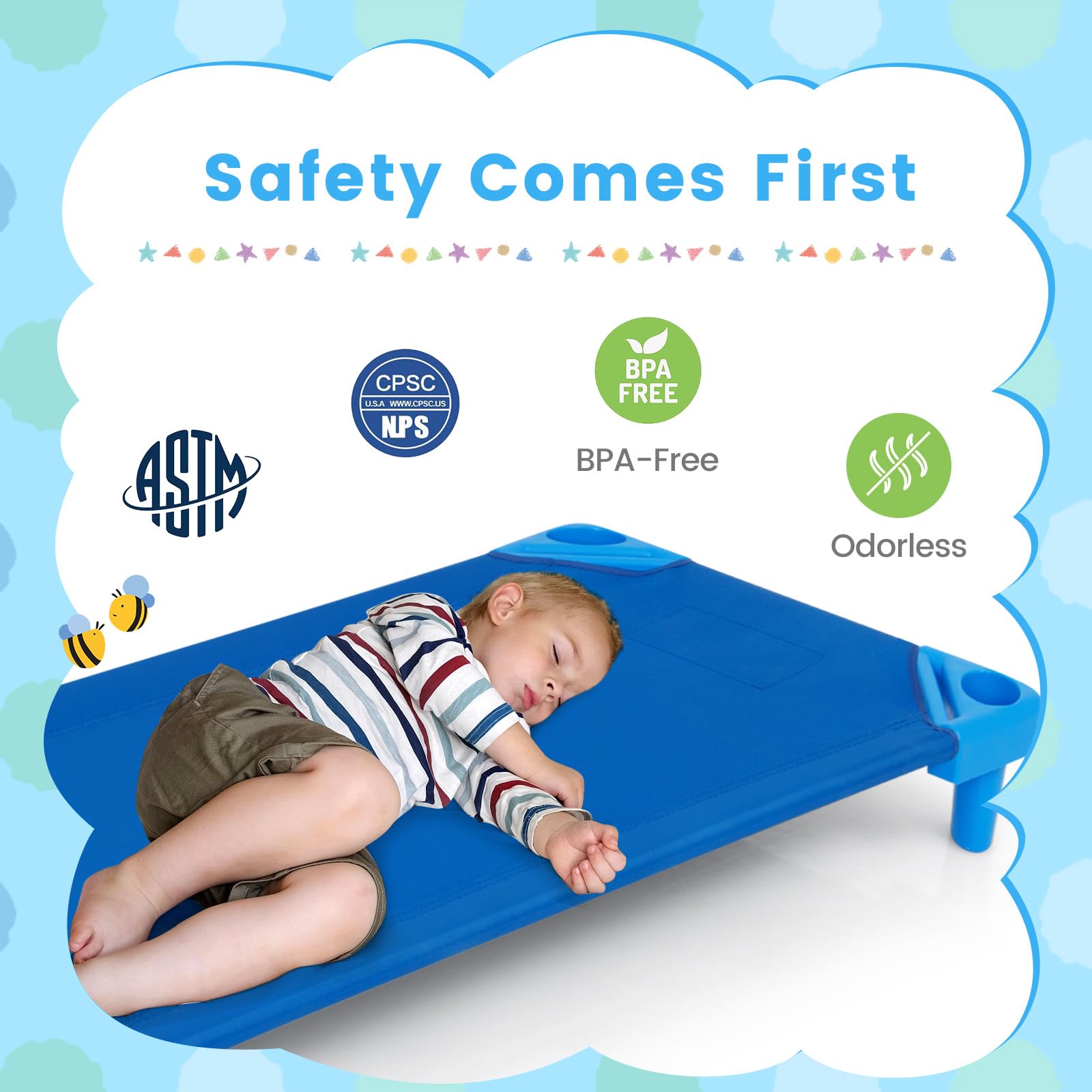 • Space-saving Stackable Design: Our daycare cot set features a lightweight and stackable design, allowing for easy and convenient storage when not in use, saving valuable space in your daycare or preschool.