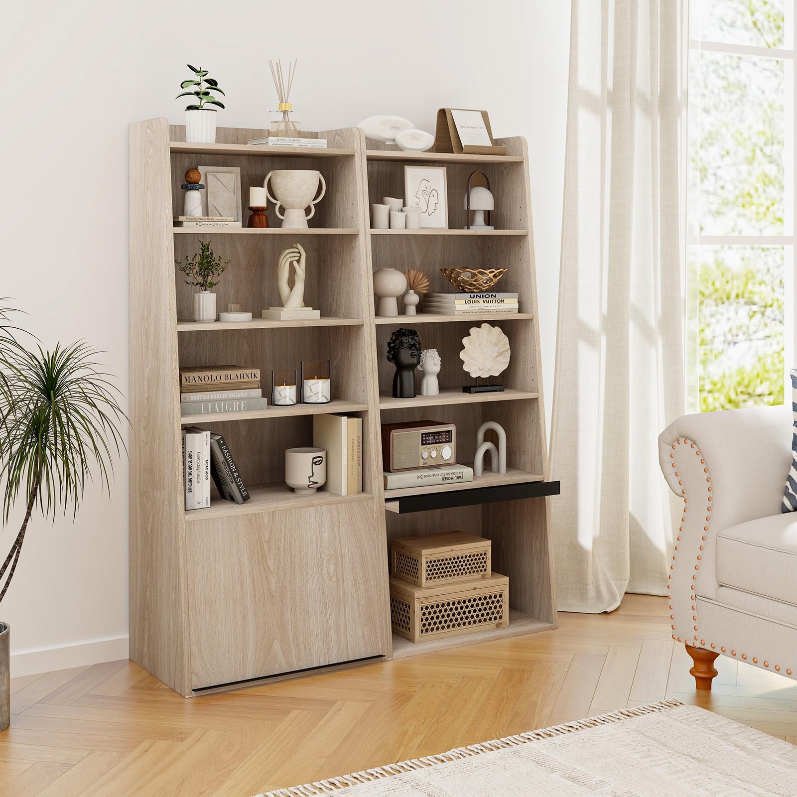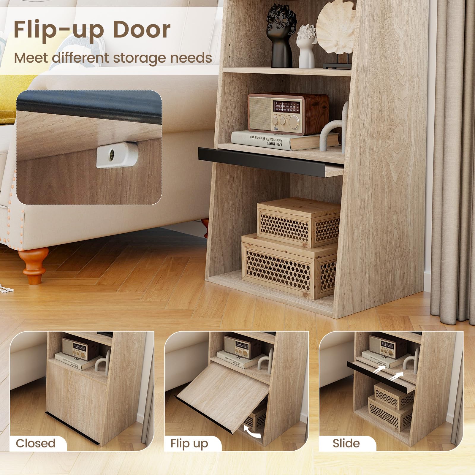 • [Hidden Compartment Design]: The lowest tier of the ladder bookcase features a convenient flip-up door that creates a hidden storage space for a clutter-free environment. The door smoothly slides under the shelf, saving space when open.