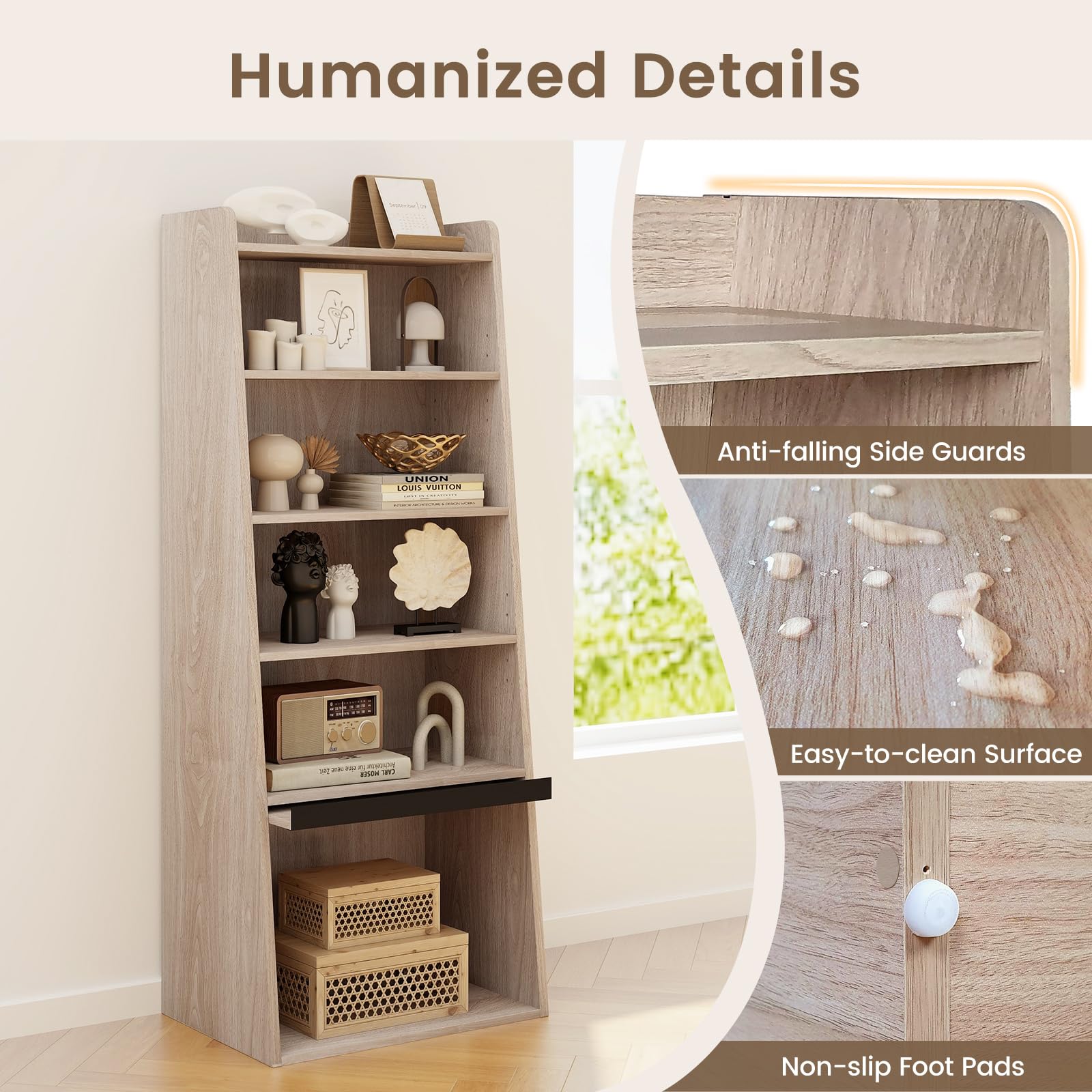 • [Safety Features]: Stay worry-free with the included anti-tipping kit that prevents the ladder bookshelf from wobbling or tipping over. The anti-falling side guards on the top shelf offer added protection against accidents.