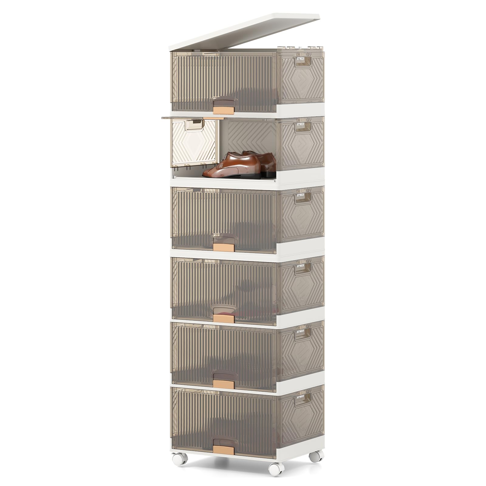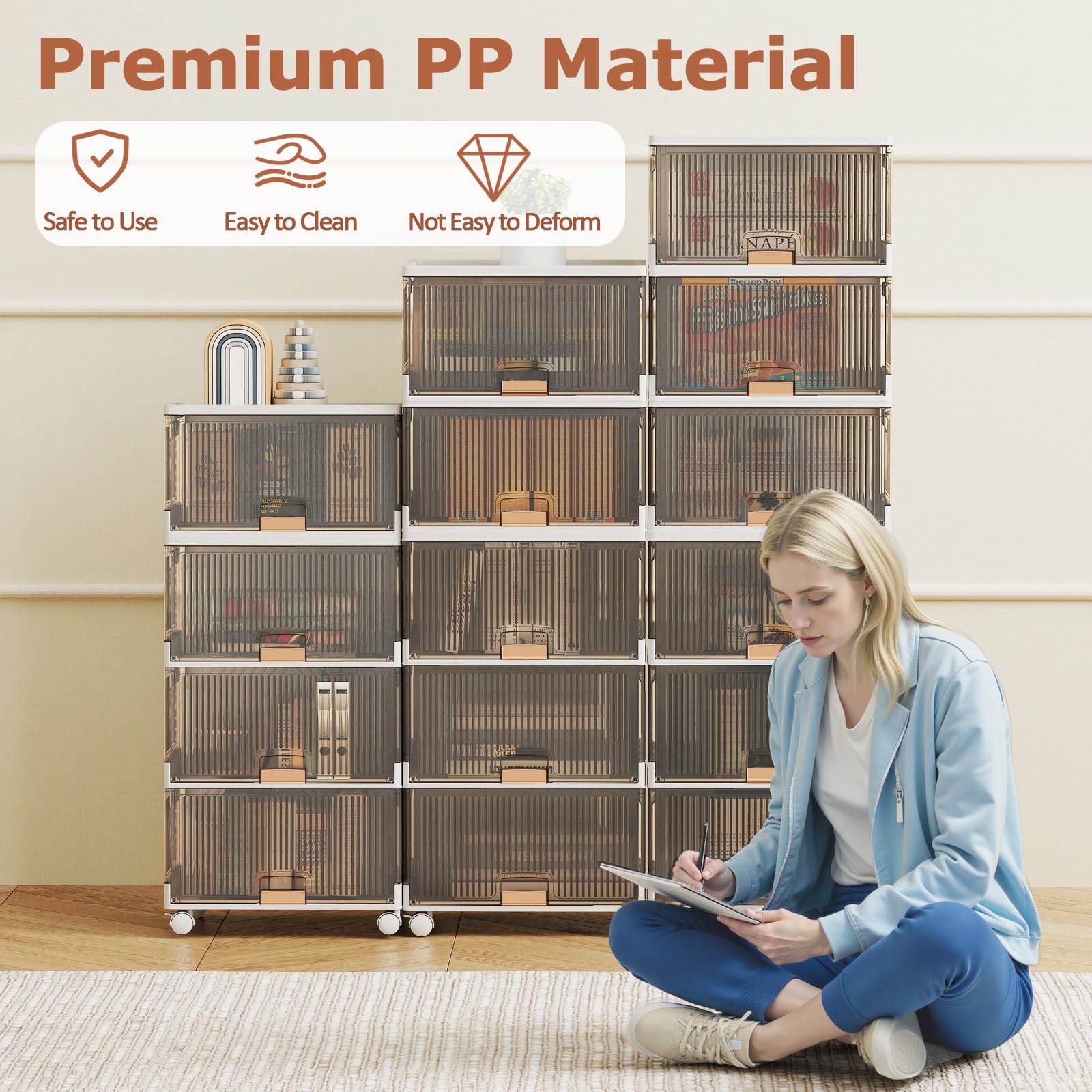 The stackable storage bin is a practical and versatile solution for keeping your belongings organized. With 13.5-27Gal large load capacity, it offers plenty of space to store shoes, clothes, books, or food. Its flexible modular design allows you to customize the layout by splitting and combining cabinets as needed. The collapsible bins are easy to fold for convenient storage and quick setup. Equipped with detachable universal wheels, the storage bin can be moved around effortlessly, and 2 lockable wheels provide stability when stationary. Crafted from premium PP material, the cabinet is deformation-resistant and safe to use. Convenient handles make it easy to reach items inside, while side clips ensure secure stacking for stability and organization in any space. The stackable storage bin is an ideal storage solution for various needs in your home.