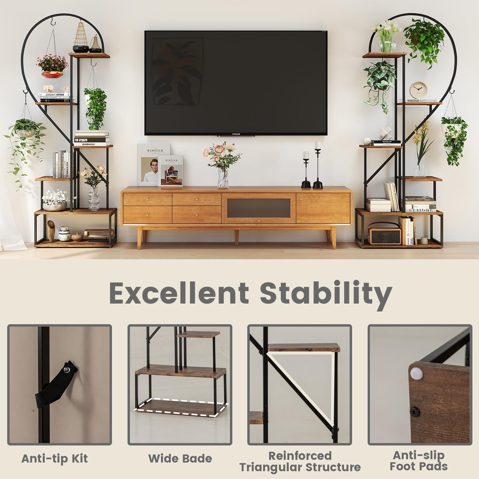 Large storage capacity for potted plants, books, photo frames, storage boxes, etc.