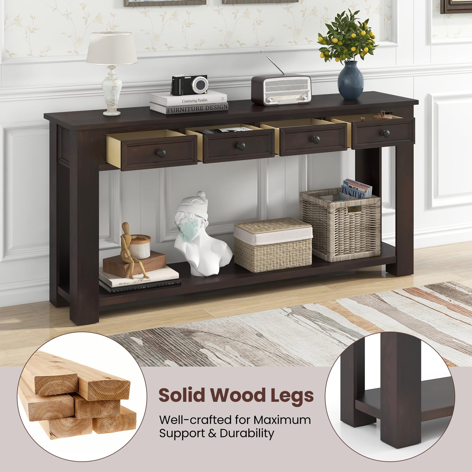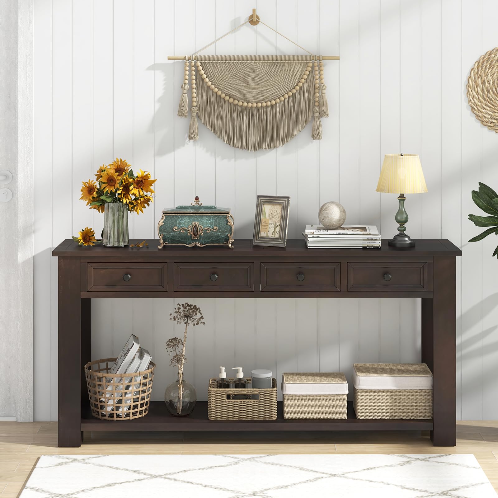 - [Abundant Storage]: This 63-inch entryway table provides a spacious tabletop surface for displaying decorative items or daily necessities. It includes 4 large storage drawers for organizing smaller items and an open shelf for extra storage space.