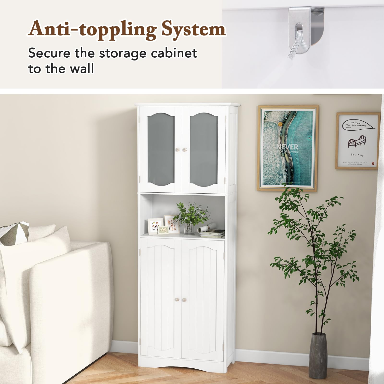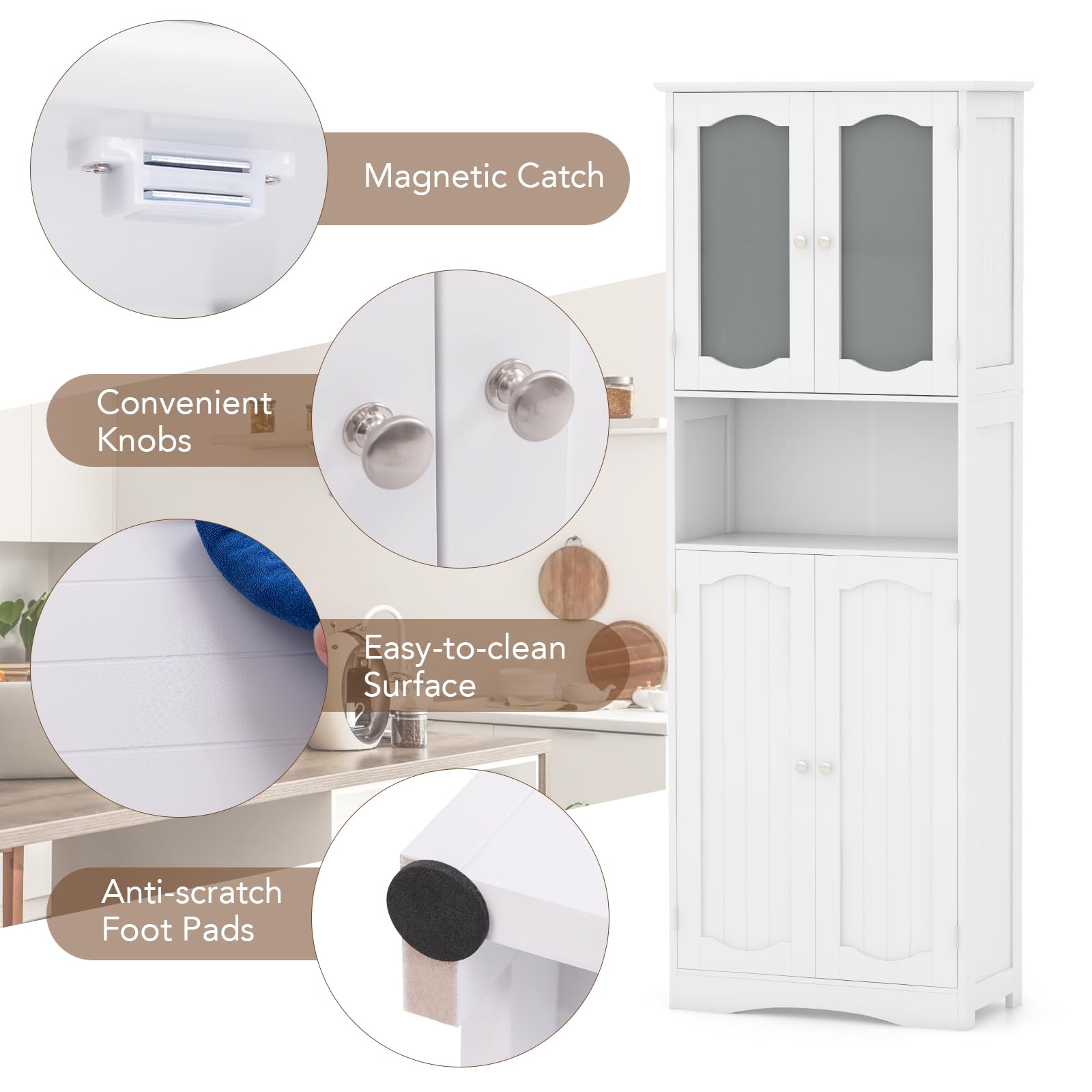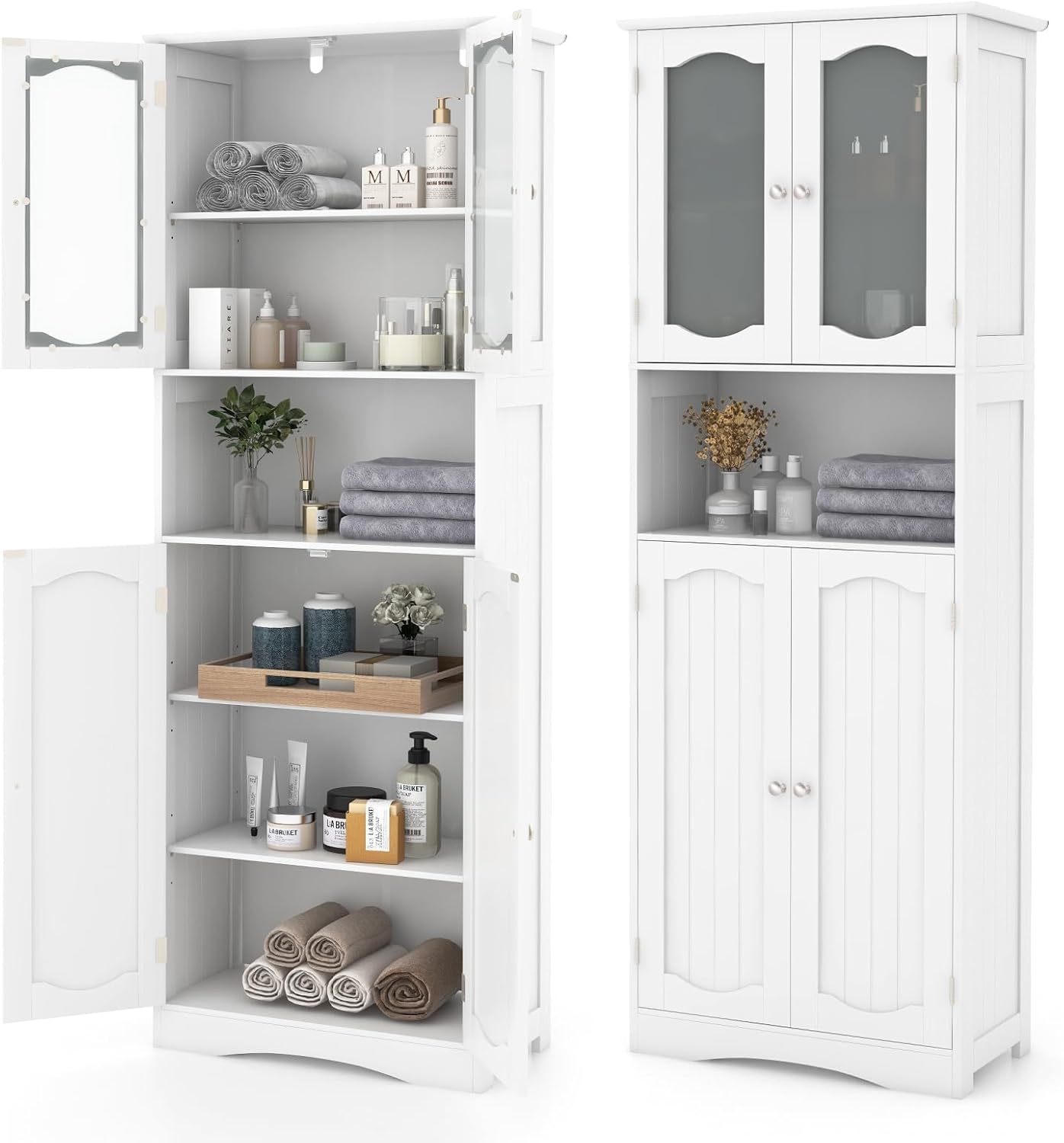 Giantex 64.5" Tall Bathroom Cabinet, Pantry Cabinet with Tempered Glass Doors, Adjustable Shelves