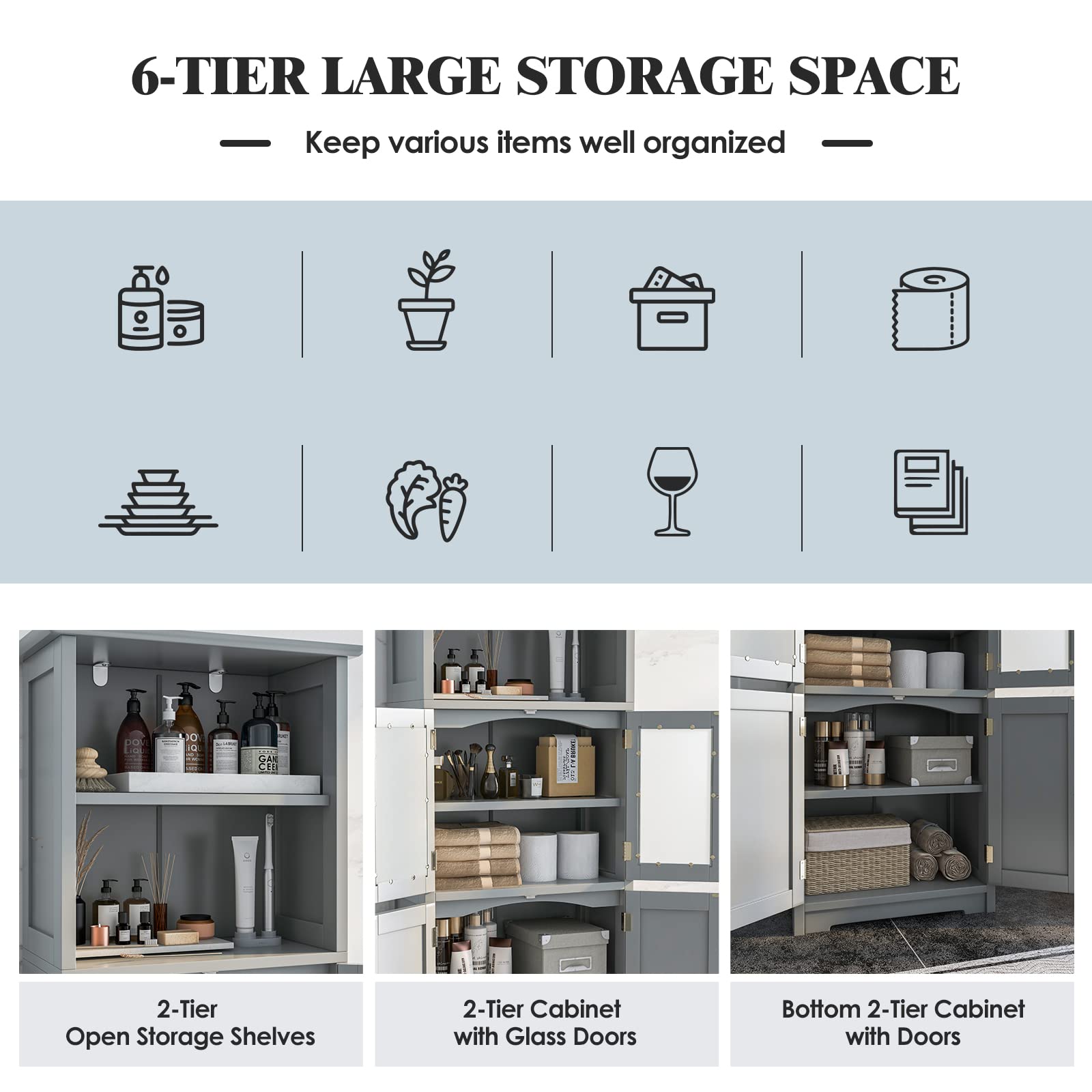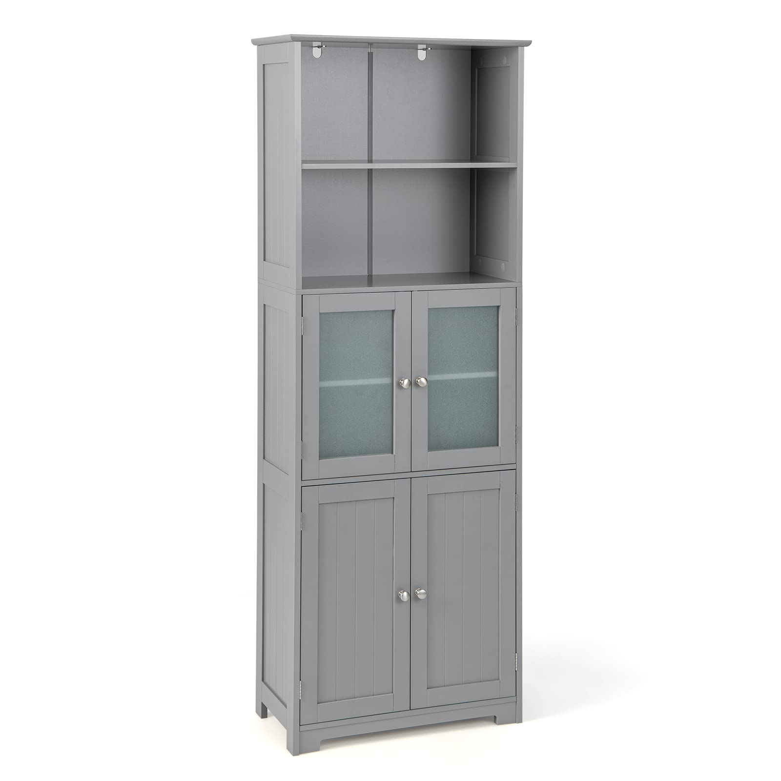 Large Storage Space with Adjustable Shelves: Equipped with 2-tier open storage shelves and 2 cabinets with doors, this tall bathroom storage cabinet offers large storage space to keep various items well organized. Besides, there are two 3-position adjustable shelves that allow you to customize interior storage space as you need.