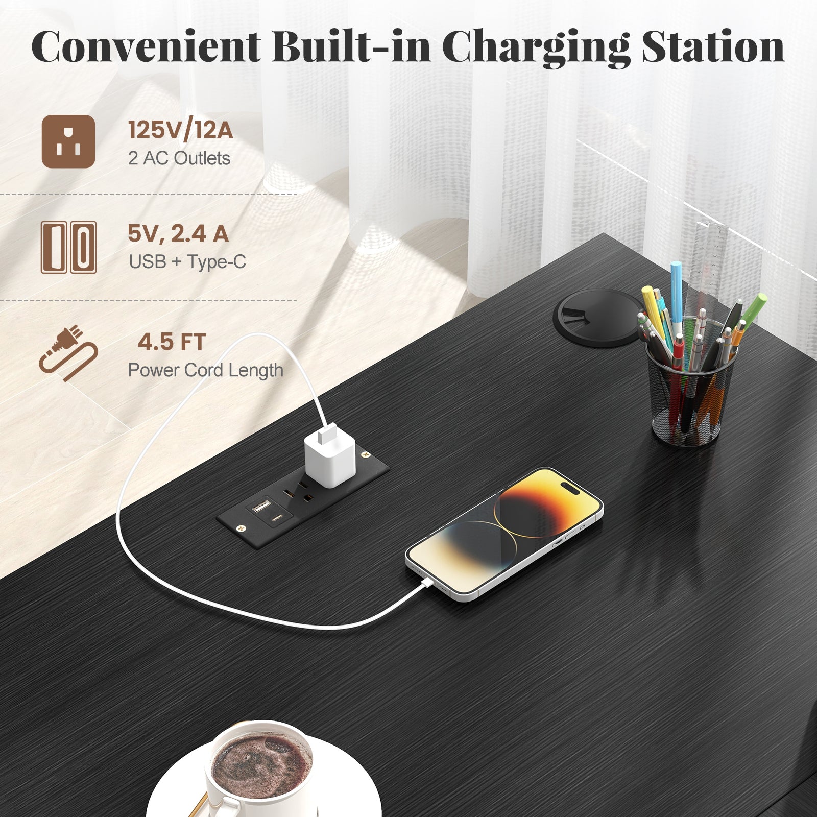 - [Convenient Built-in Charging Station]: With 2 AC outlets, 1 USB ports + type-C port of our PC desk, you can always keep your devices powered. Moreover, the 4.5 ft power cord ensures easy connection to a power source, making charging hassle-free.